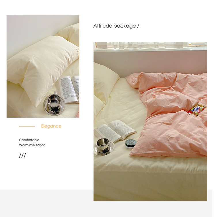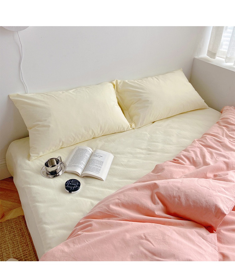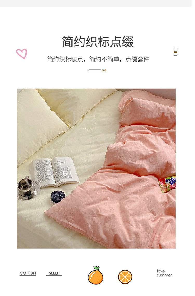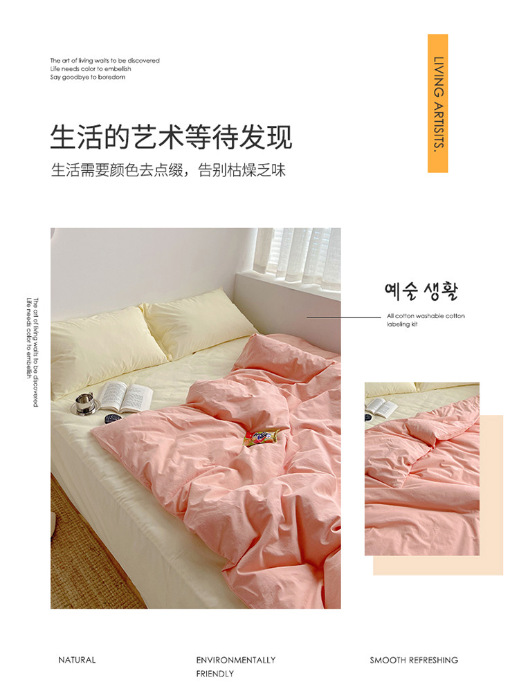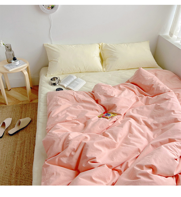 雅居纺家纺 2022新款全棉水洗棉四件套 ins粉米黄