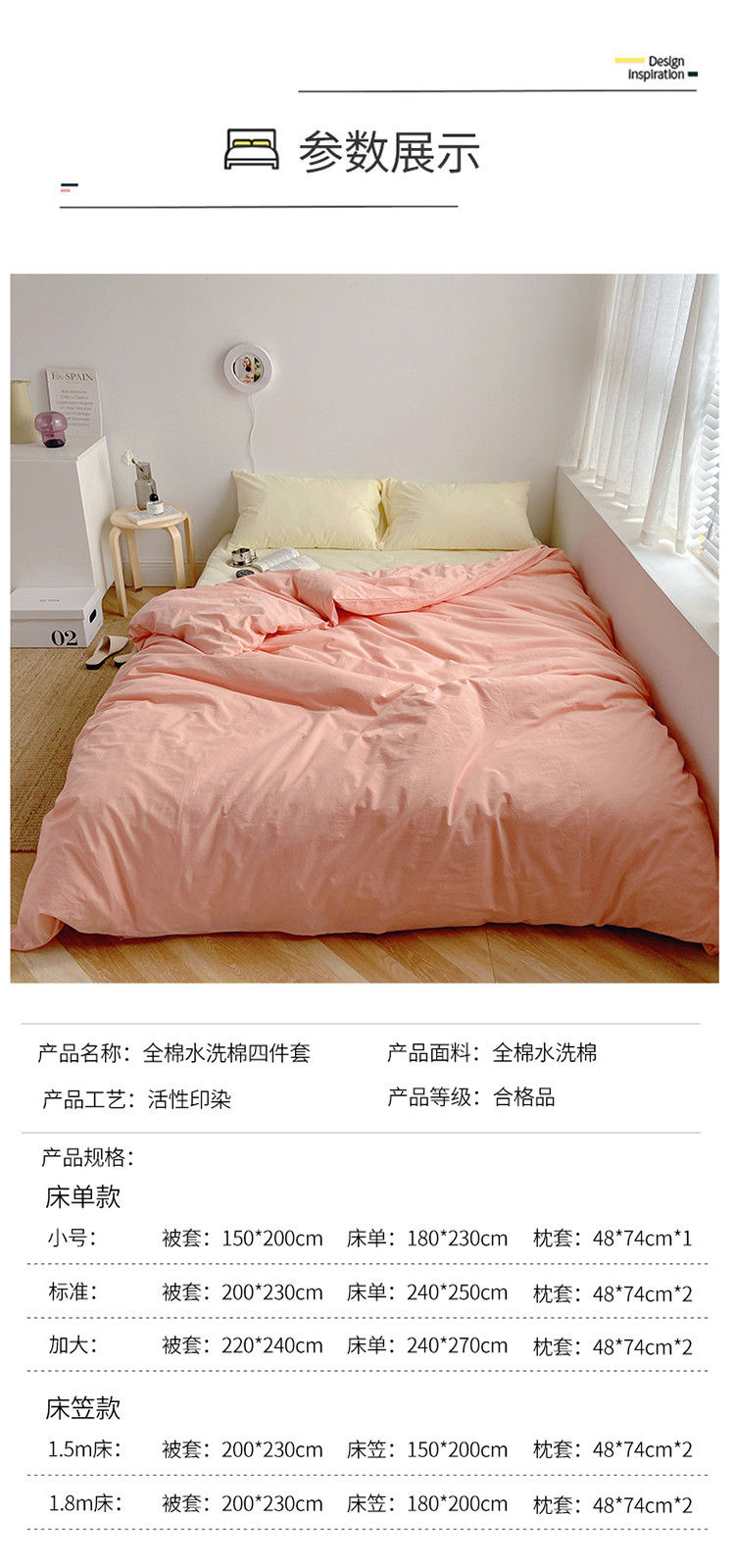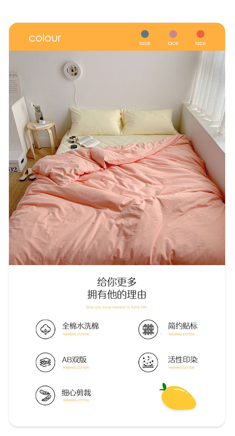 (总)雅居纺家纺 2022新款全棉水洗棉四件套,Ins粉蓝,ins浅蓝,白+墨子绿,白+绅士红,低调灰,低调灰绅士灰,豆绿+米黄,复古绿卡其,果绿绅士黄,焦糖咖啡,咖啡+卡其,米黄,米黄+明黄,米黄咖啡,米黄水绿,墨子绿,墨子绿卡其,墨子绿绅士黄,牛仔蓝低调灰,浅蓝深灰,清雅蓝绅士灰,绅士红卡其,绅士黄卡其,绅士灰,新蓝米黄