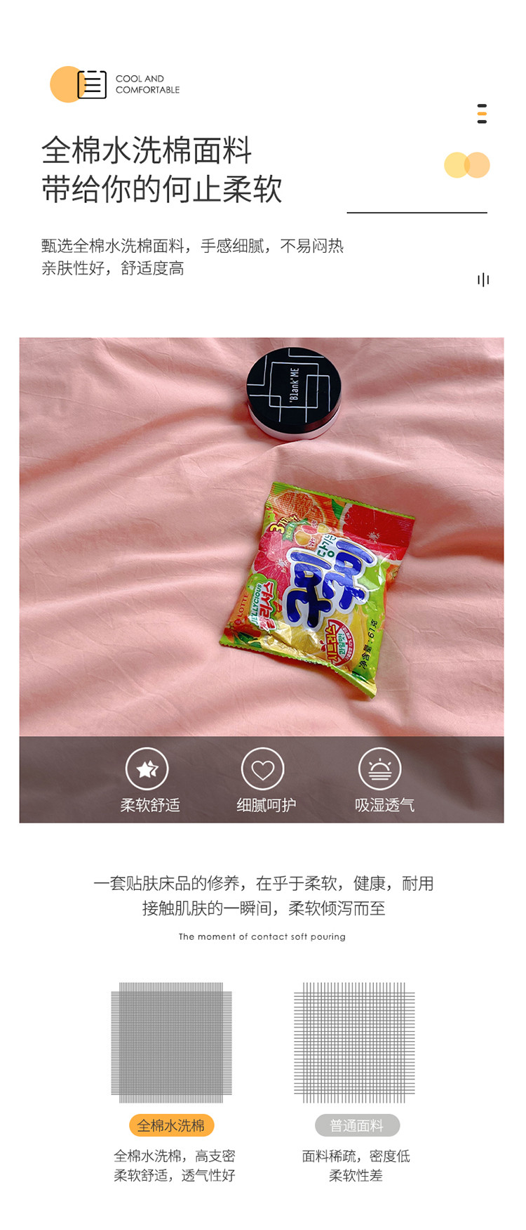 商品名称:雅居纺家纺 2022新款全棉水洗棉四件套 ins粉米黄