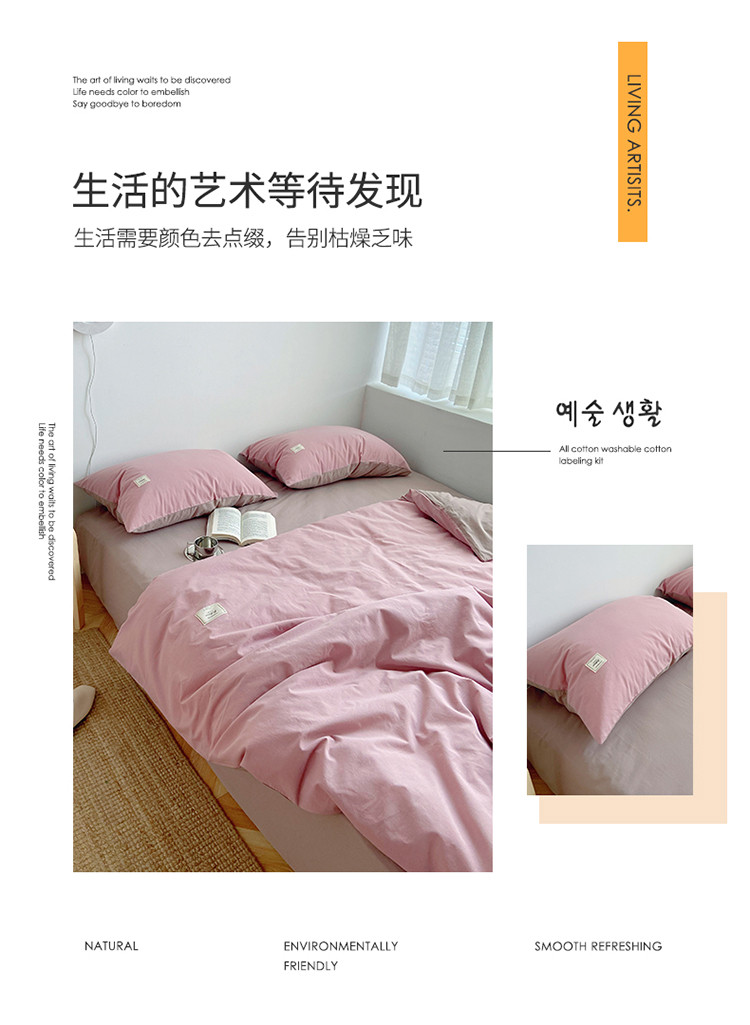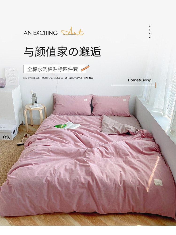 (总)雅居纺家纺 2022新款全棉水洗棉四件套,Ins粉蓝,ins浅蓝,白+墨子绿,白+绅士红,低调灰,低调灰绅士灰,豆绿+米黄,复古绿卡其,果绿绅士黄,焦糖咖啡,咖啡+卡其,米黄,米黄+明黄,米黄咖啡,米黄水绿,墨子绿,墨子绿卡其,墨子绿绅士黄,牛仔蓝低调灰,浅蓝深灰,清雅蓝绅士灰,绅士红卡其,绅士黄卡其,绅士灰,新蓝米黄