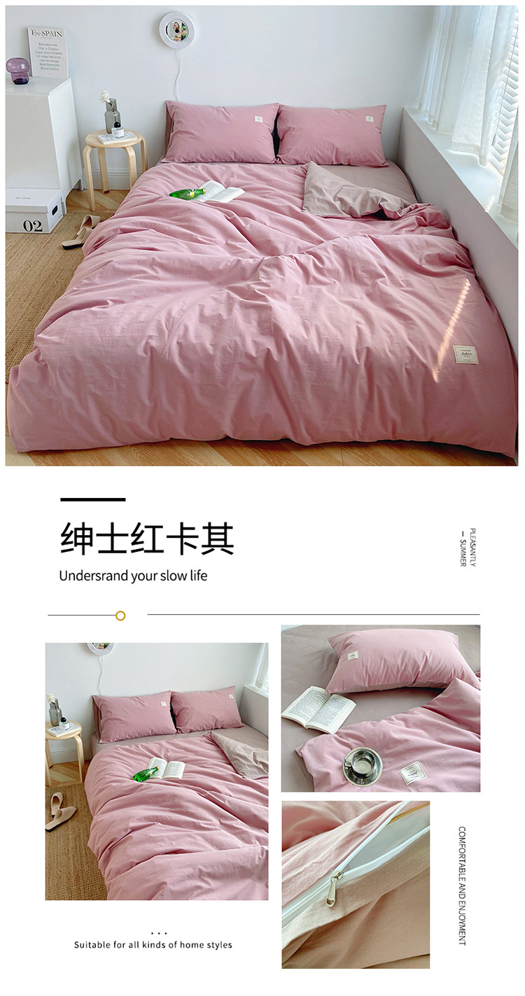 雅居纺家纺 2022新款全棉水洗棉四件套 绅士红卡其