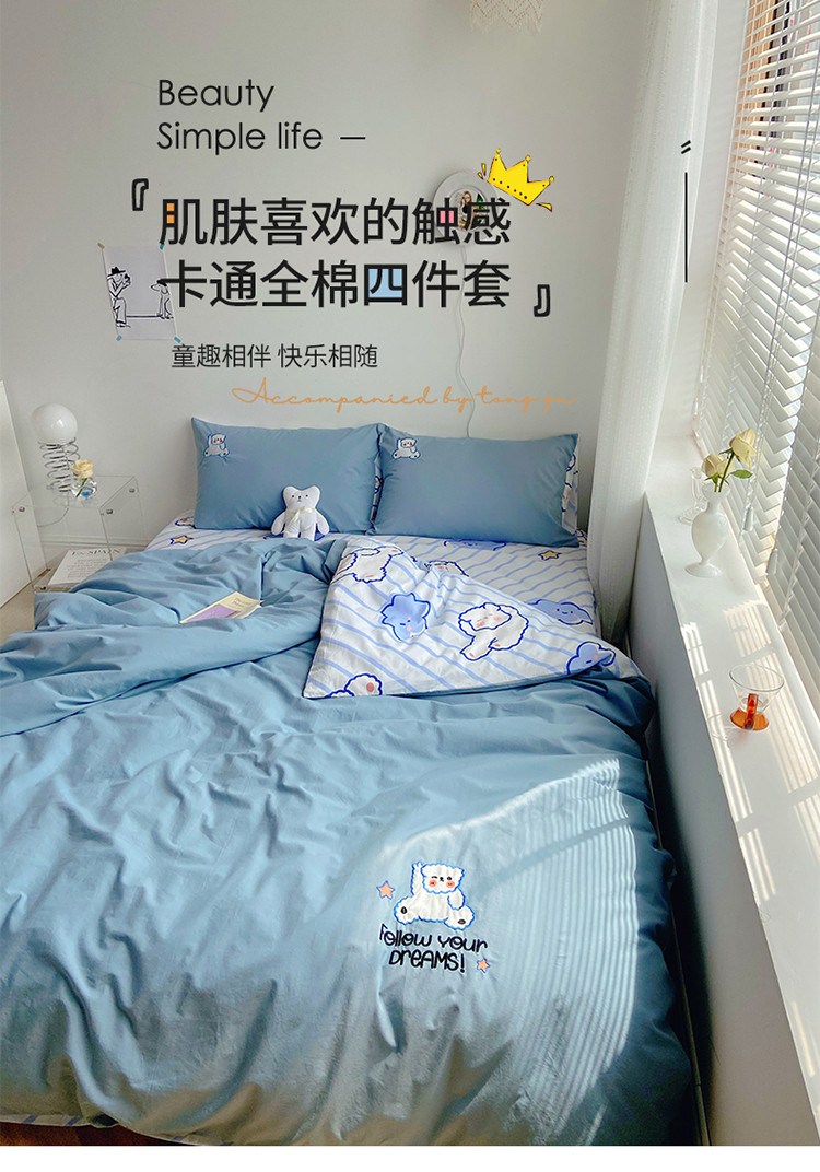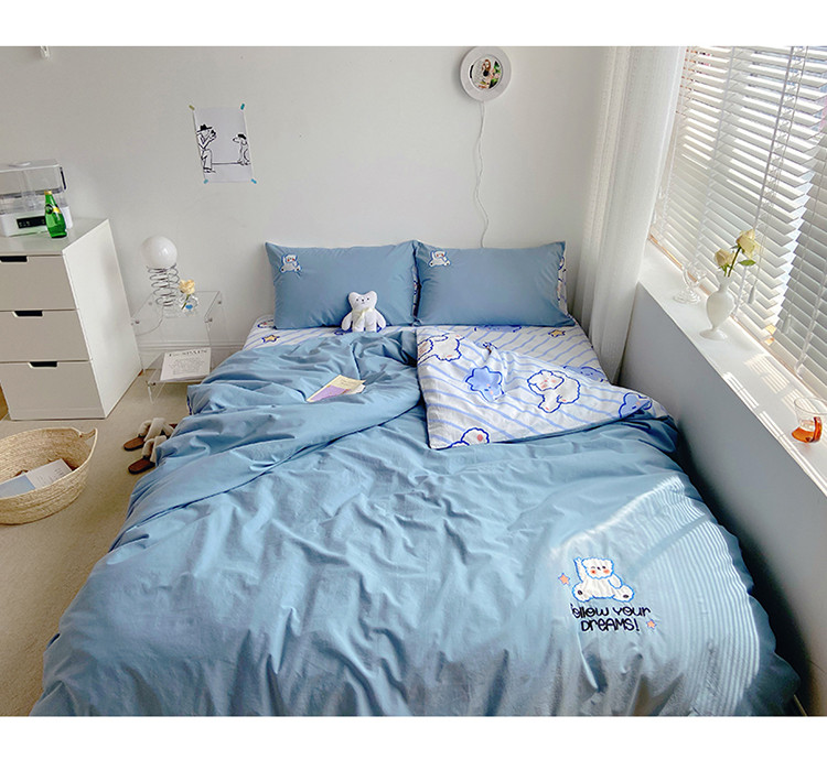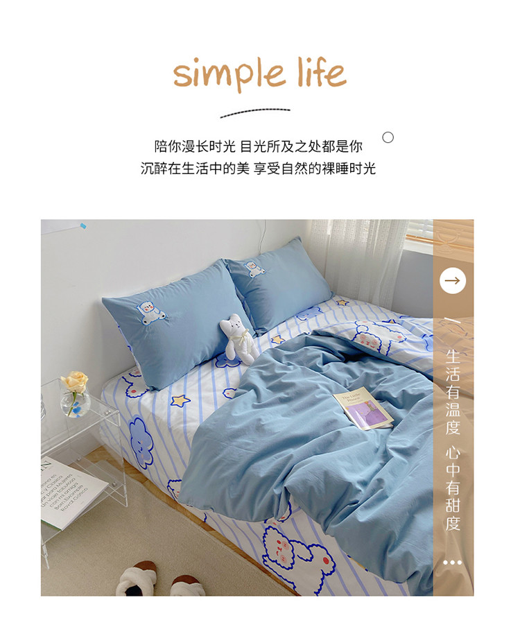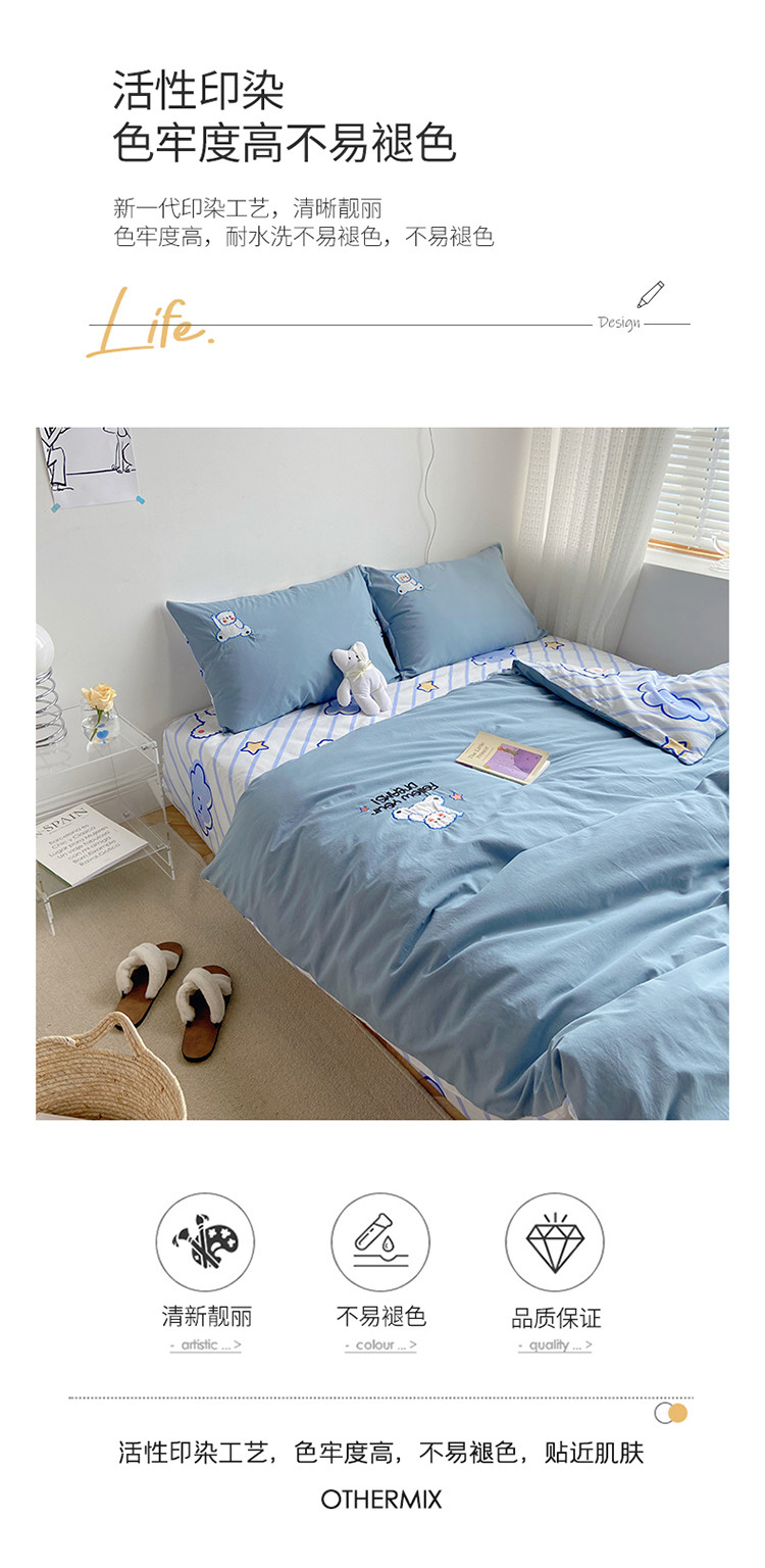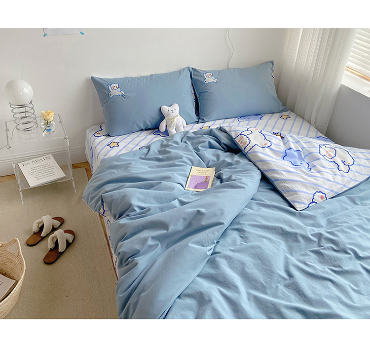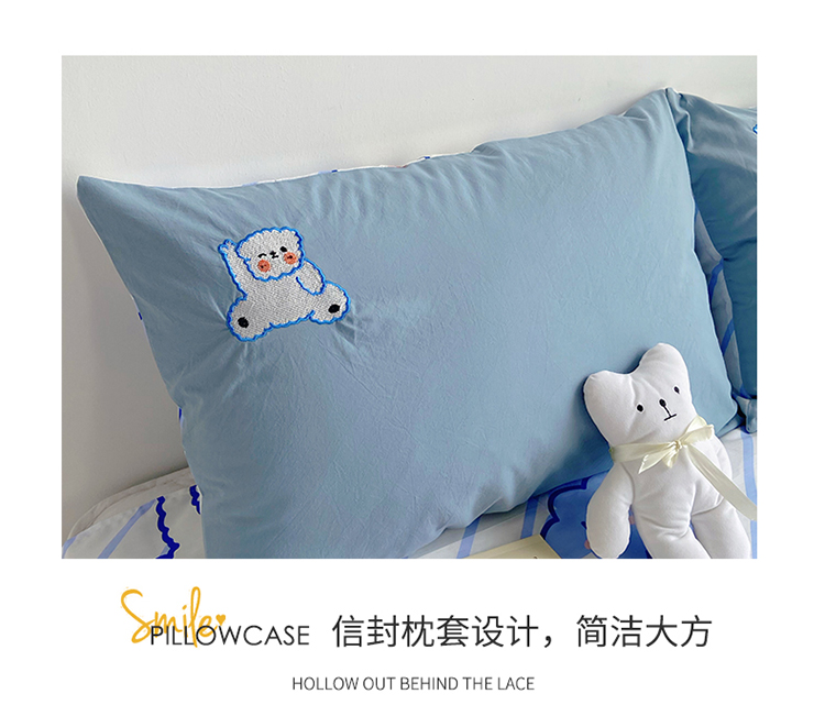 商品名称:雅居纺家纺 2022新款全棉水洗棉绣花四件套 顽皮熊