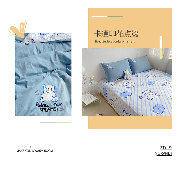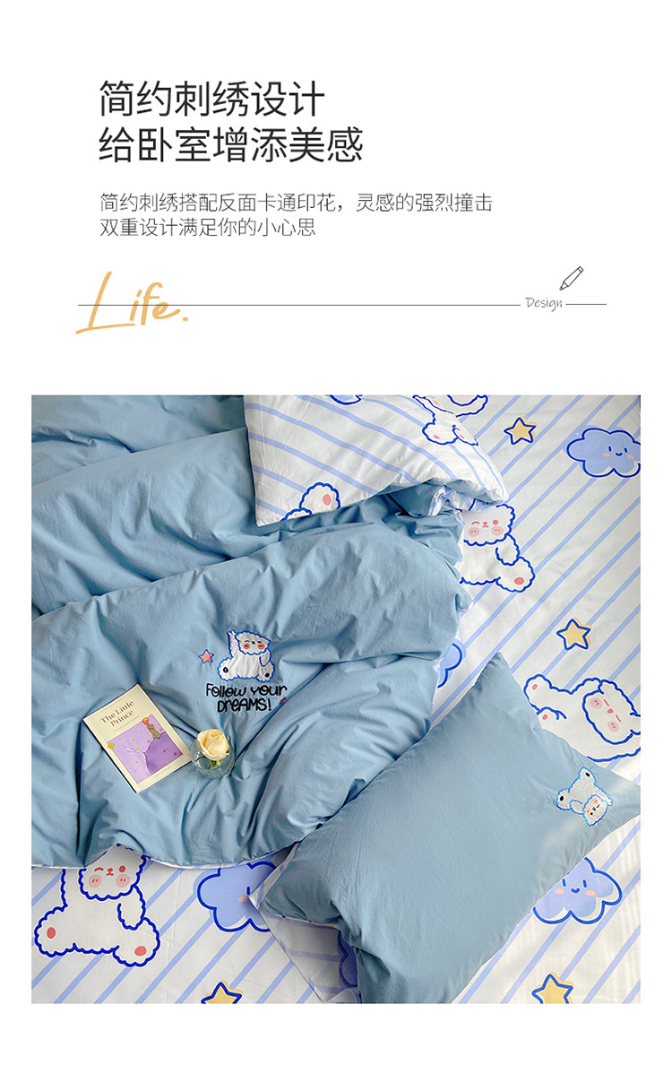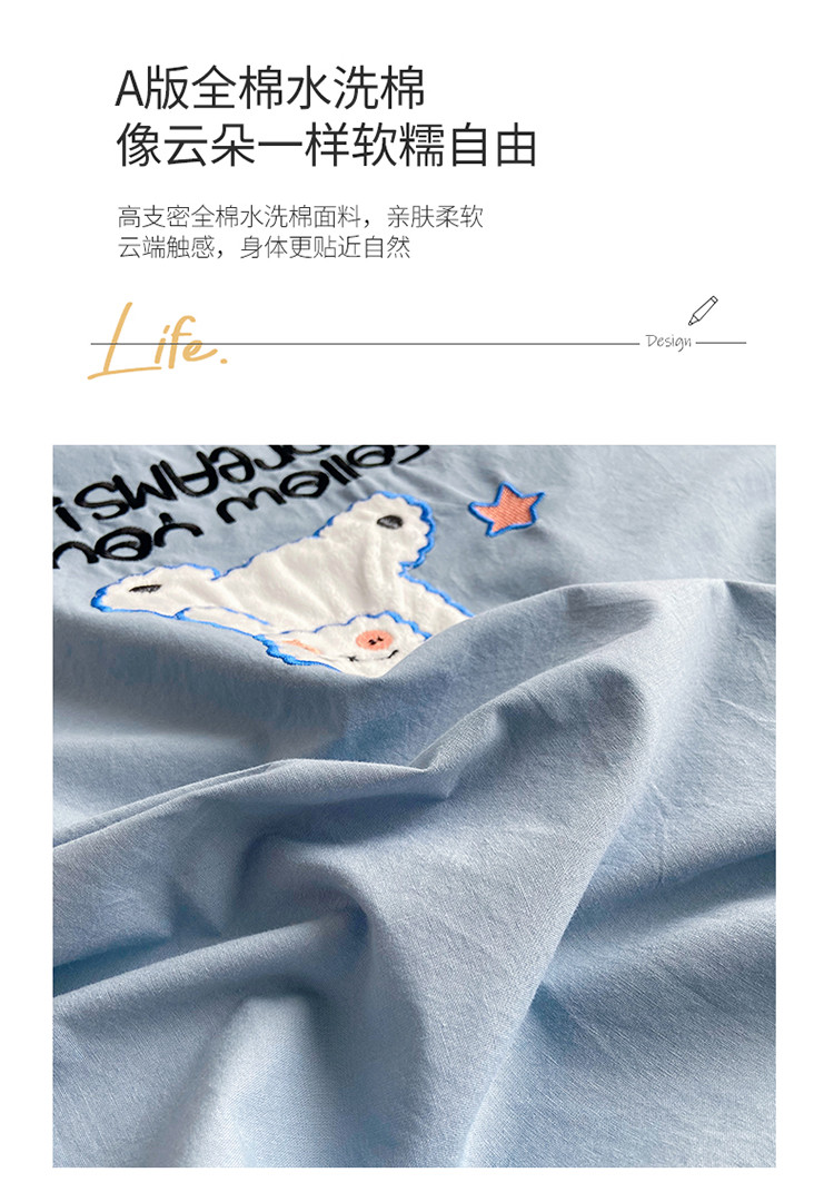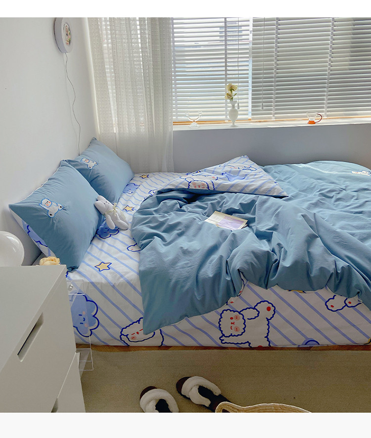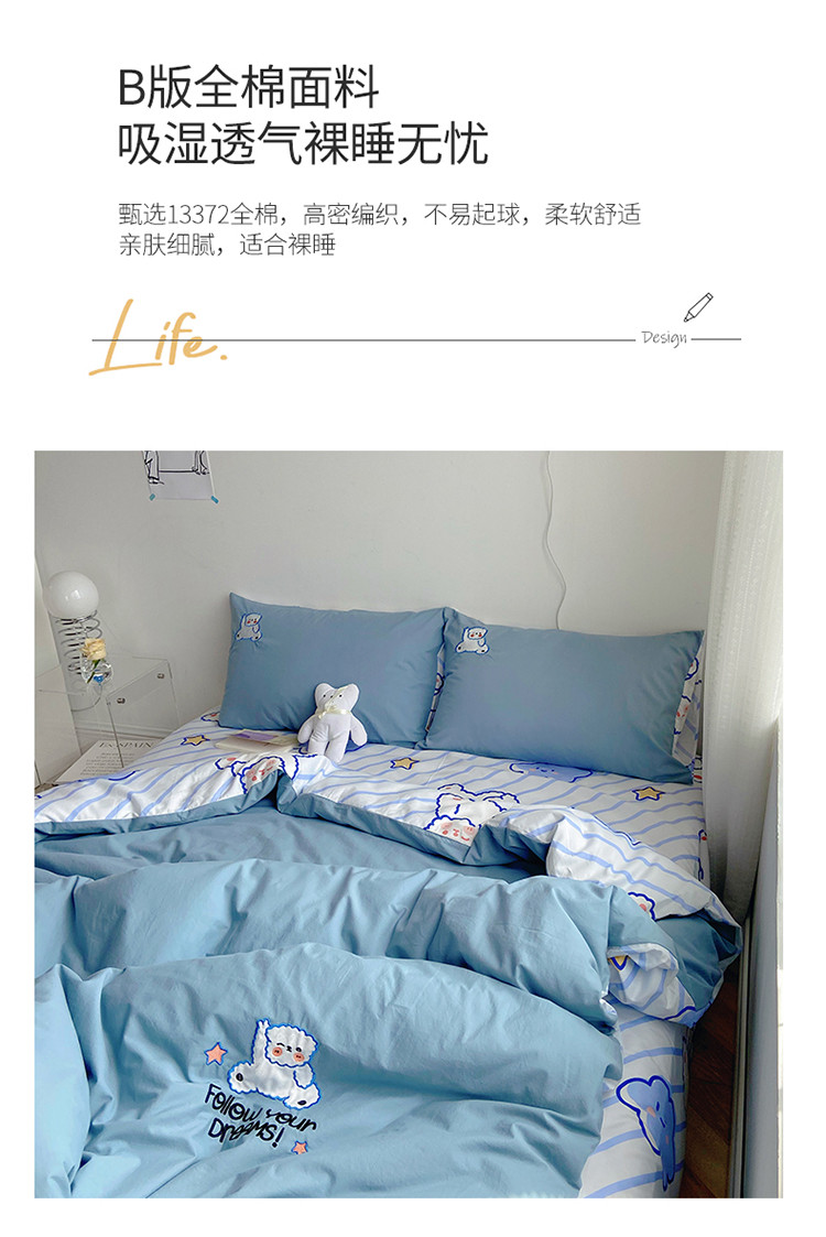 商品名称:雅居纺家纺 2022新款全棉水洗棉绣花四件套 顽皮熊