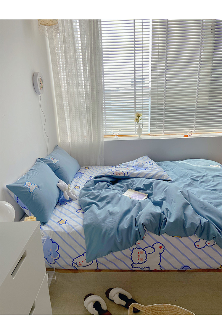 雅居纺家纺 2022新款全棉水洗棉绣花四件套 顽皮熊