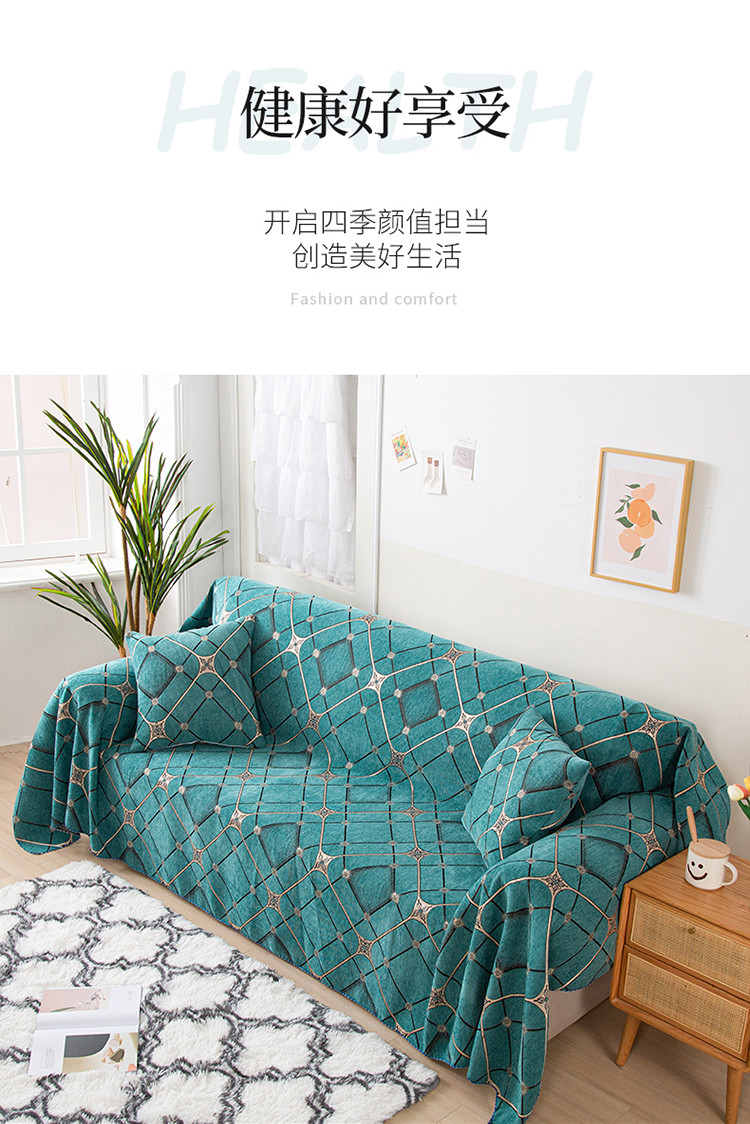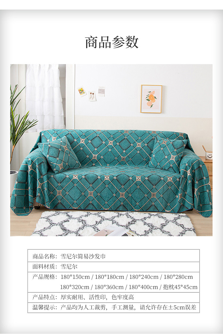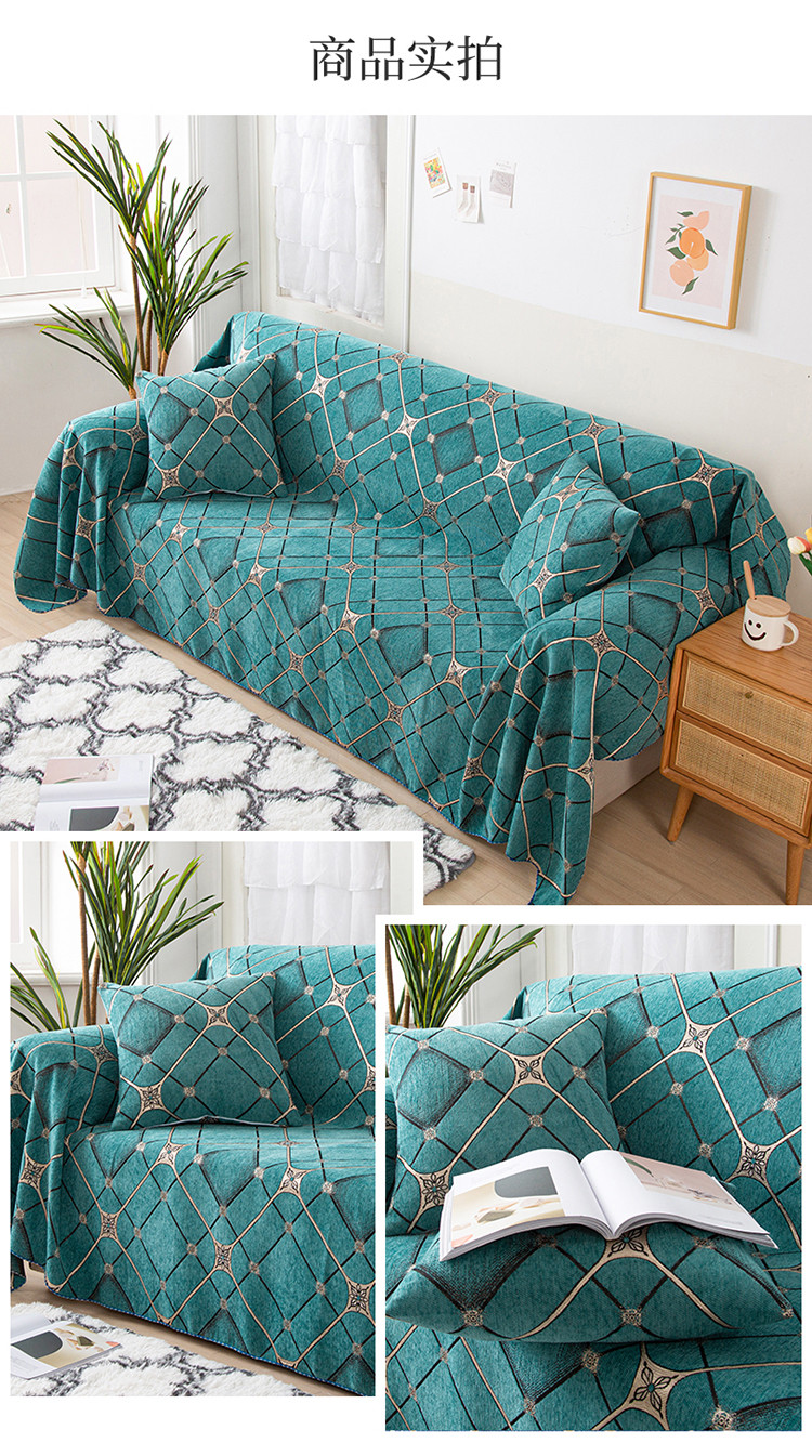 当前位置: 91家纺网 > 商品网购 > 居家布艺 > 坐垫/椅垫/沙发垫 > 沙发垫 > 启博家纺 2021全盖雪尼尔沙发巾沙发垫沙发套沙发罩 绿格