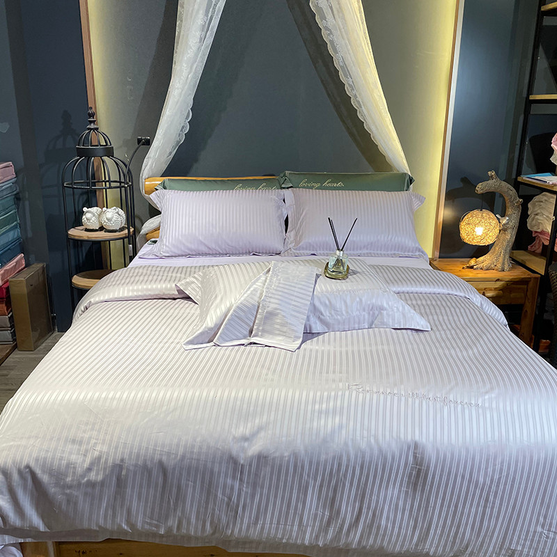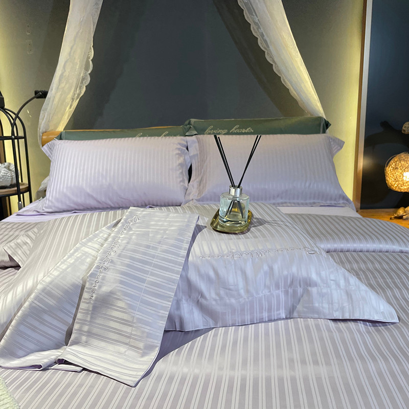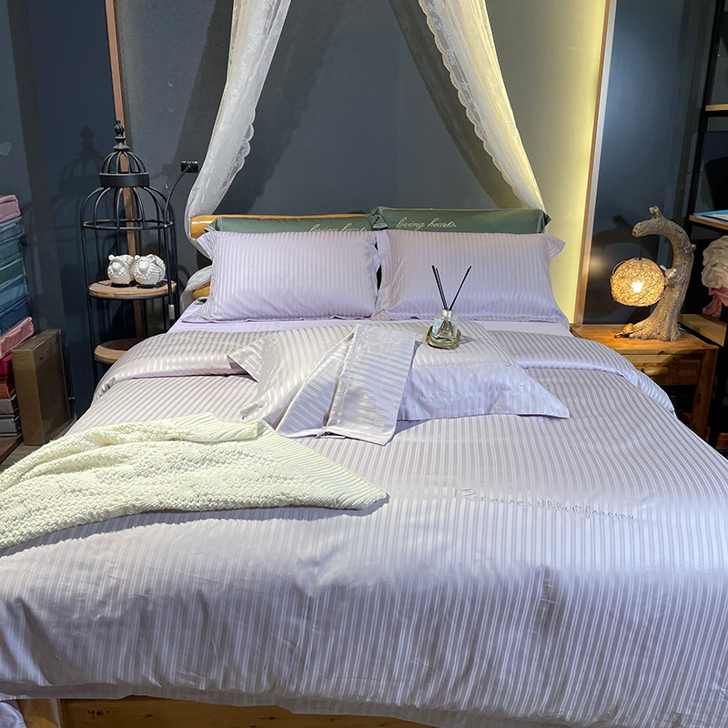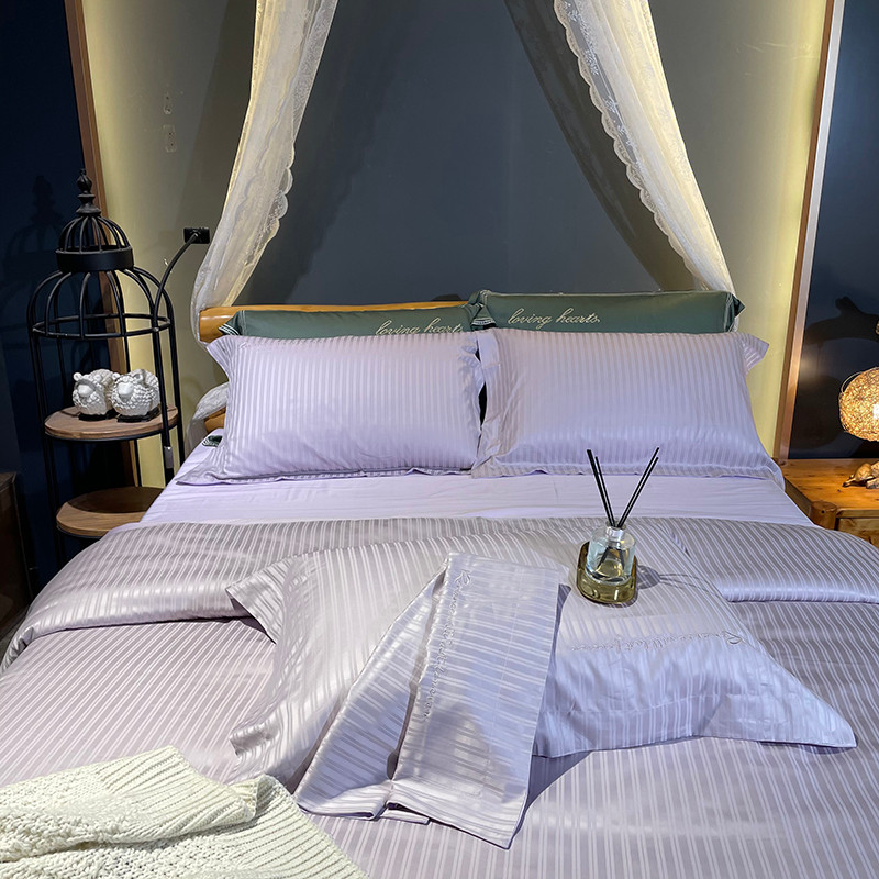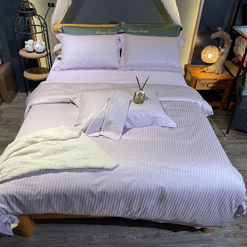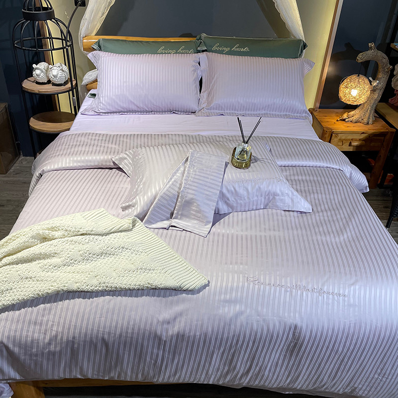 商品名称:玖玖爱 2021新款120S贡缎长绒棉提花四件套 绅士风度浅紫