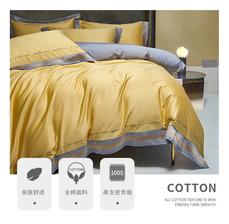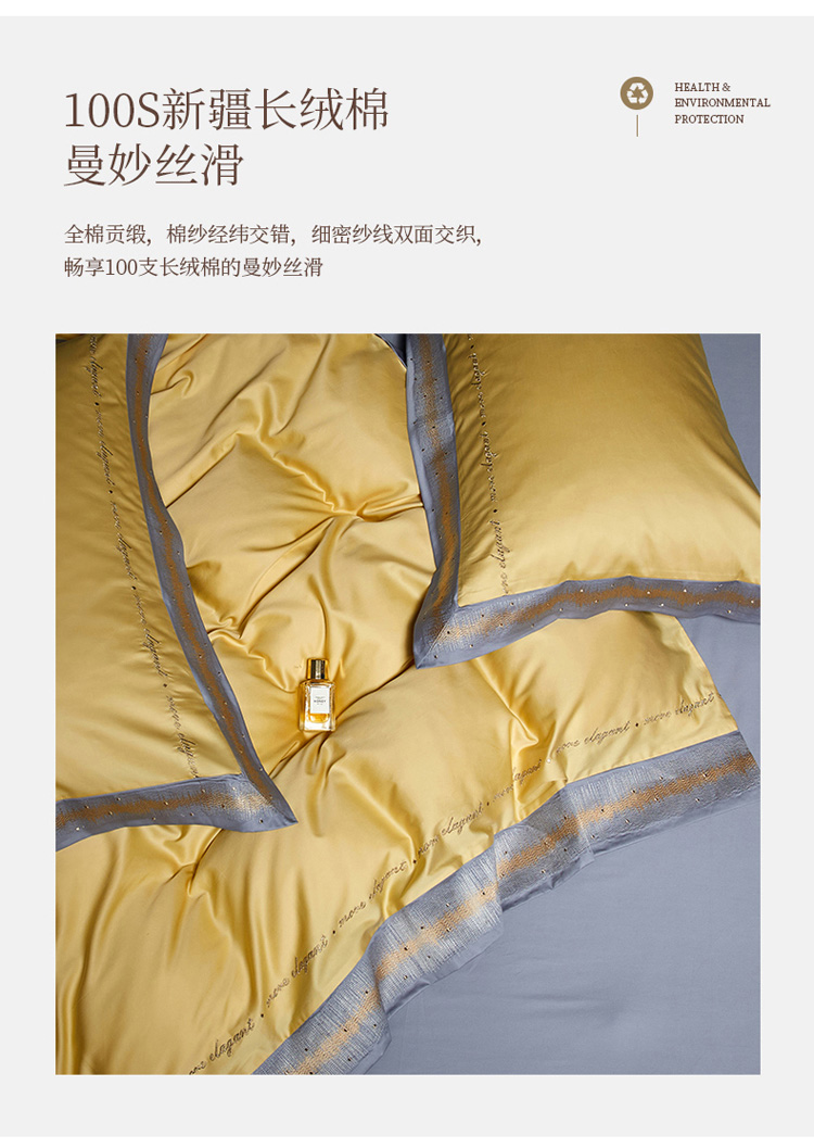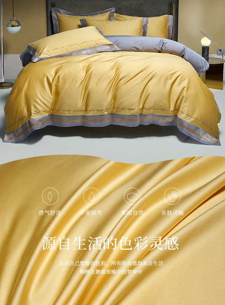 商品名称:爱缦 2021新款星空系列100支长绒棉奥棉四件套 彩虹黄