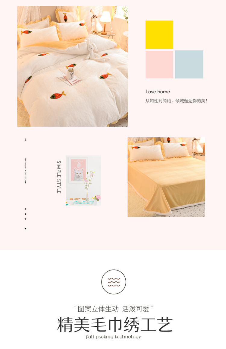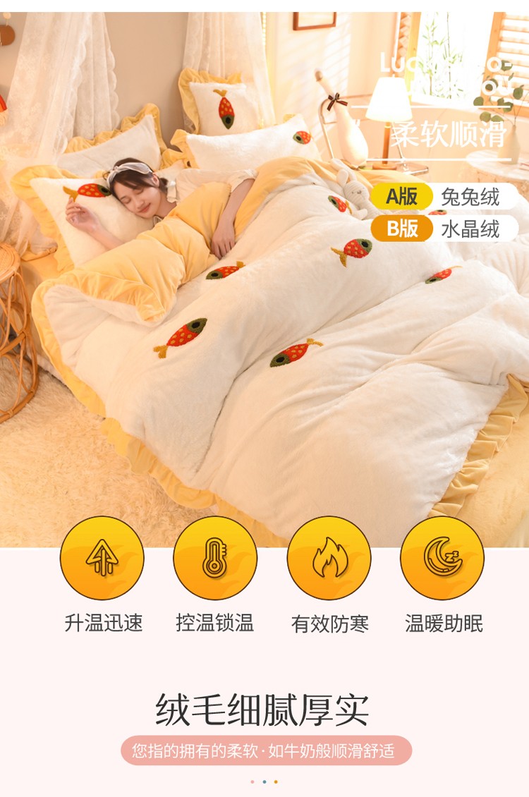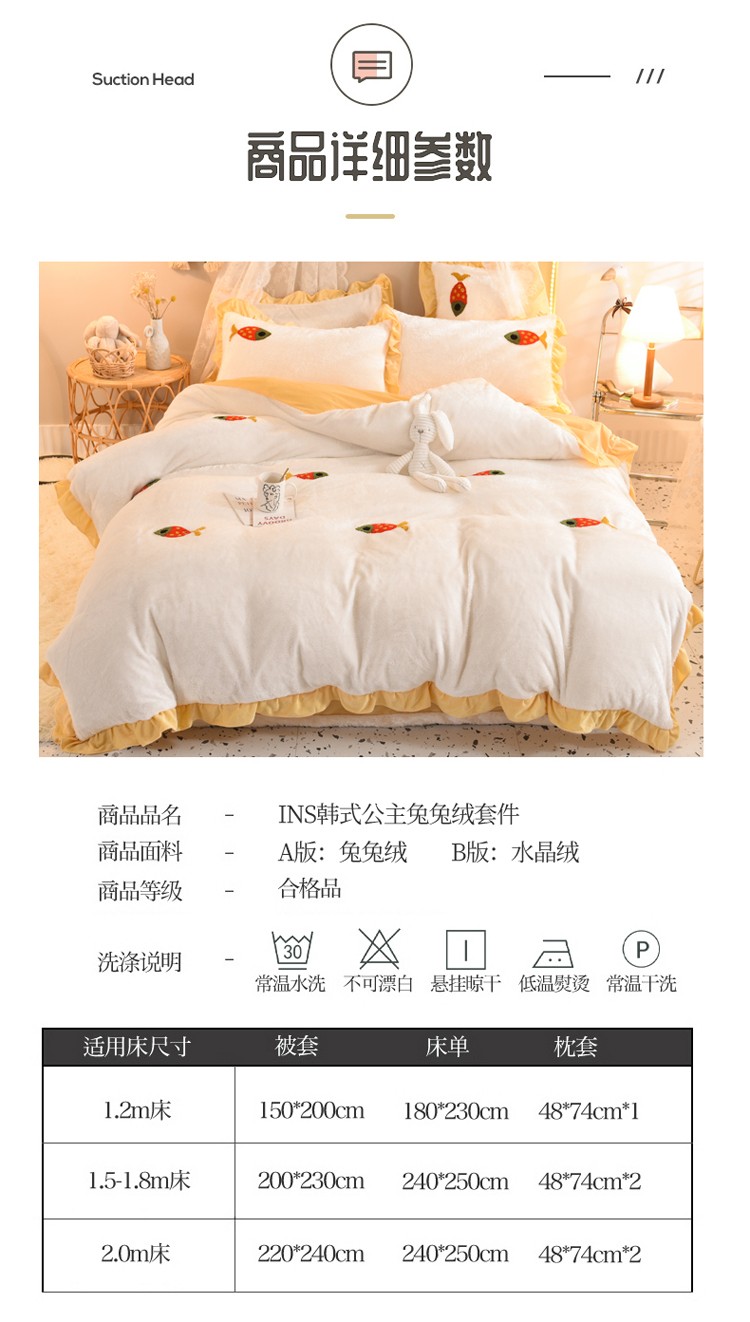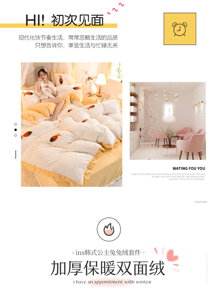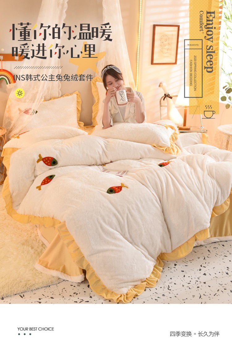 商品名称:欧冠 2021新款INS韩式公主兔兔绒四件套 小鱼
