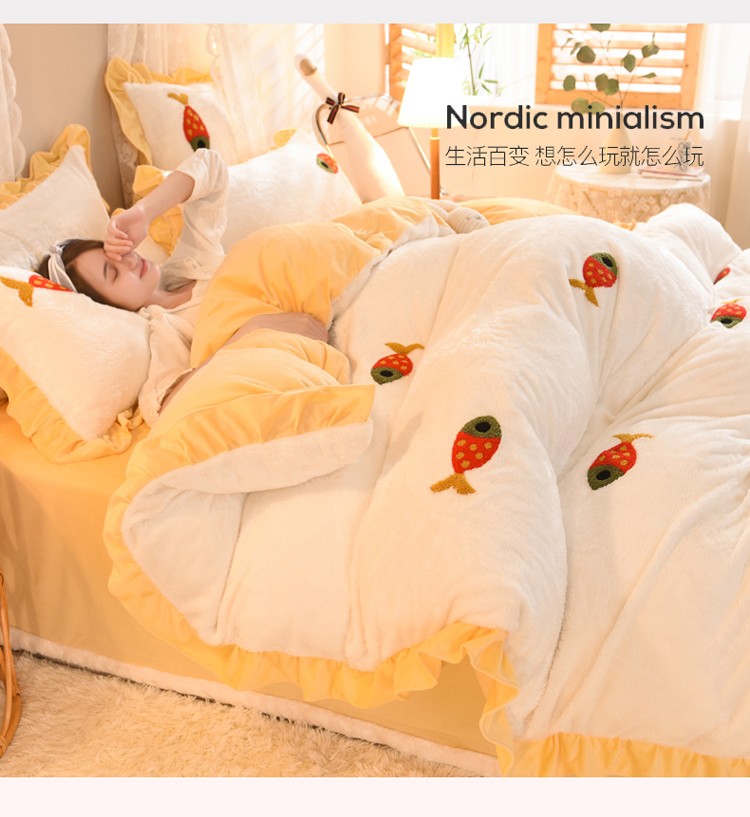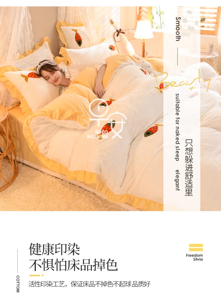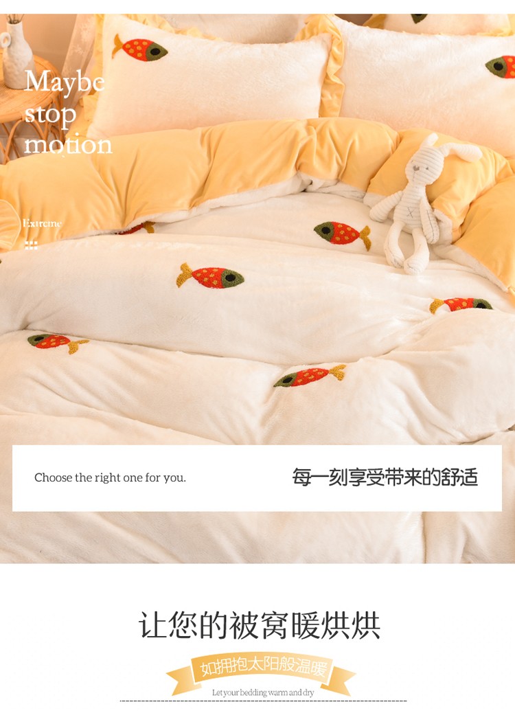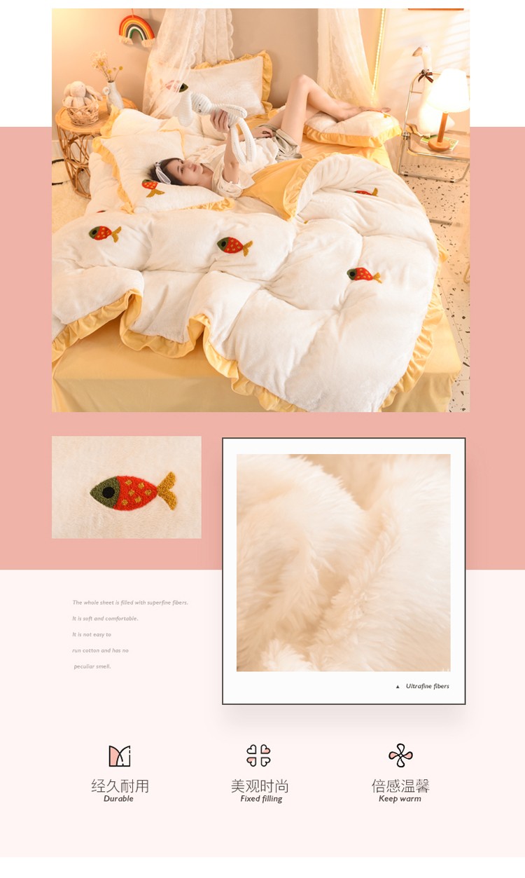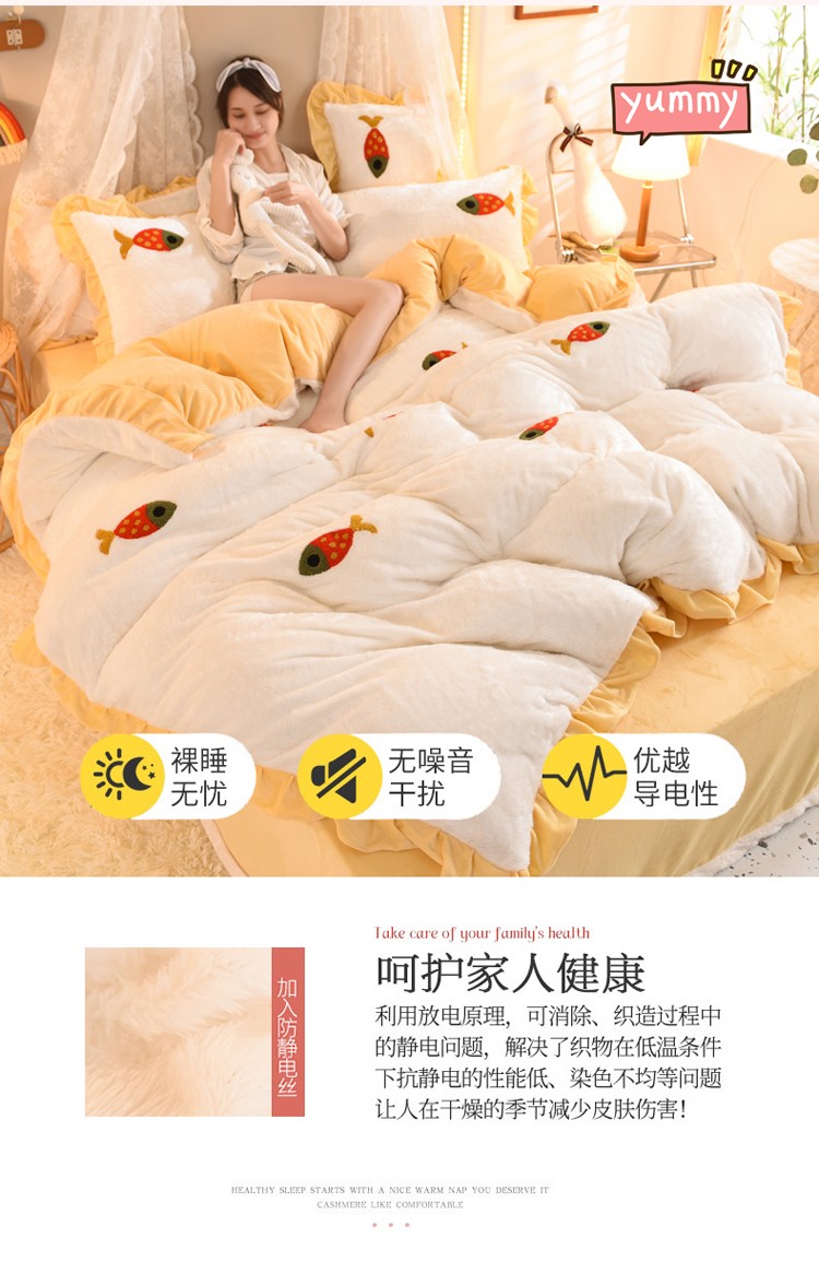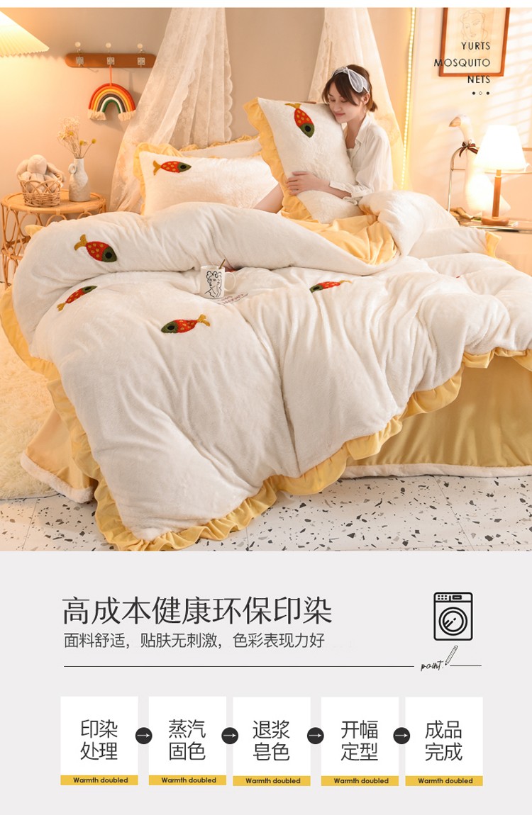 商品名称:欧冠 2021新款INS韩式公主兔兔绒四件套 小鱼