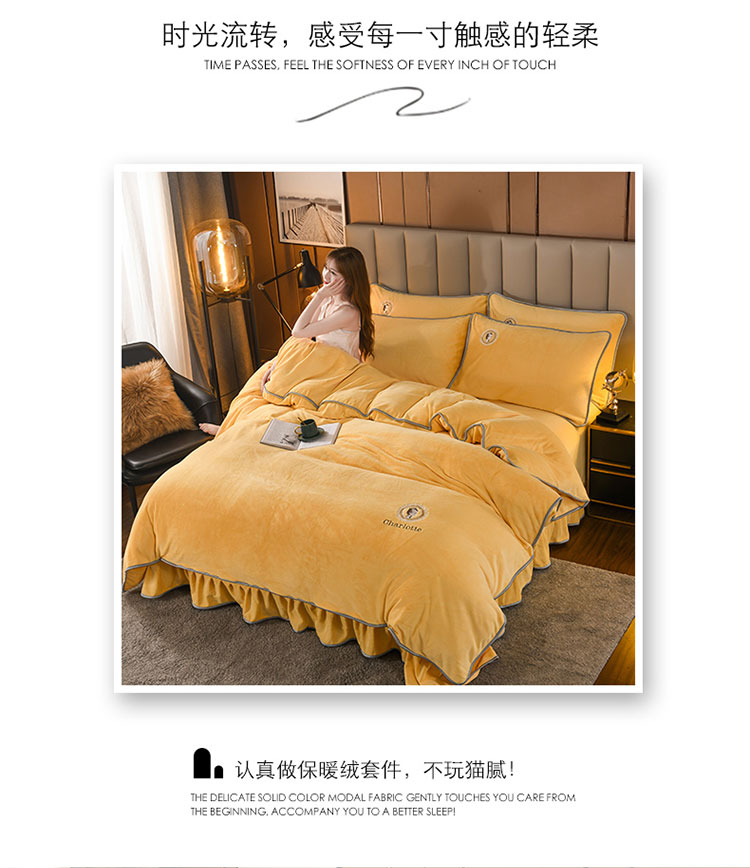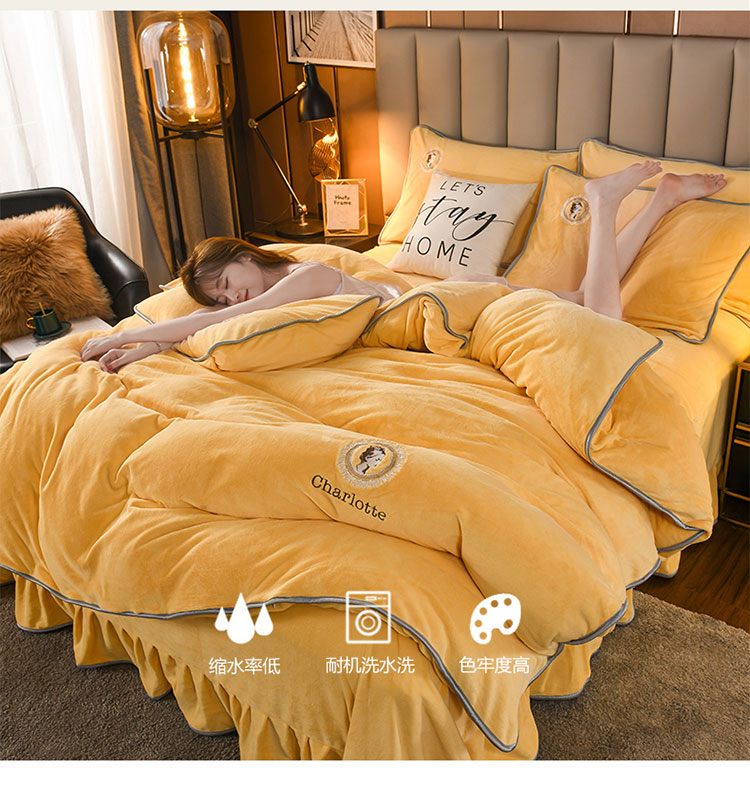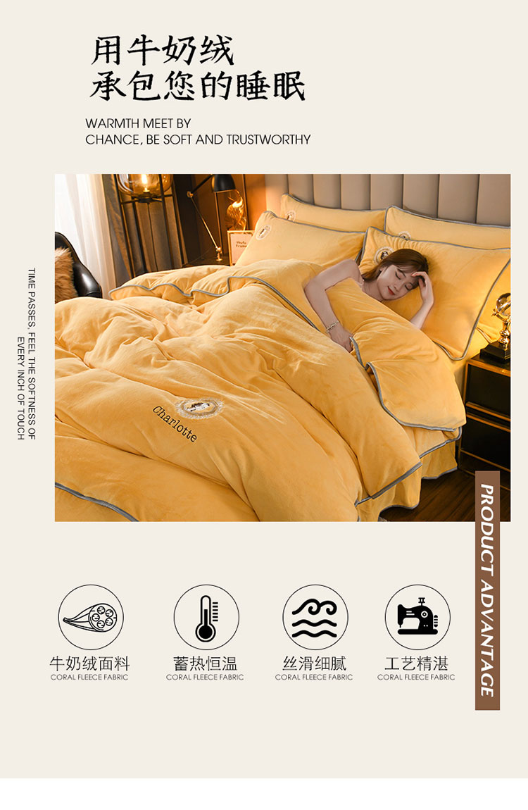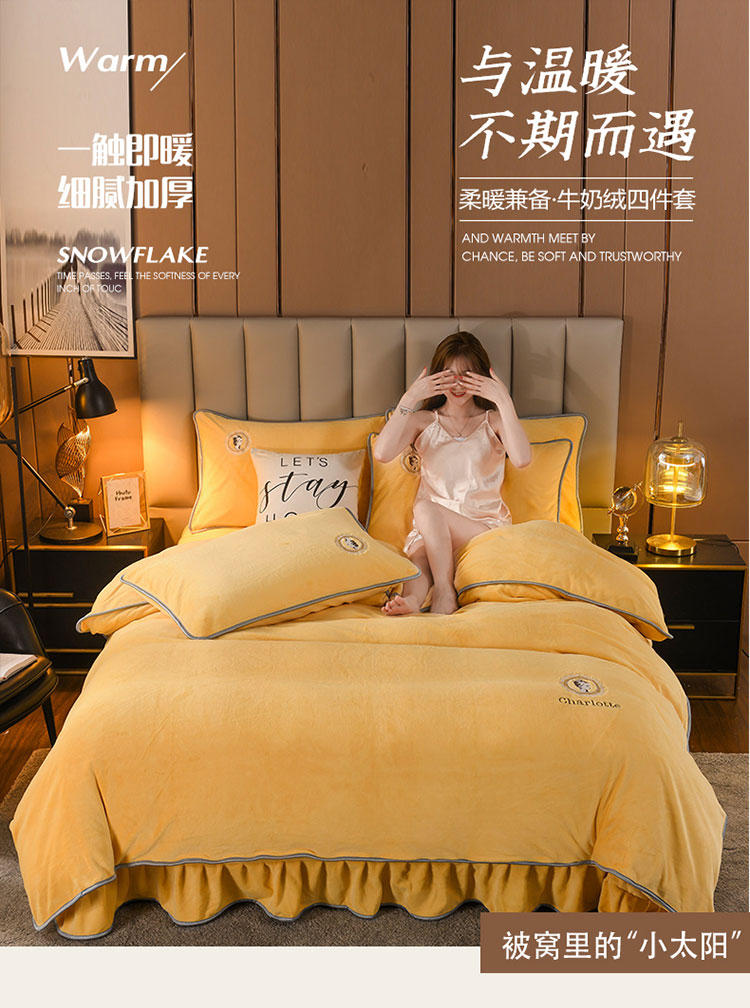 商品名称:迷仙巢 2021新款牛奶绒系列四件套典雅 典雅-鹅蛋黄