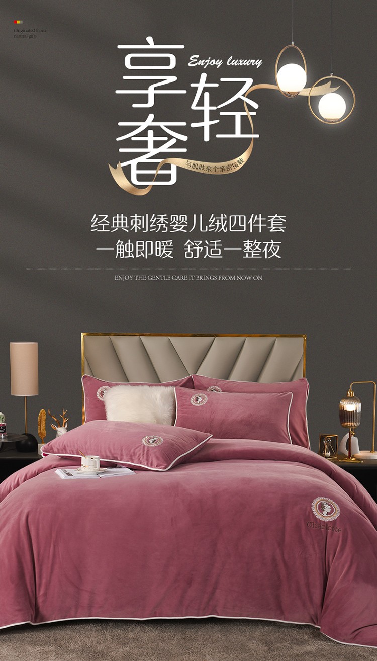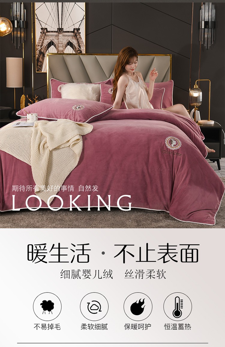 商品名称:迷仙巢 2021新款婴儿绒系列四件套倾城 倾城-豆沙