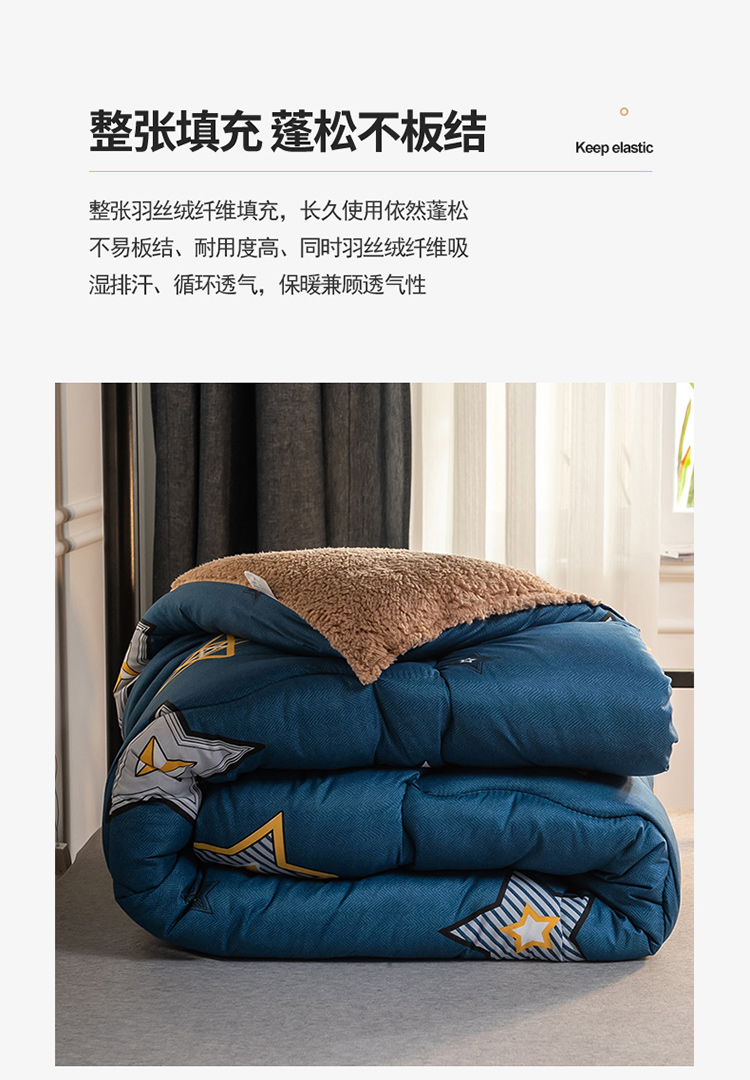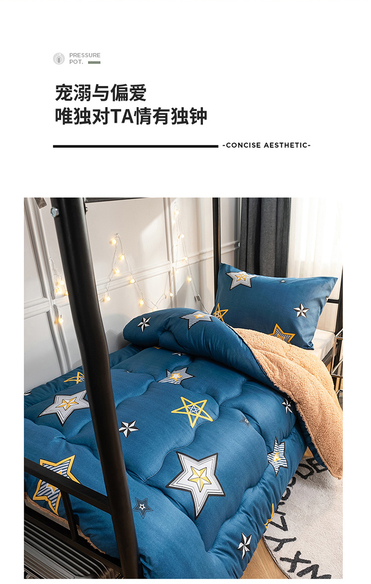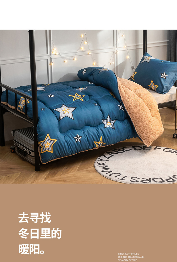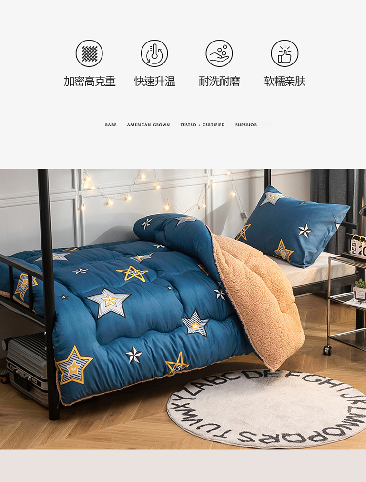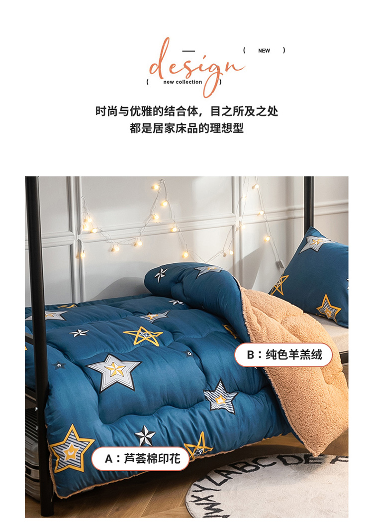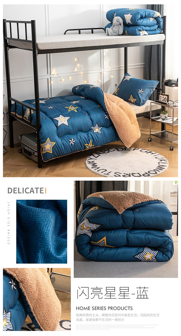 商品名称:畅销被业 2024新款羊羔绒学生床冬被 闪亮星星-蓝