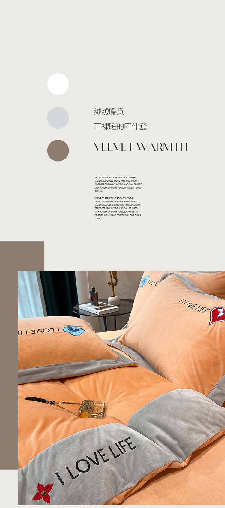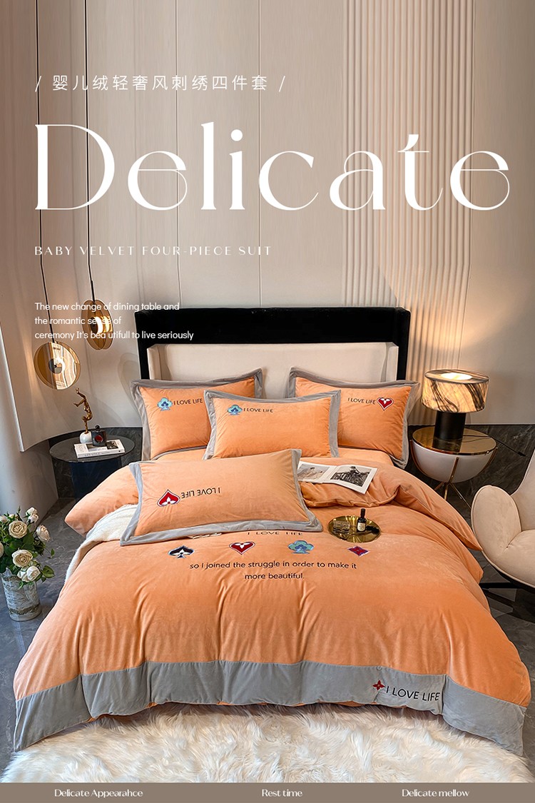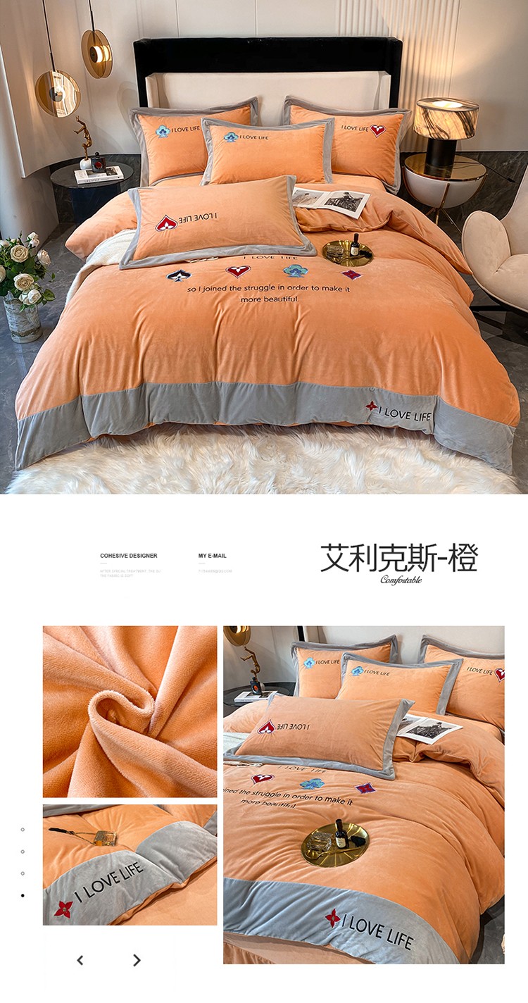 澳梵 2021【艾利克斯】婴儿绒轻奢风刺绣四件套 艾利克斯-橙