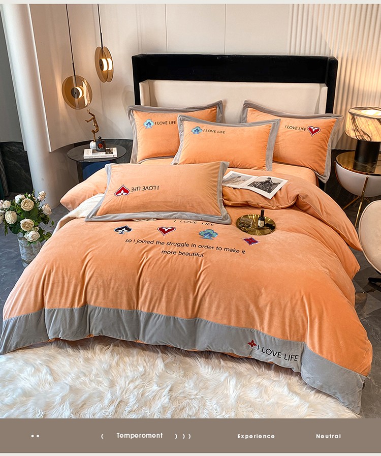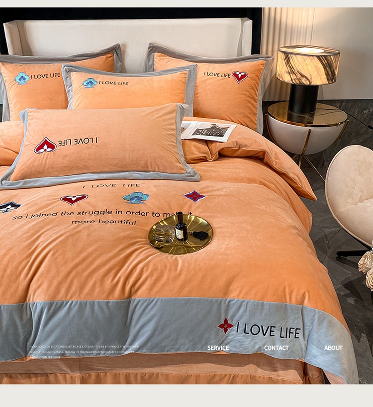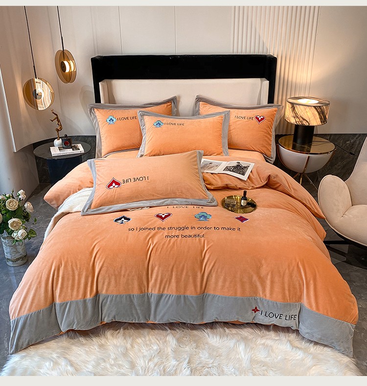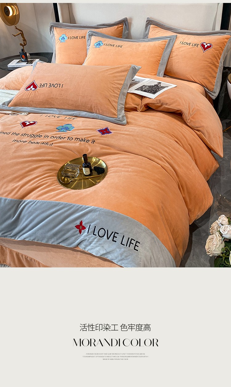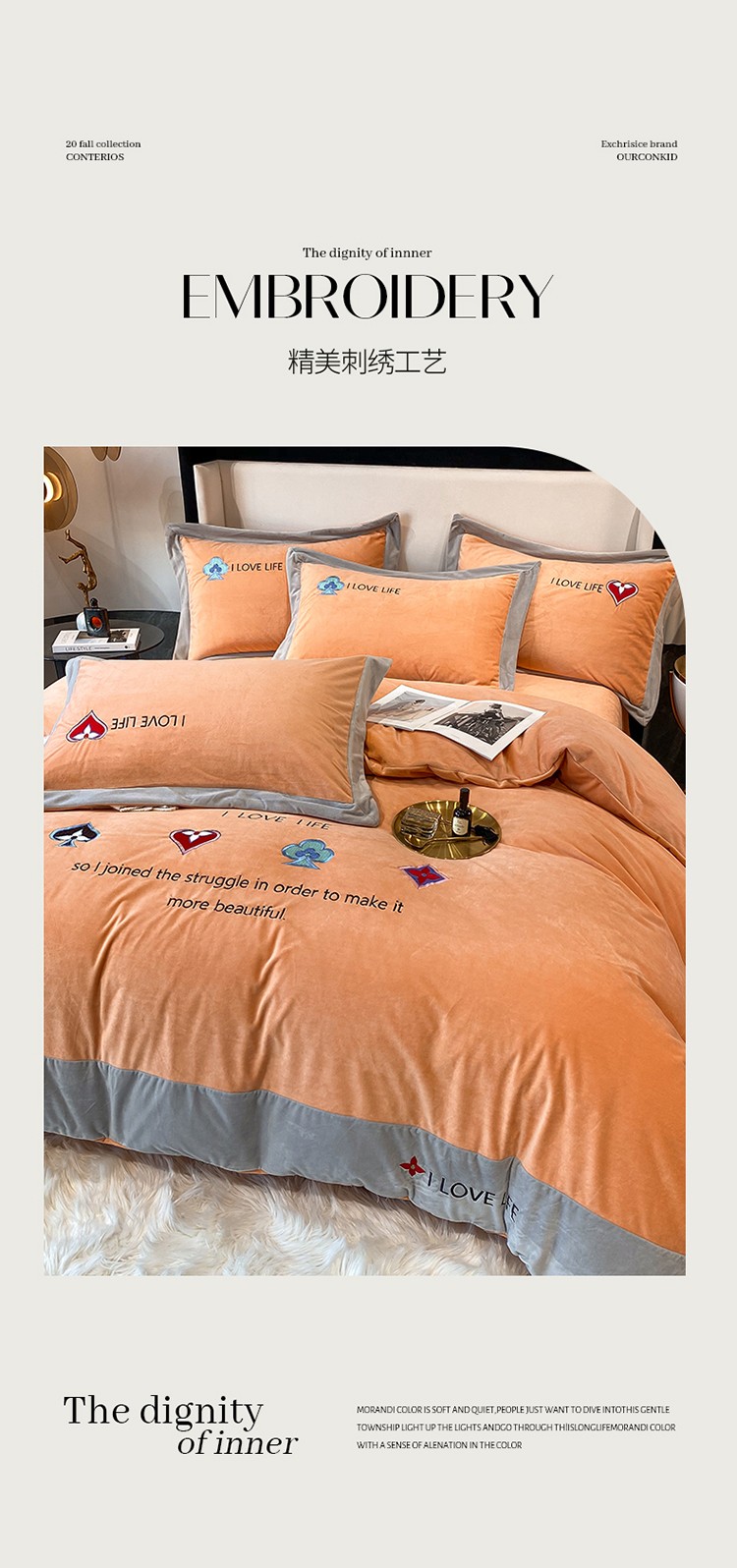 澳梵 2021【艾利克斯】婴儿绒轻奢风刺绣四件套 艾利克斯-橙