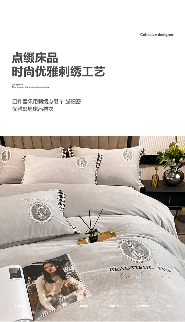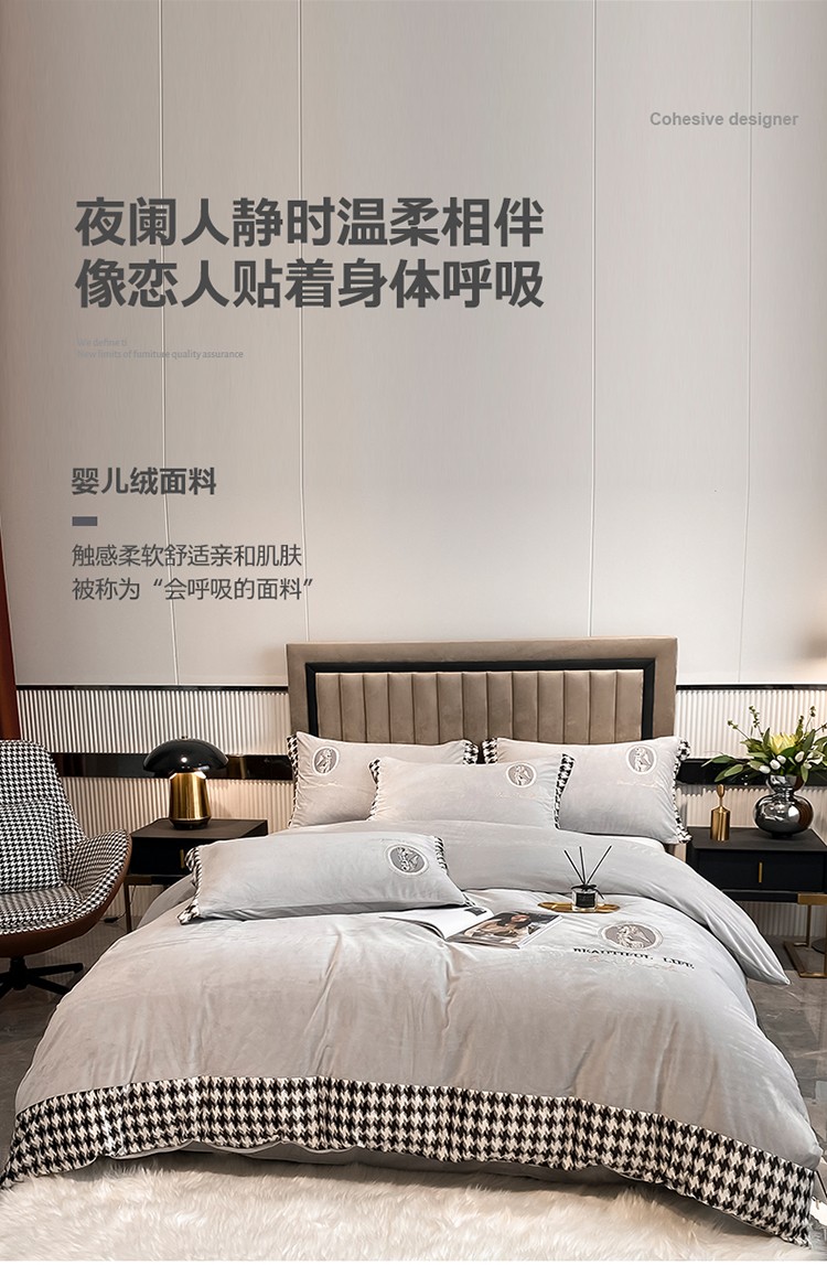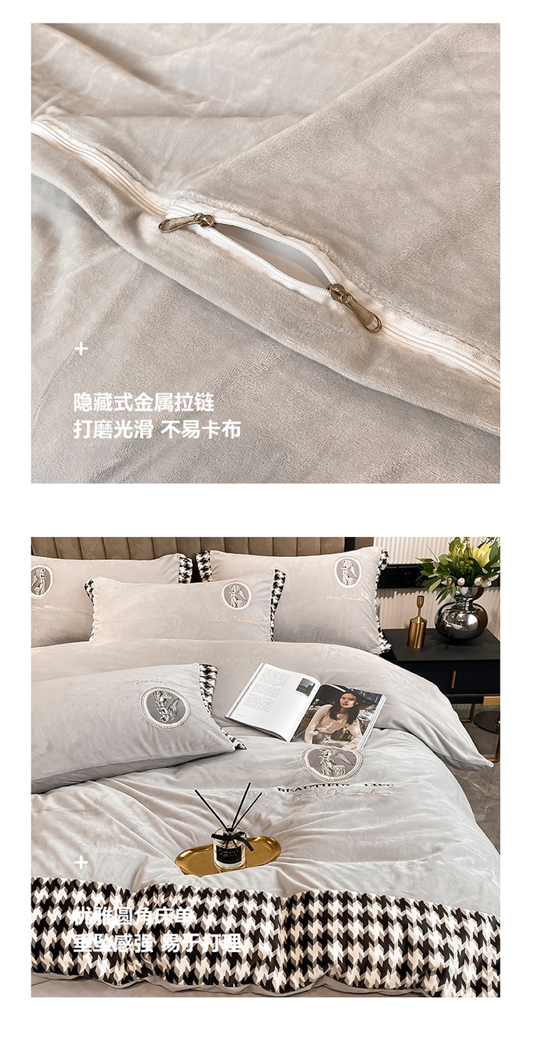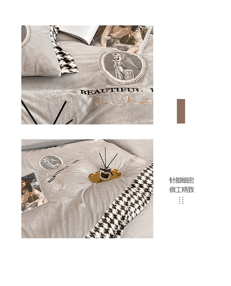商品名称:澳梵 2021【爱神系列】婴儿绒轻奢风刺绣四件套 爱神-灰色
