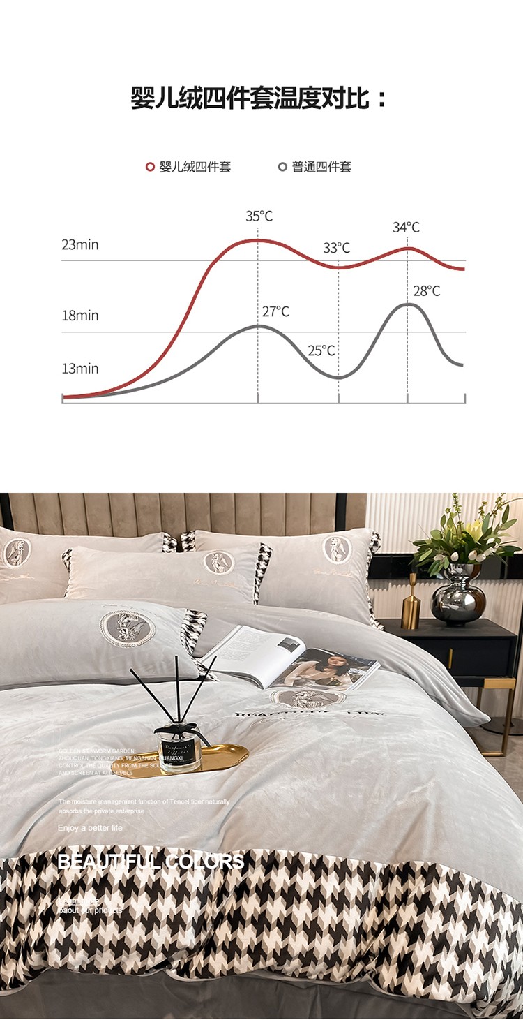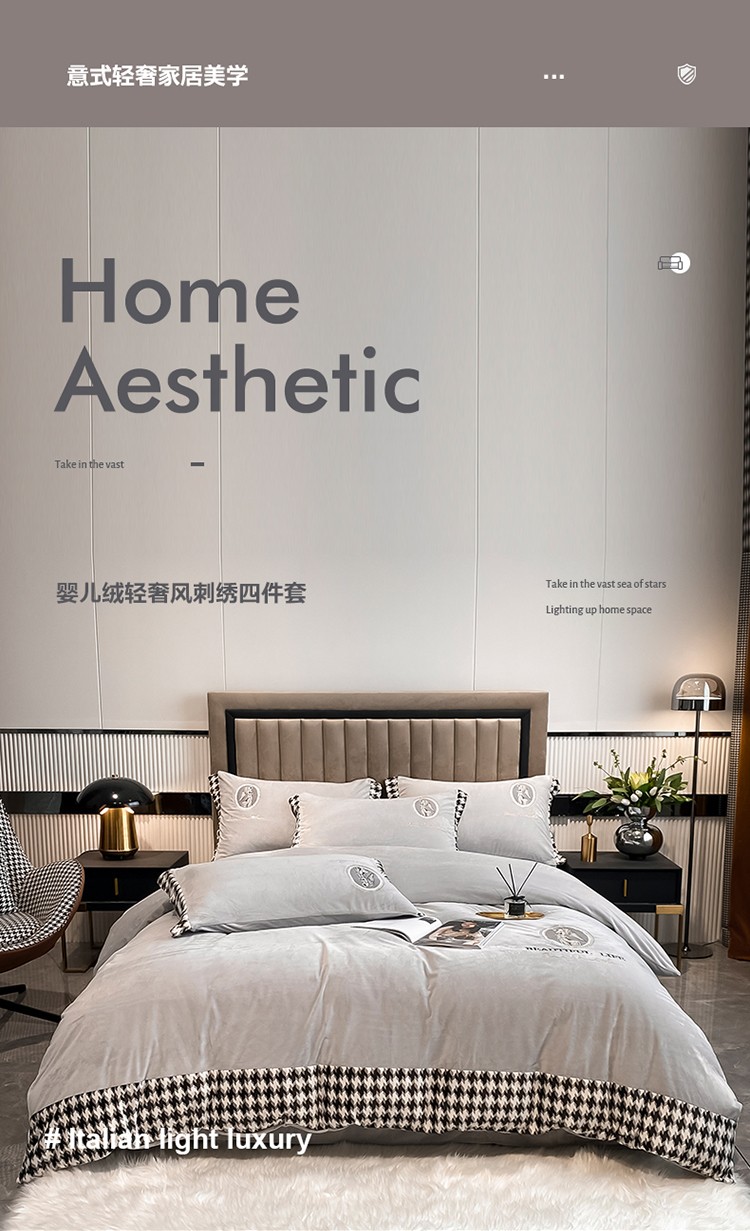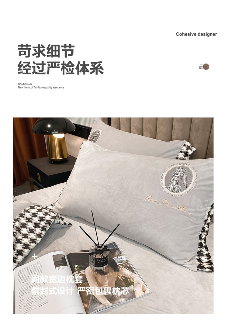 商品名称:澳梵 2021【爱神系列】婴儿绒轻奢风刺绣四件套 爱神-灰色