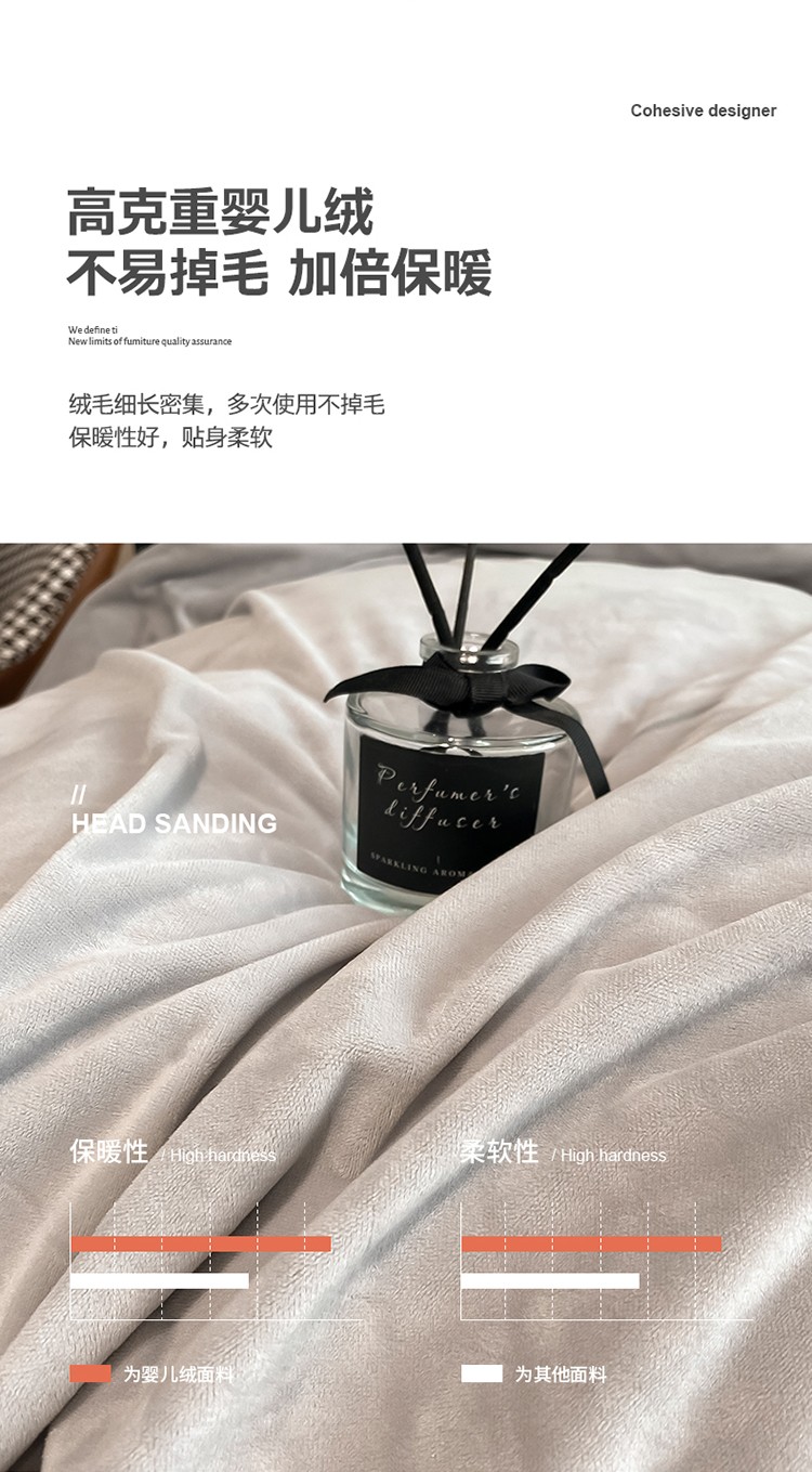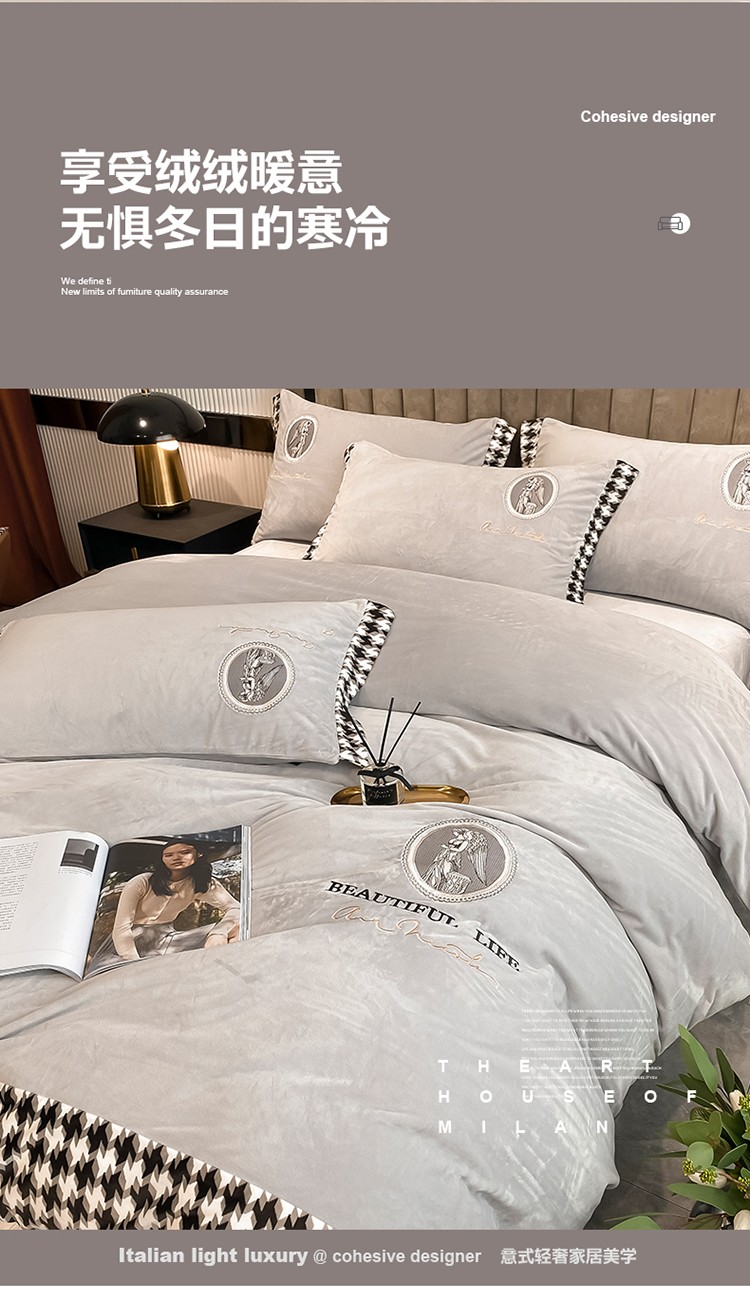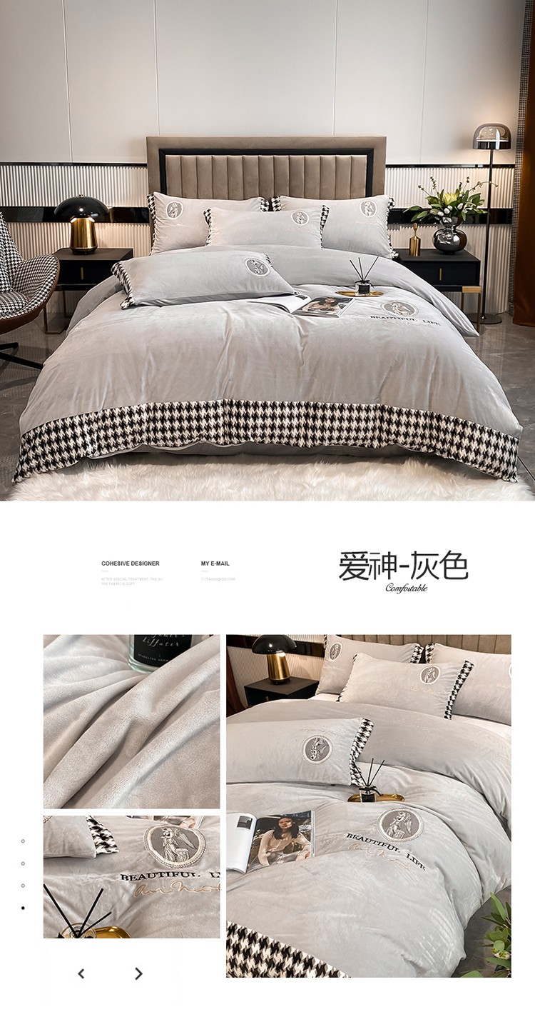 澳梵 2021【爱神系列】婴儿绒轻奢风刺绣四件套 爱神-灰色