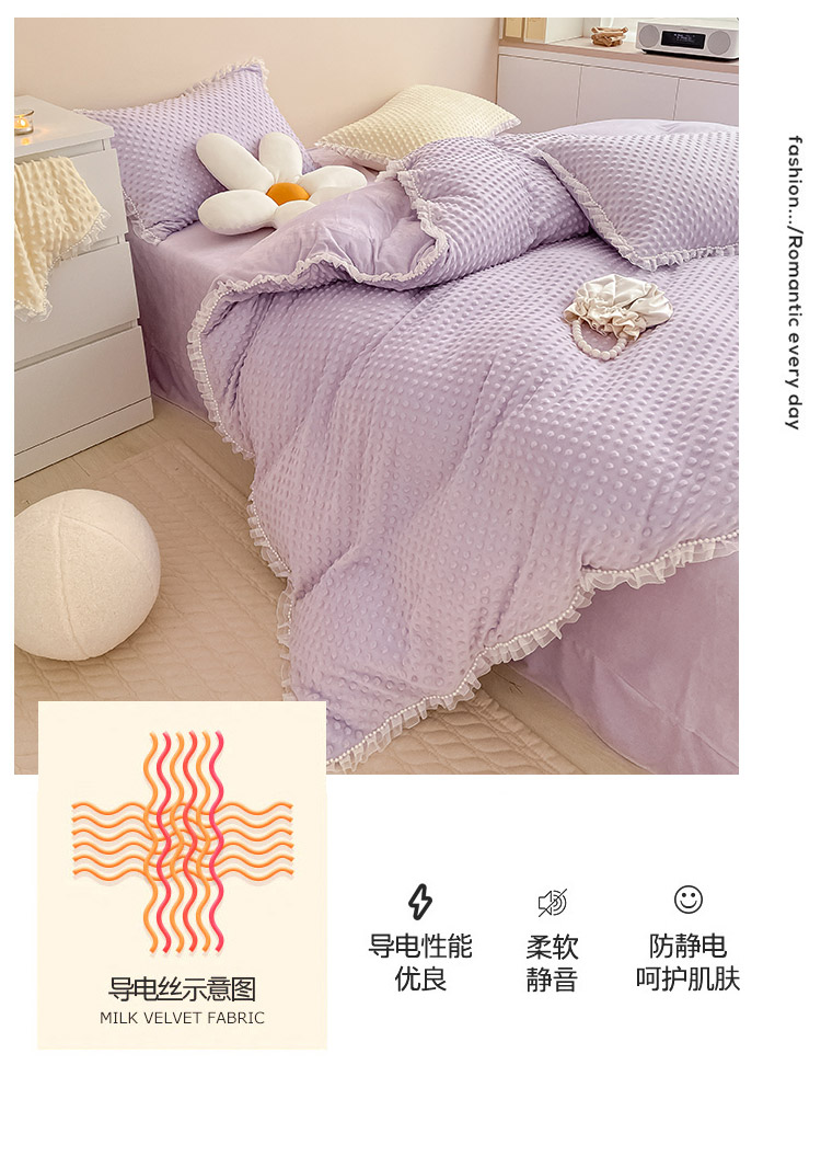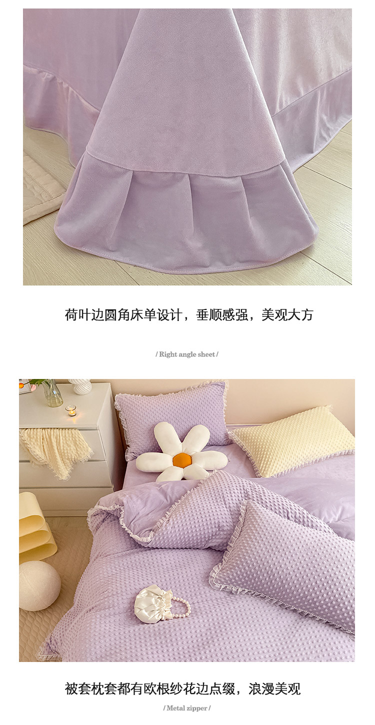 商品名称:玛奇朵 2021新款豆豆绒珍珠款四件套-梦露系列 梦露-丁香紫