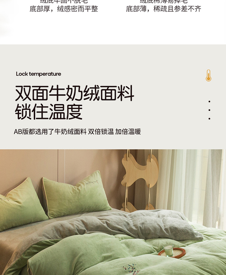 (总)凡客家居 2024新款A类加厚230克纯色双拼牛奶绒四件套,草绿+奶黄,姜黄+深灰,奶白+奶茶咖,奶茶咖+奶咖,奶咖+奶茶咖,奶油粉+奶咖,奶油黄+香芋紫,浅灰+深灰,天蓝+奶咖,香芋紫+浅粉