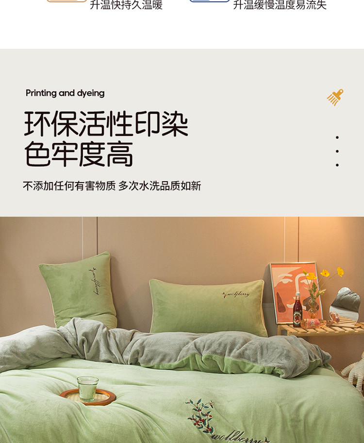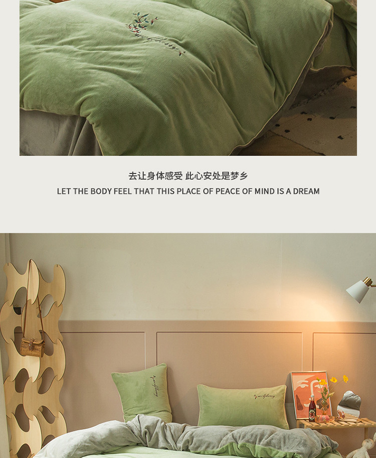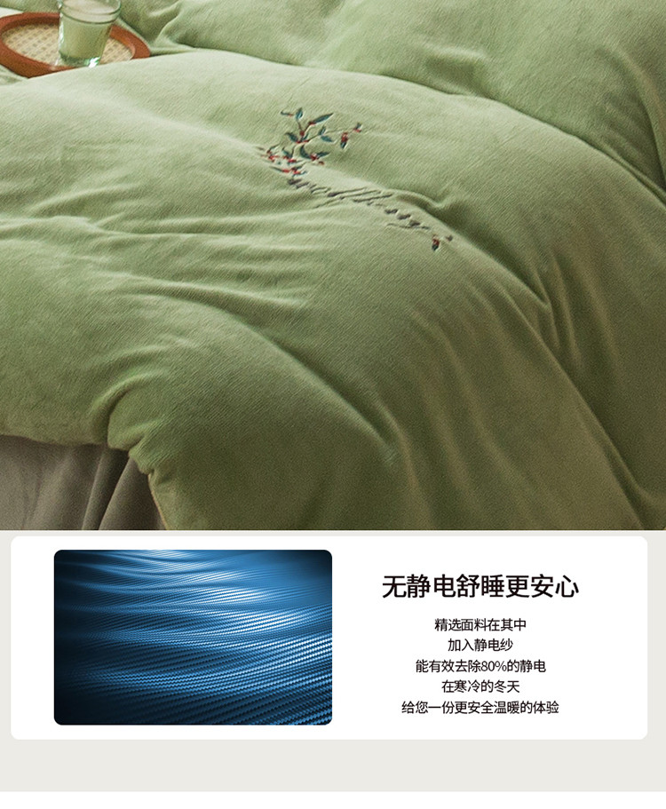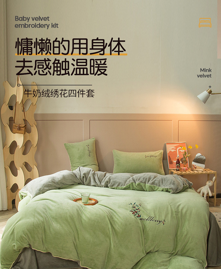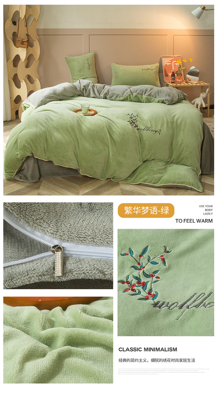 凡客家居 2021秋冬新款工艺款牛奶绒四件套 繁华梦语-绿