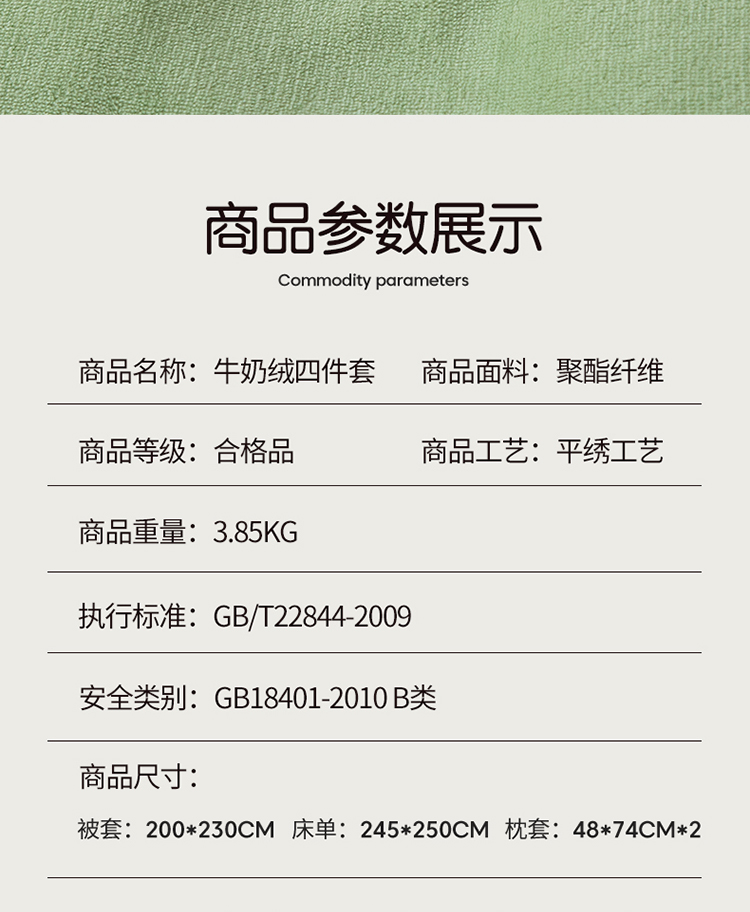 商品名称:凡客家居 2021秋冬新款工艺款牛奶绒四件套 繁华梦语-绿