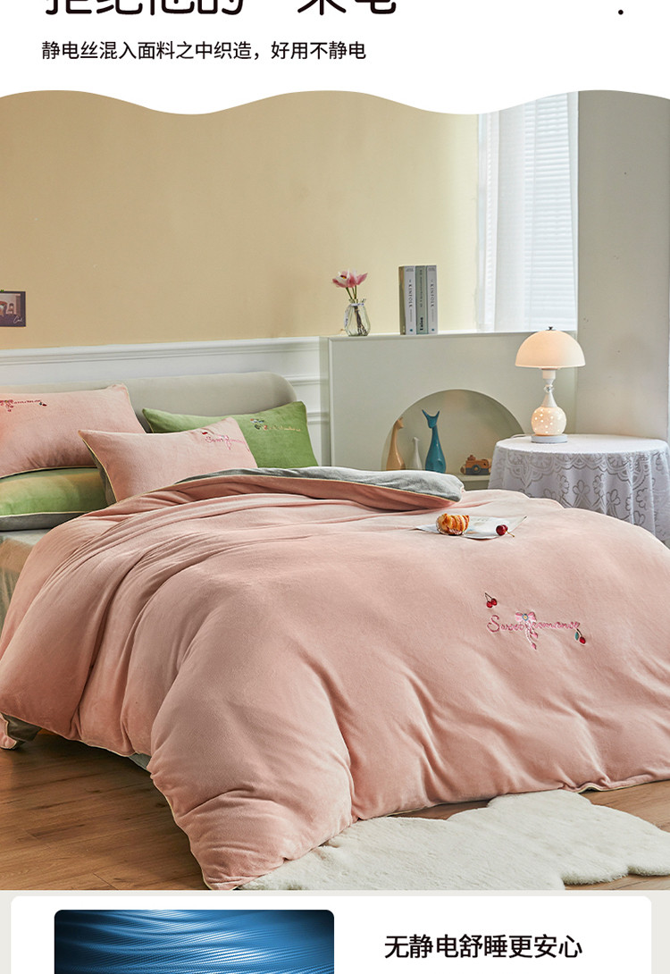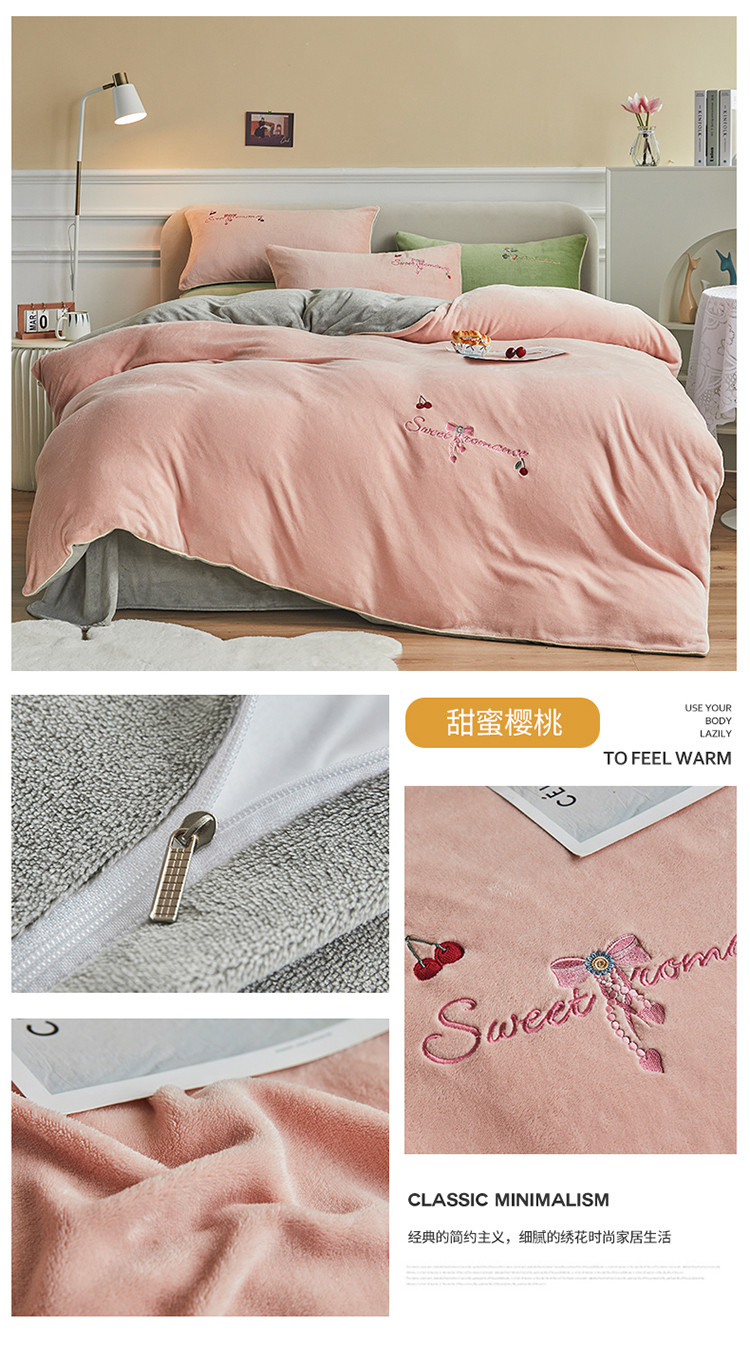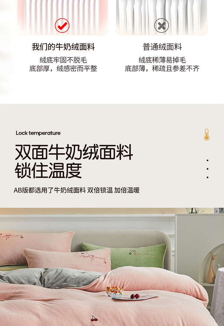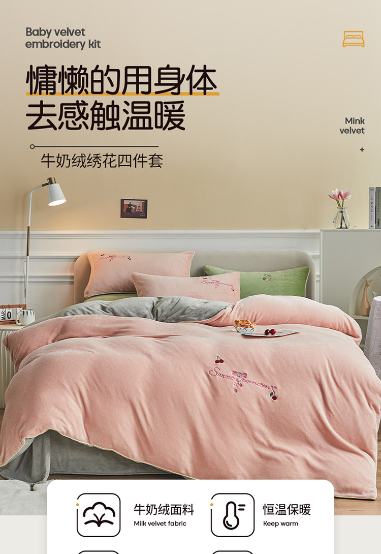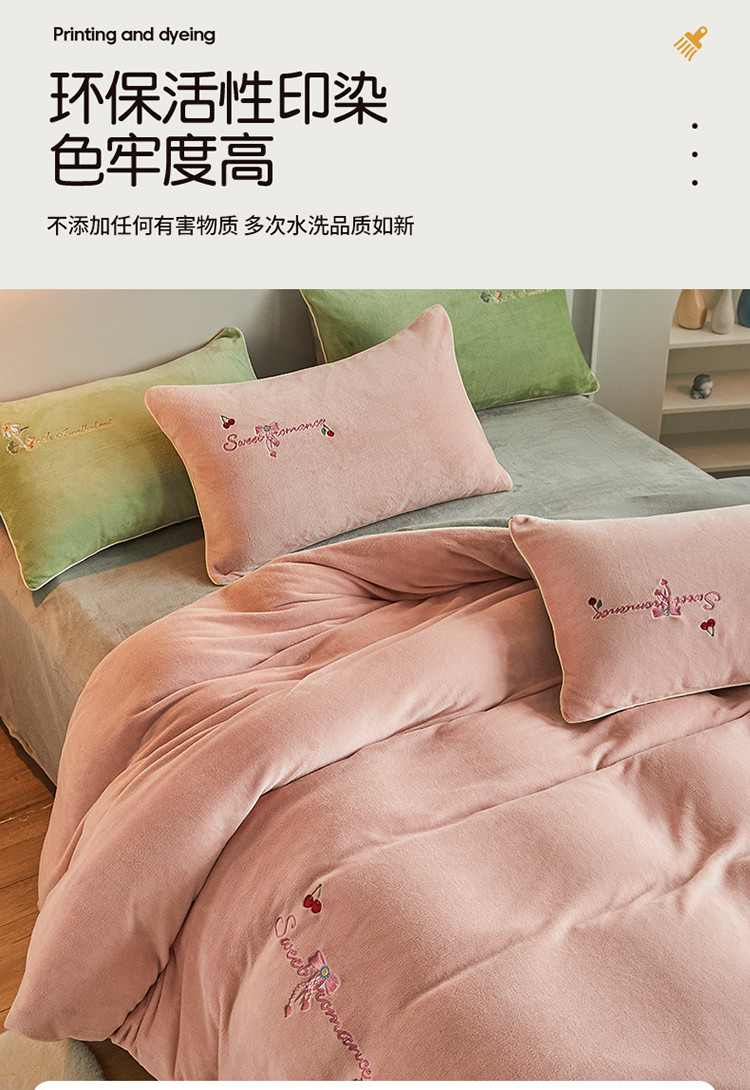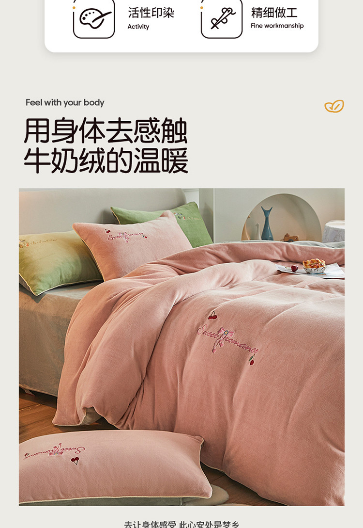 凡客家居 2021秋冬新款工艺款牛奶绒四件套 甜蜜樱桃