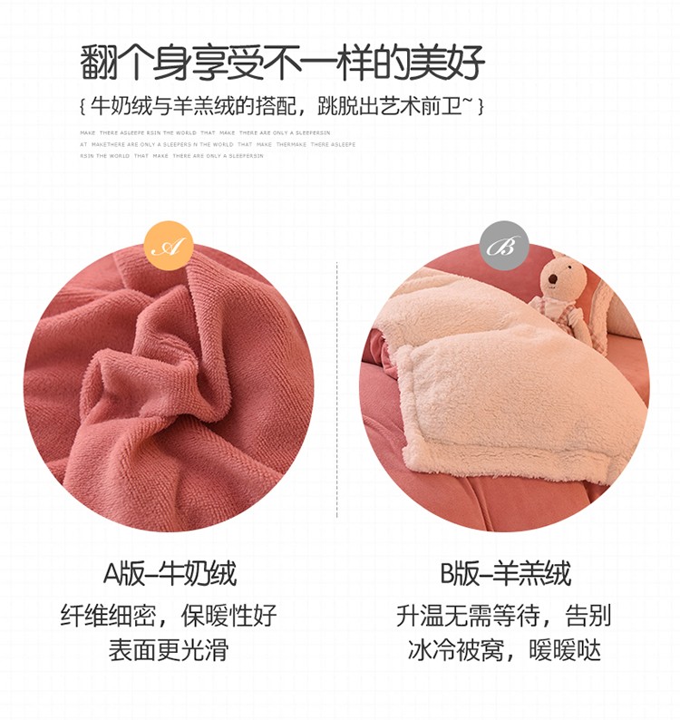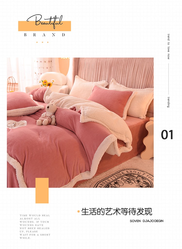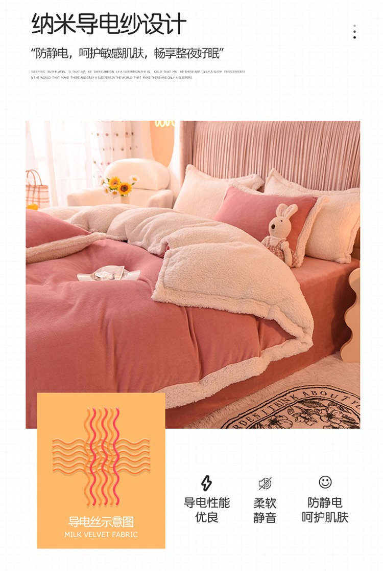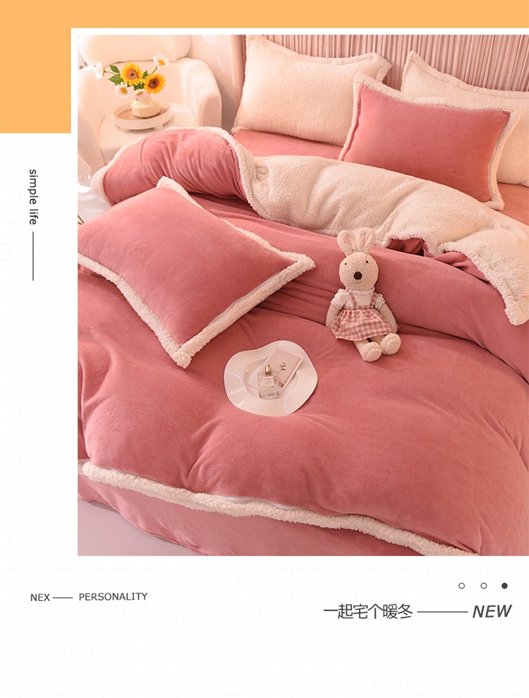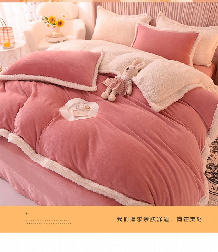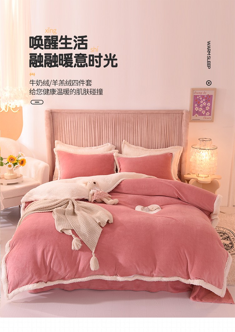 商品名称:艾米 2021新款牛奶绒羊羔绒双拼四件套 豆沙