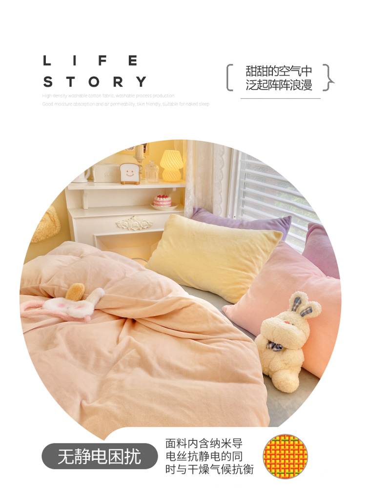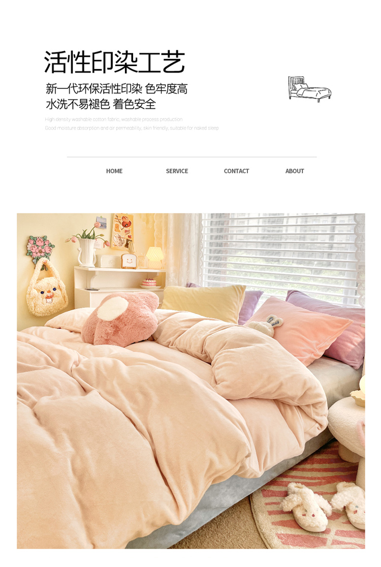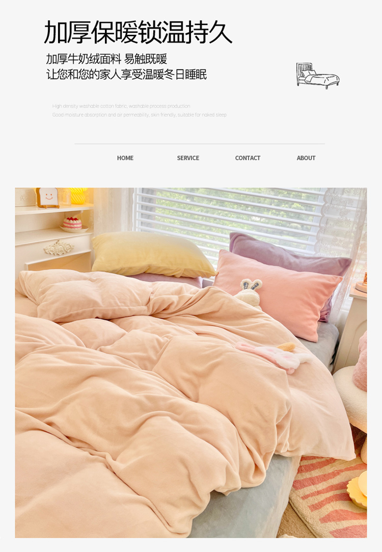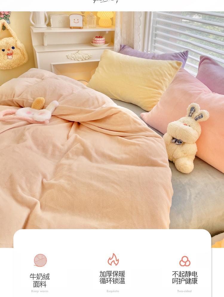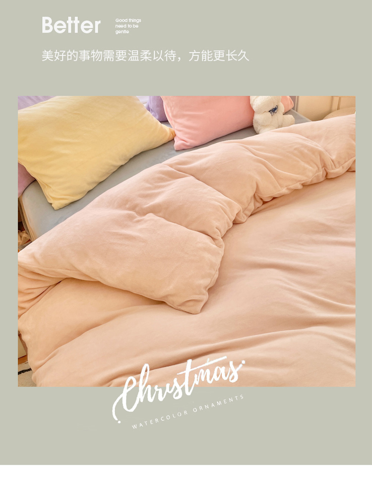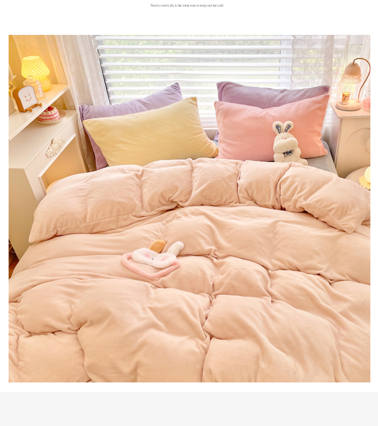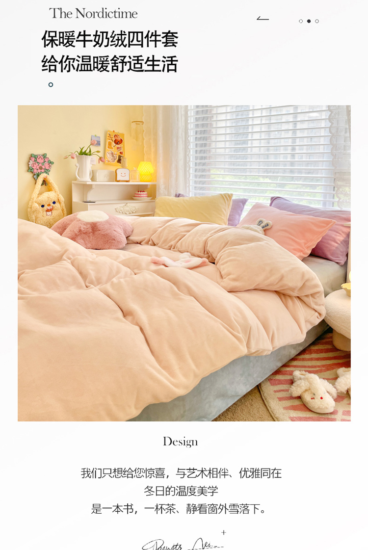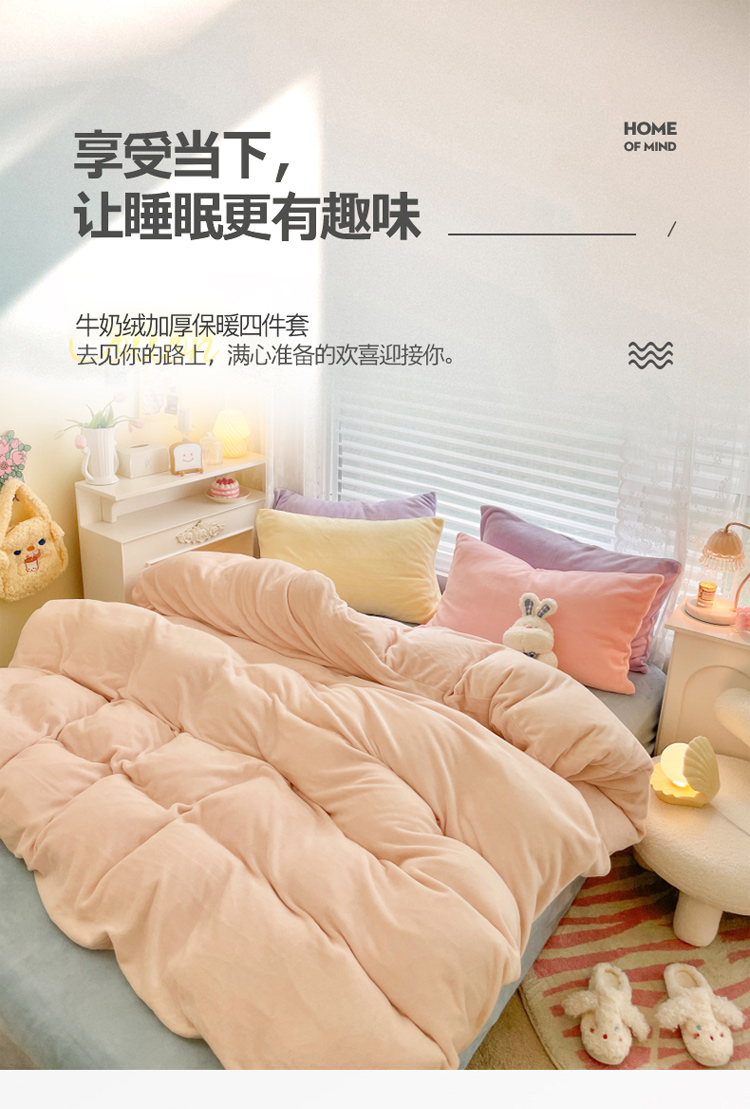 当前位置: 91家纺网 > 商品网购 > 床品套件 > 四件套 > 牛奶绒四件套 > 慕尚 2022新款纯色搭色奶油席牛奶绒四件套 少女-奶茶