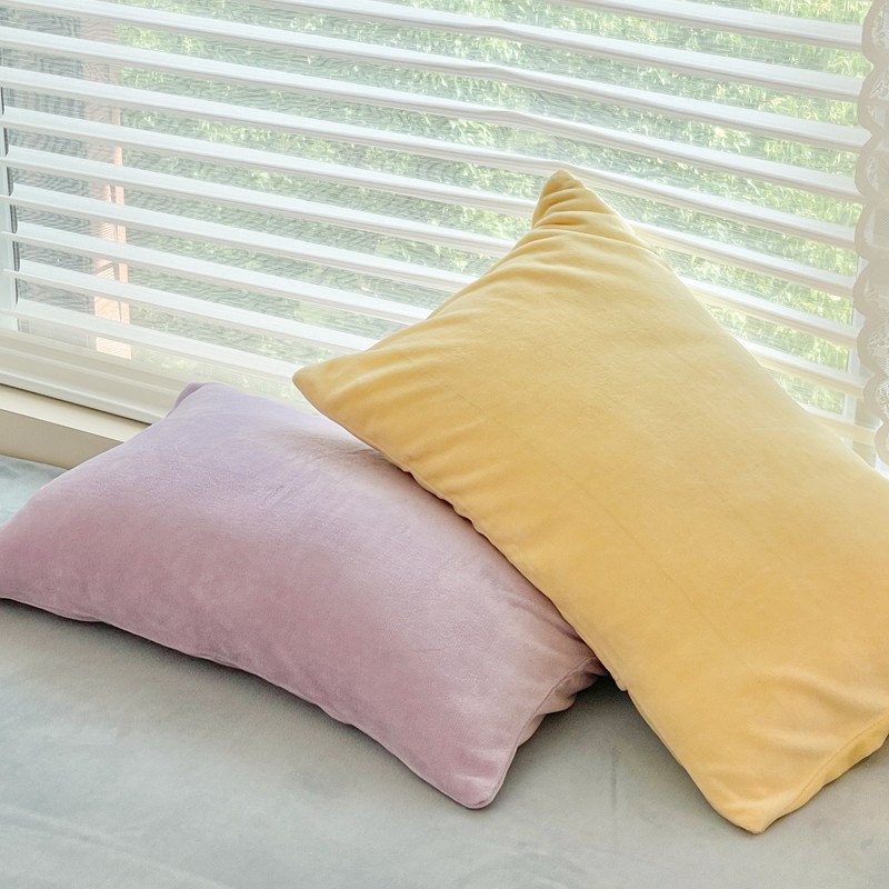 慕尚2022新款纯色搭色奶油席牛奶绒枕套48*74cm黄+紫