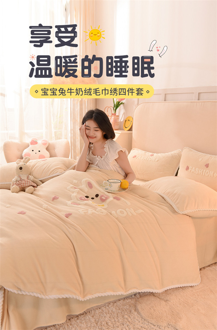 (总)菲儿 2022新款毛巾绣牛奶绒四件套,旺仔-粉玉,旺仔-萝莉粉,旺仔-麦穗黄,旺仔-梦蓝,旺仔-抹茶绿,旺仔-奶西白,旺仔-香芋紫,甜蜜小兔-浅灰蓝,甜蜜小兔-浅紫,甜蜜小兔-秋梨黄,甜蜜小兔-仙女粉,甜蜜小兔-星冰绿,甜蜜小兔-阳光玉,甜蜜小兔-芝士白
