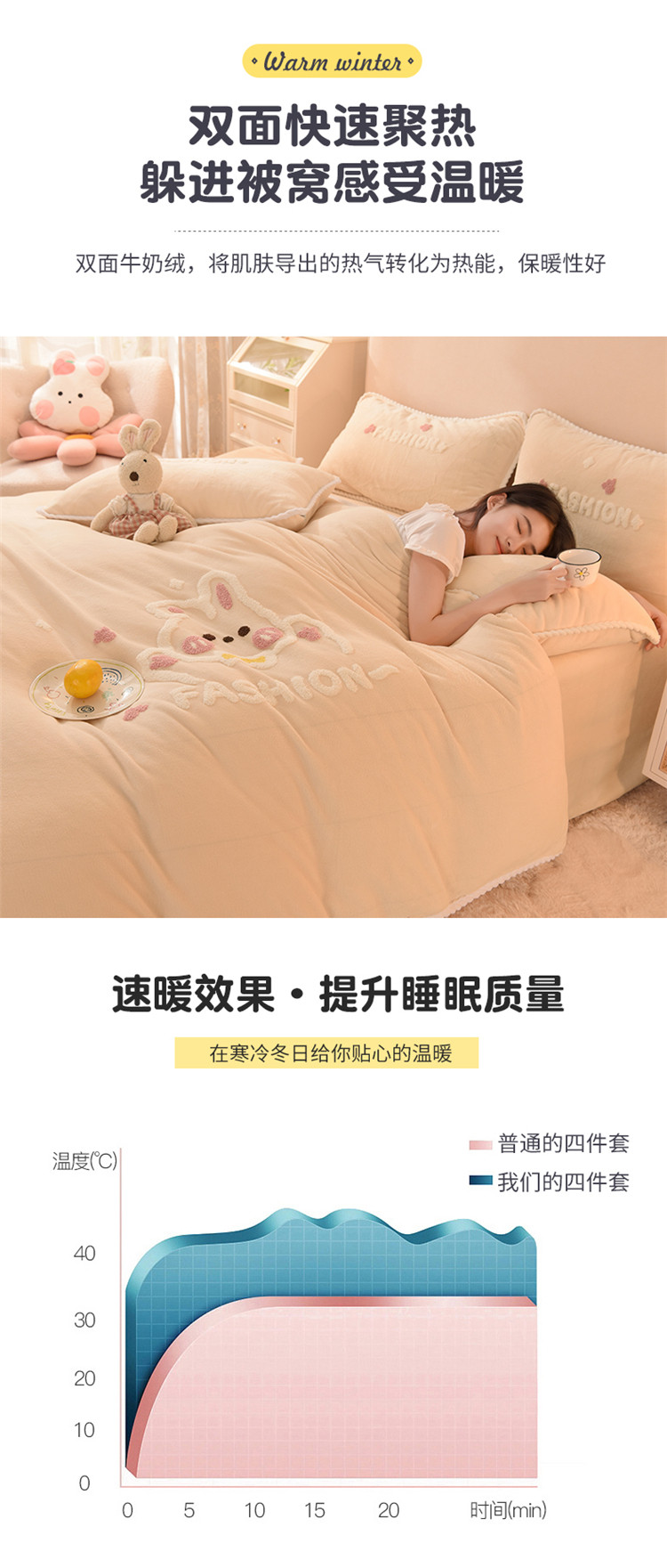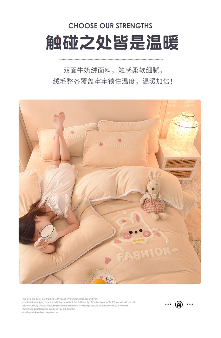 商品名称:菲儿 2021新款牛奶绒四件套法莱水晶 宝宝兔-米白