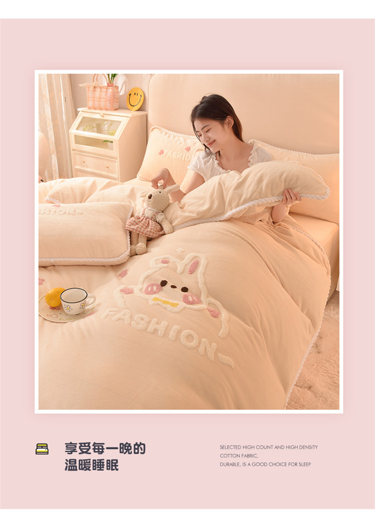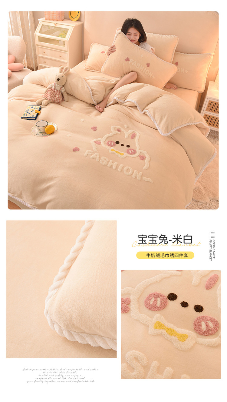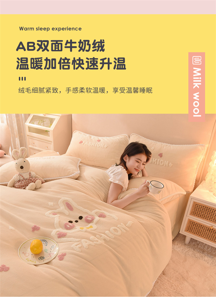 菲儿 2021新款牛奶绒四件套法莱水晶 宝宝兔-米白
