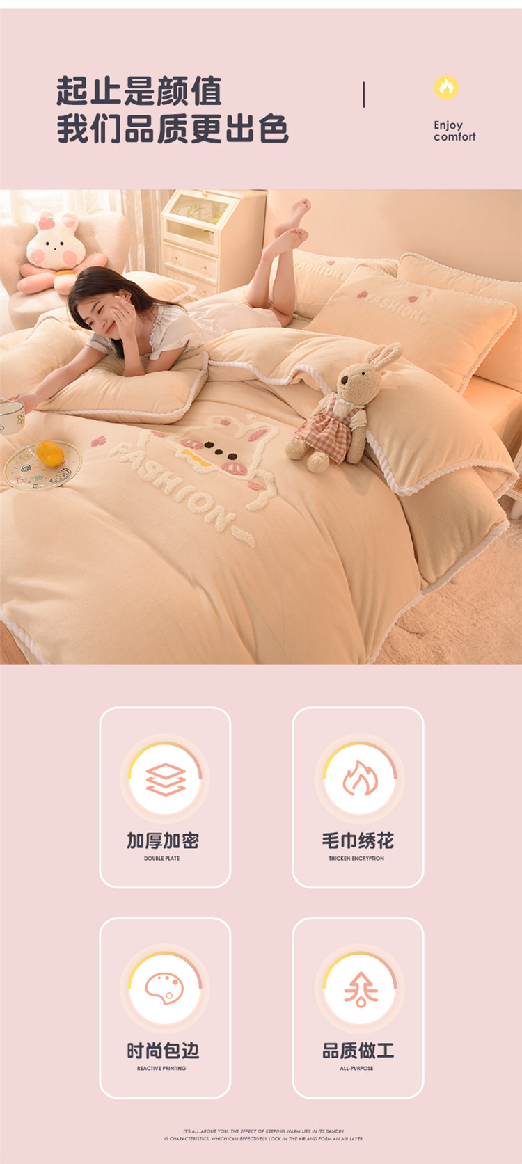 (总)菲儿家纺 2023新款毛巾绣牛奶绒四件套,哇塞小熊-豆绿,哇塞小熊-金桔黄,哇塞小熊-浅粉,哇塞小熊-优雅紫,哇塞小熊-月光蓝,小熊猫-奶黄,小熊猫-少女粉,小熊猫-松石绿,小熊猫-星空蓝,小熊猫-芋泥紫