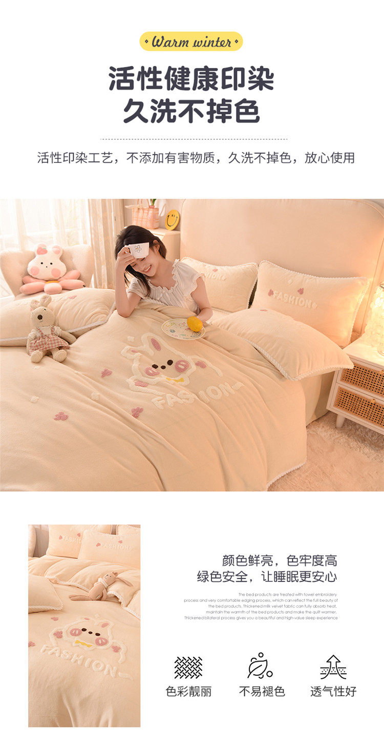 (总)菲儿 2021新款牛奶绒四件套法莱水晶绒,宝宝兔-海洋蓝,宝宝兔-米白,宝宝兔-柠檬黄,宝宝兔-藕粉,宝宝兔-水绿,宝宝兔-紫丁香,快乐熊-玫瑰紫,快乐熊-嫩绿,快乐熊-乳白,快乐熊-桃花粉,快乐熊-蔚蓝,快乐熊-玉米黄