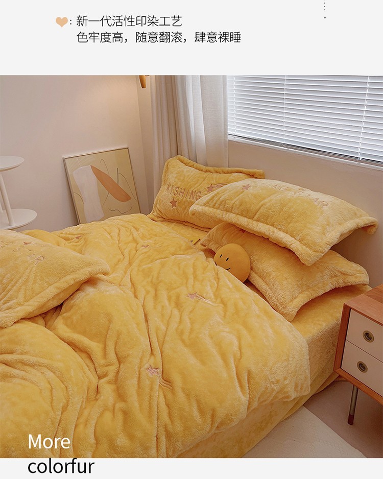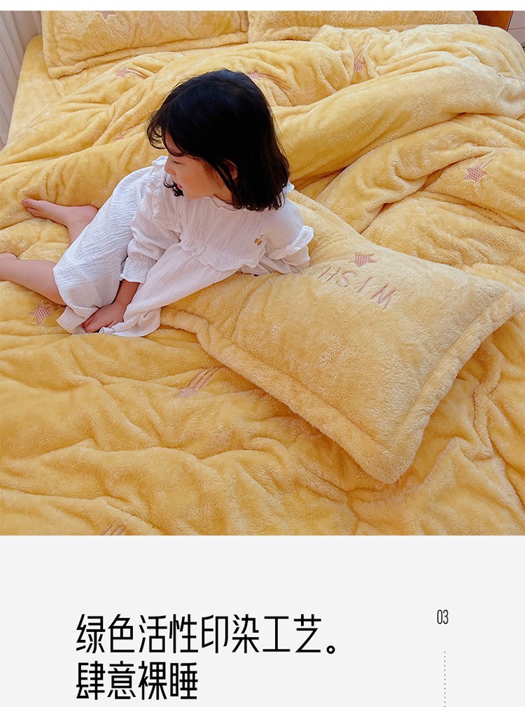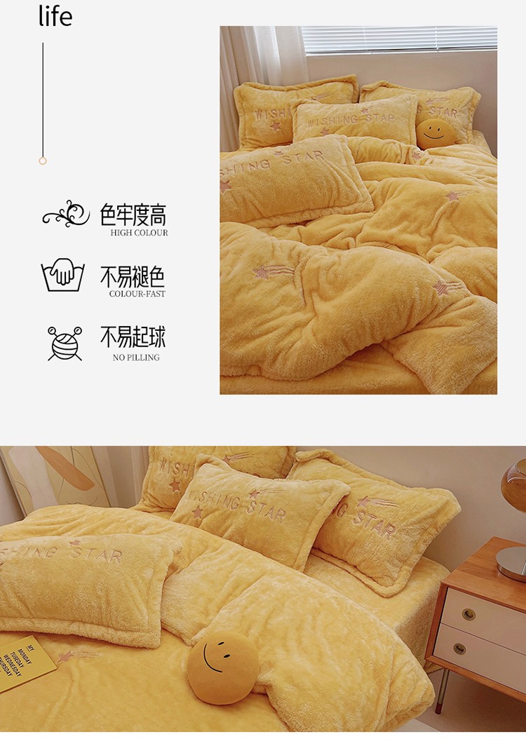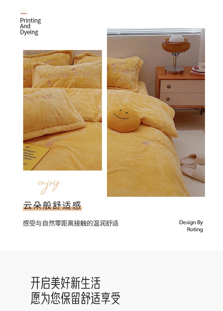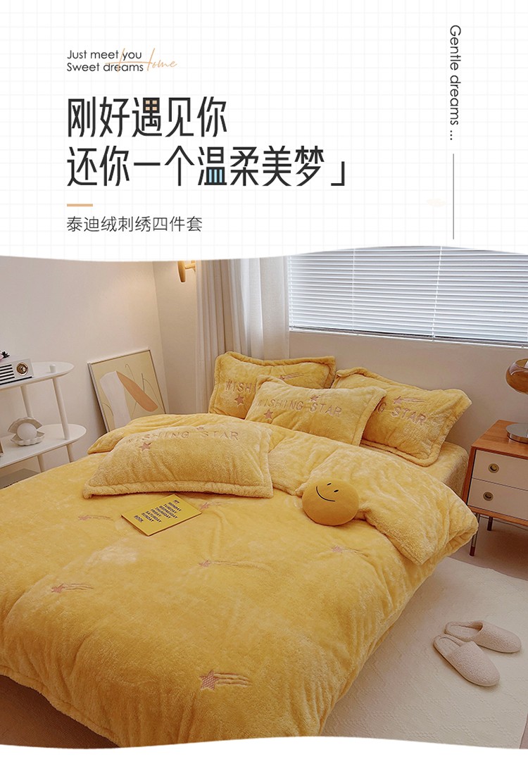商品名称:雅居纺 2022新款泰迪绒绣花四件套拍摄风格1 许愿星-姜黄