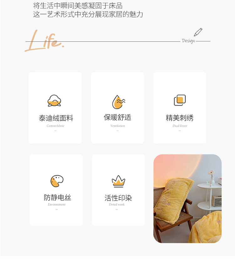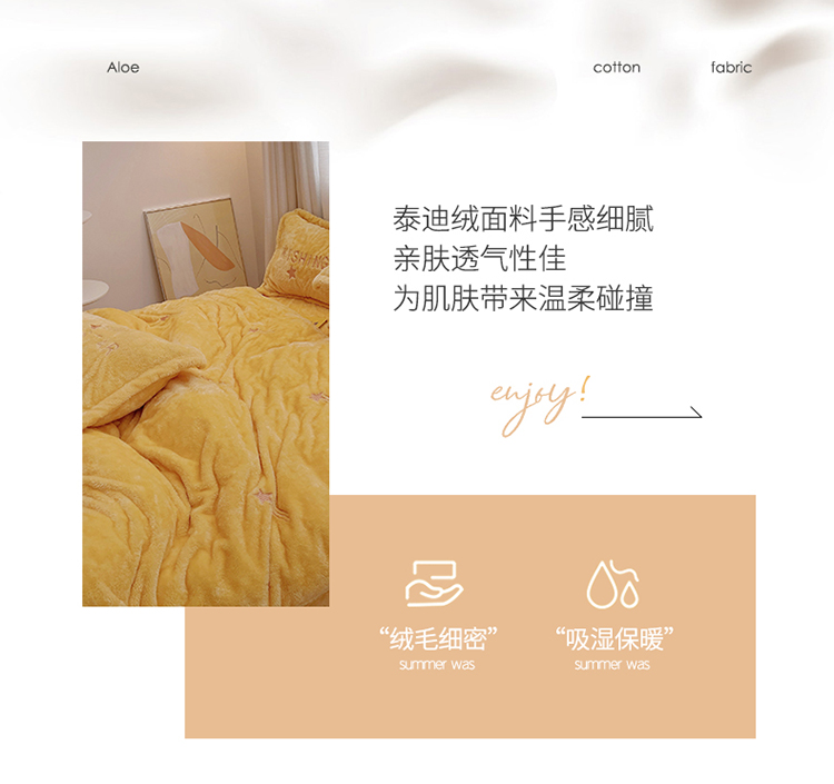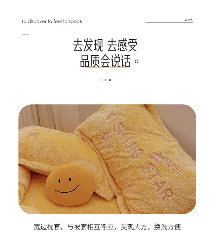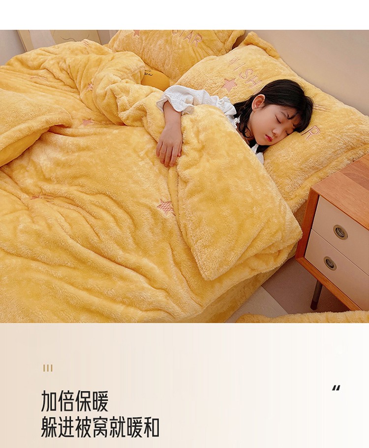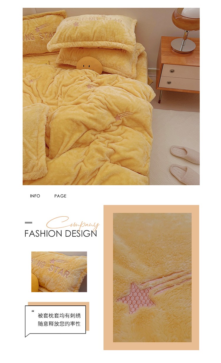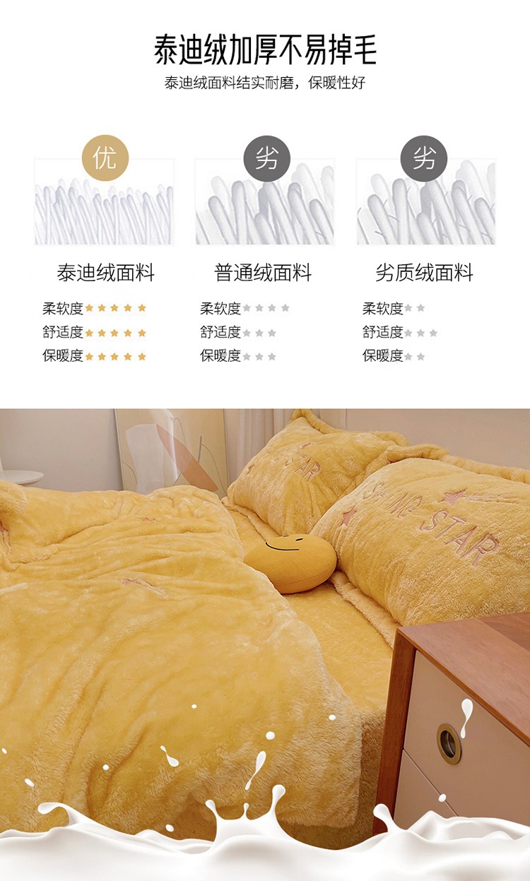 商品名称:雅居纺 2022新款泰迪绒绣花四件套拍摄风格1 许愿星-姜黄
