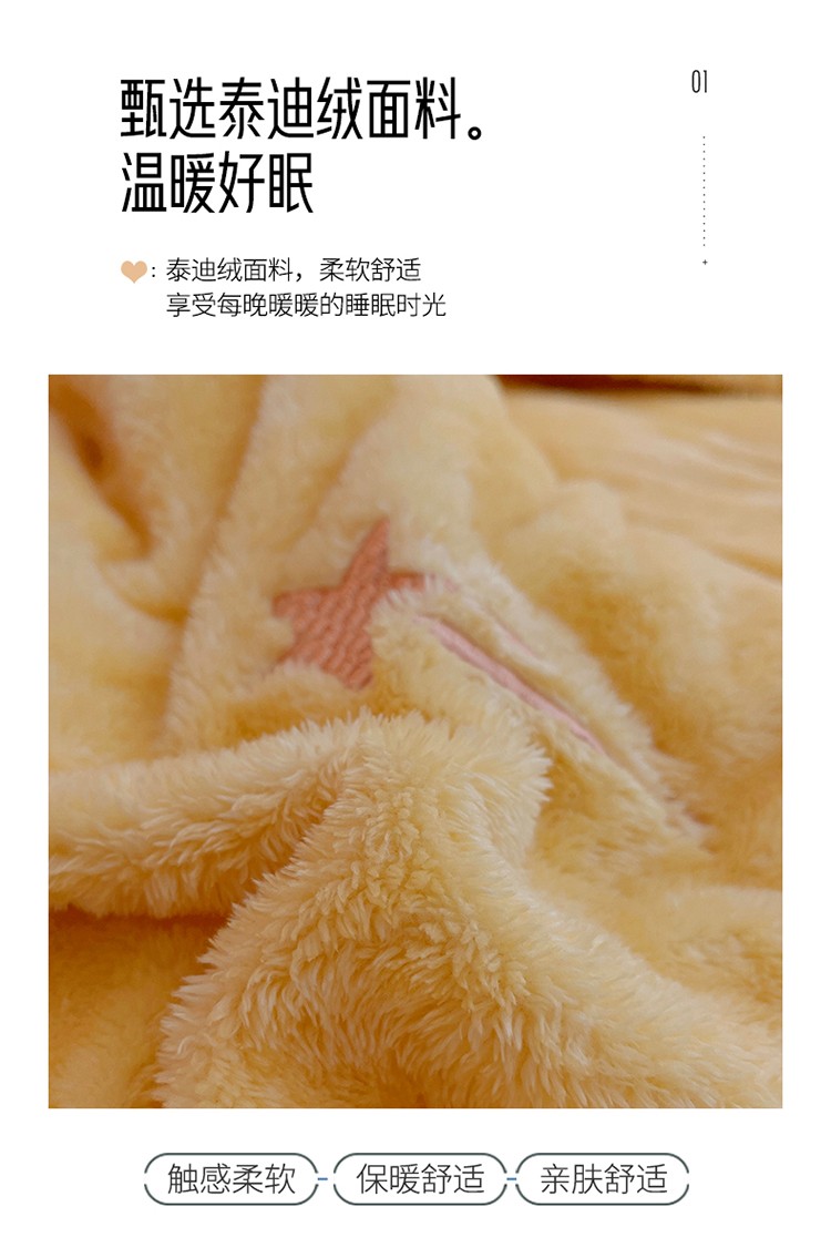 雅居纺 2022新款泰迪绒绣花四件套拍摄风格1 许愿星-姜黄