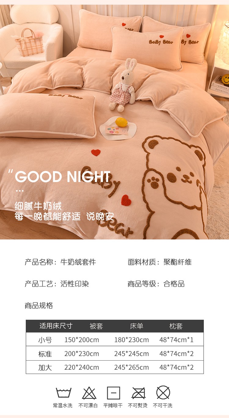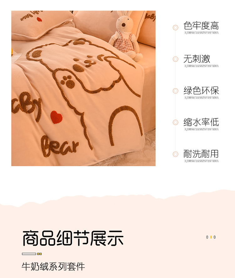 商品名称:大米家居2023新款卡通毛巾绣牛奶绒宝宝绒四件套梦奇卡其驼