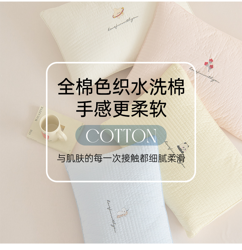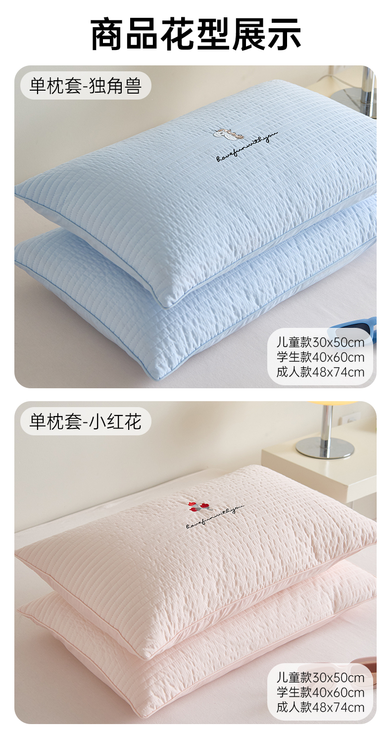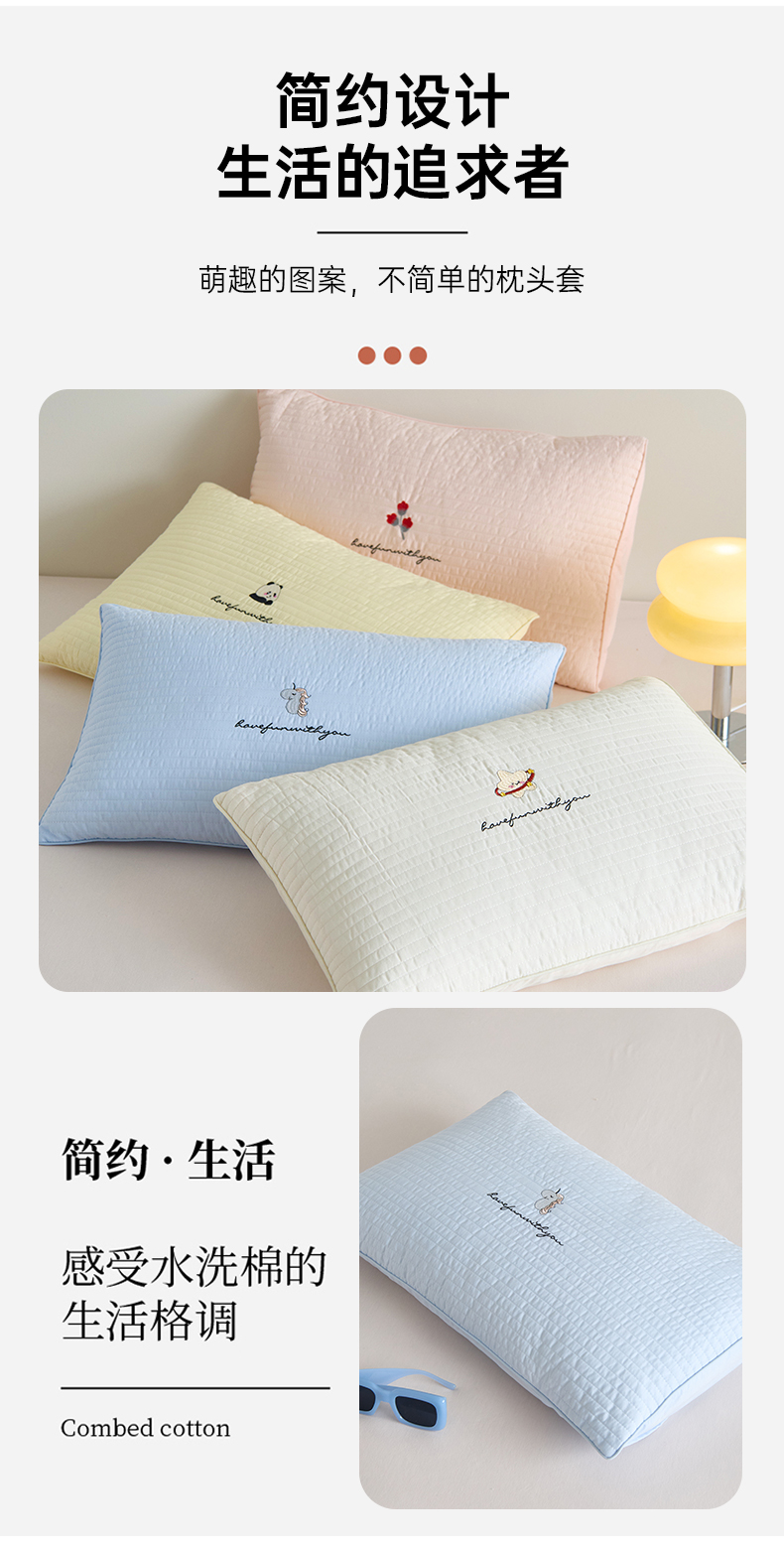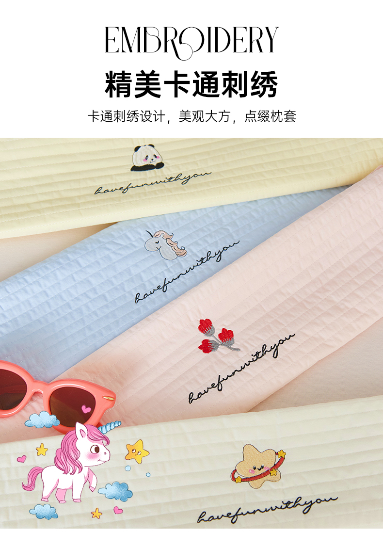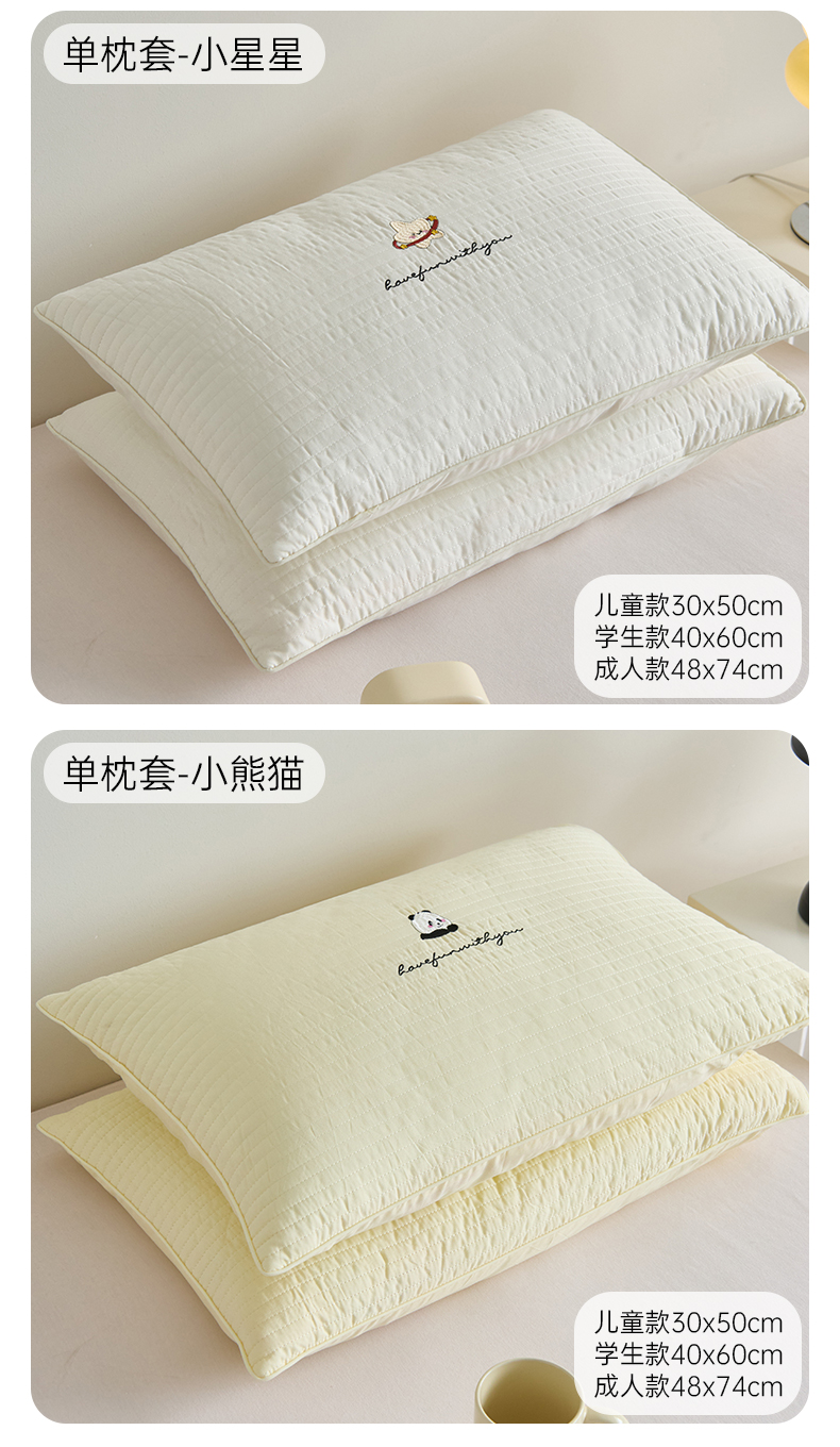 床上用品 > 枕套 > (总)昕科 2025新款单品】A类水洗全棉绗缝夹棉--单枕套-色织水洗棉刺绣卡通纯棉儿童幼儿园枕套学生单枕套枕芯枕套枕头