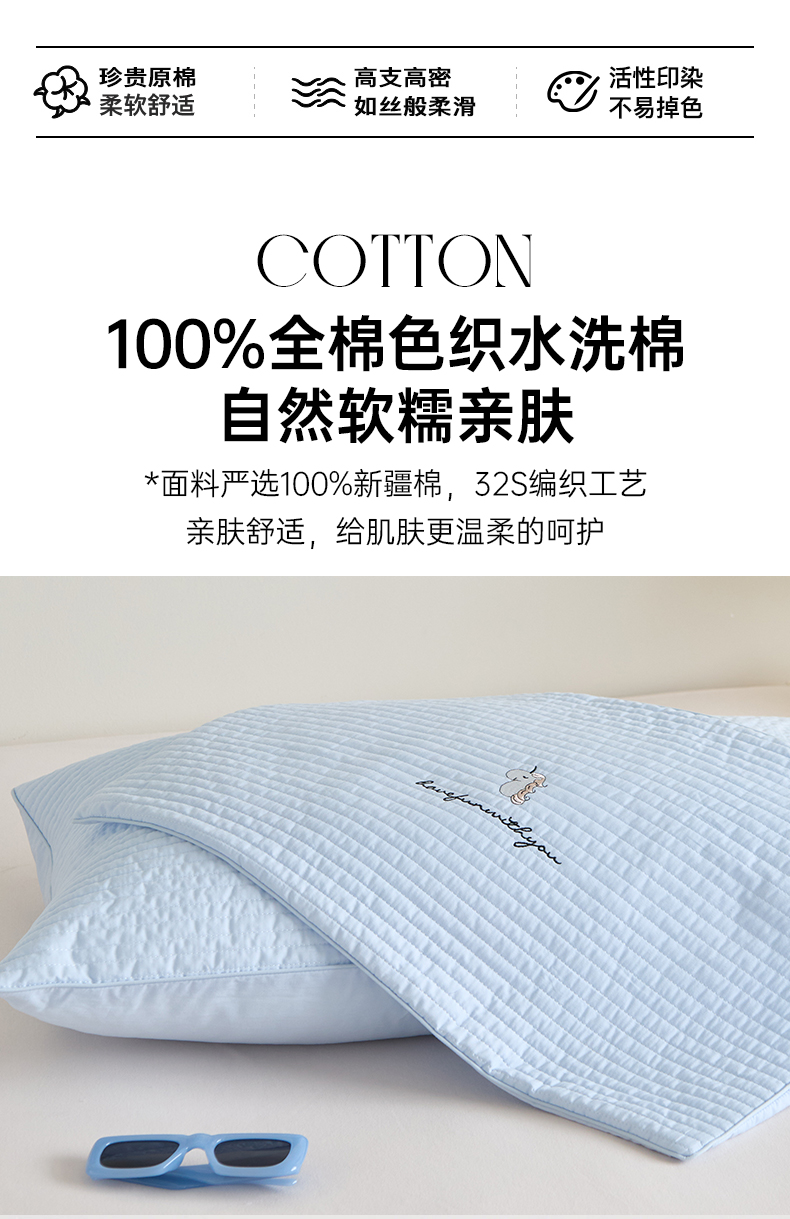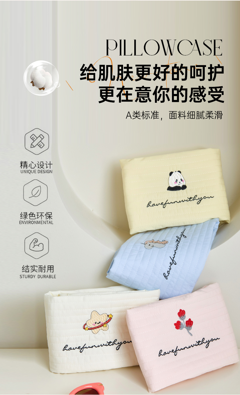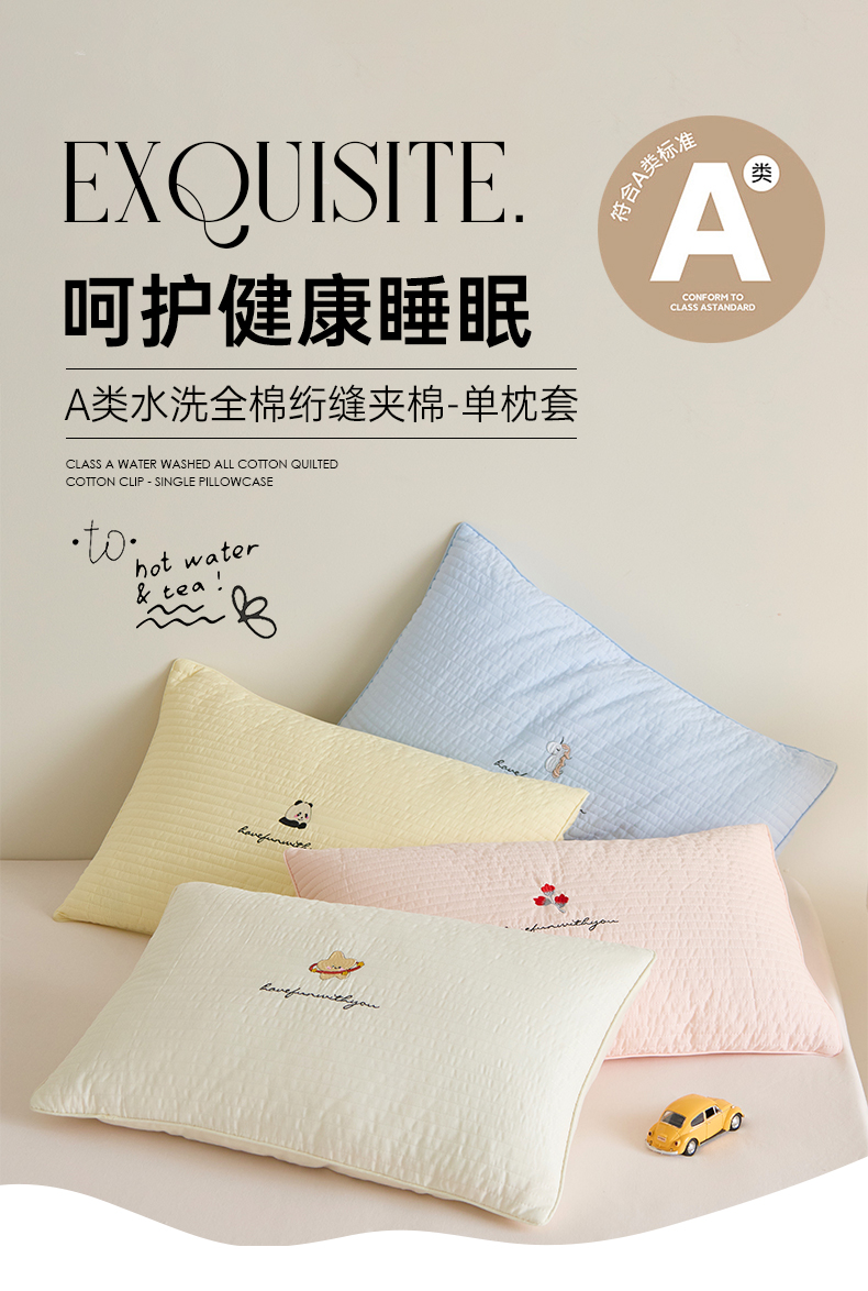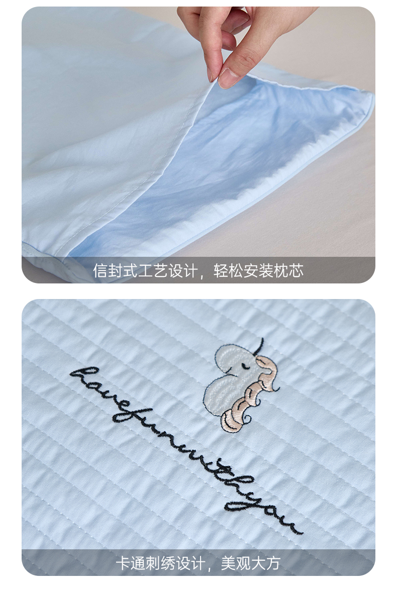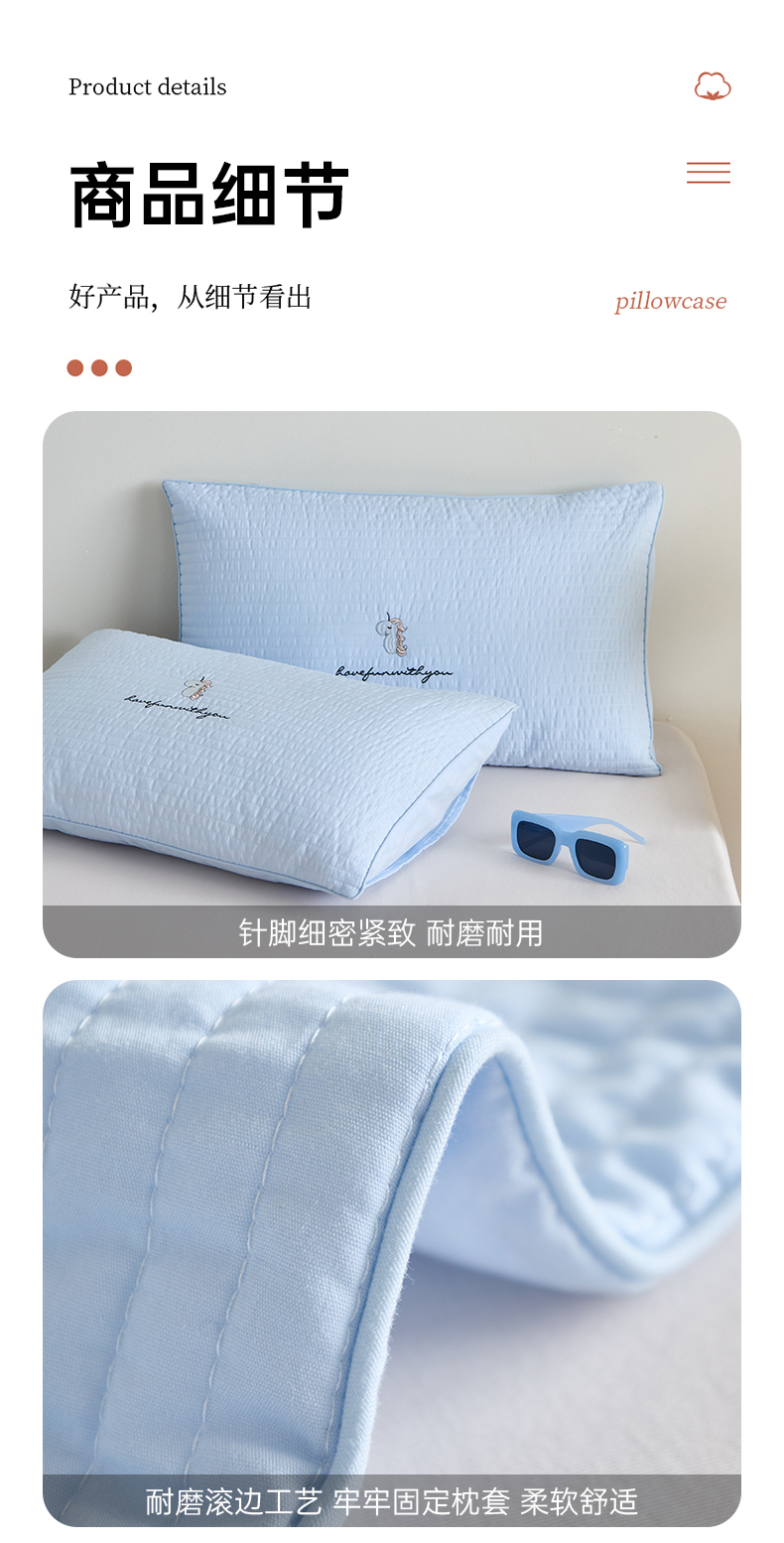 床上用品 > 枕套 > (总)昕科 2025新款单品】A类水洗全棉绗缝夹棉--单枕套-色织水洗棉刺绣卡通纯棉儿童幼儿园枕套学生单枕套枕芯枕套枕头