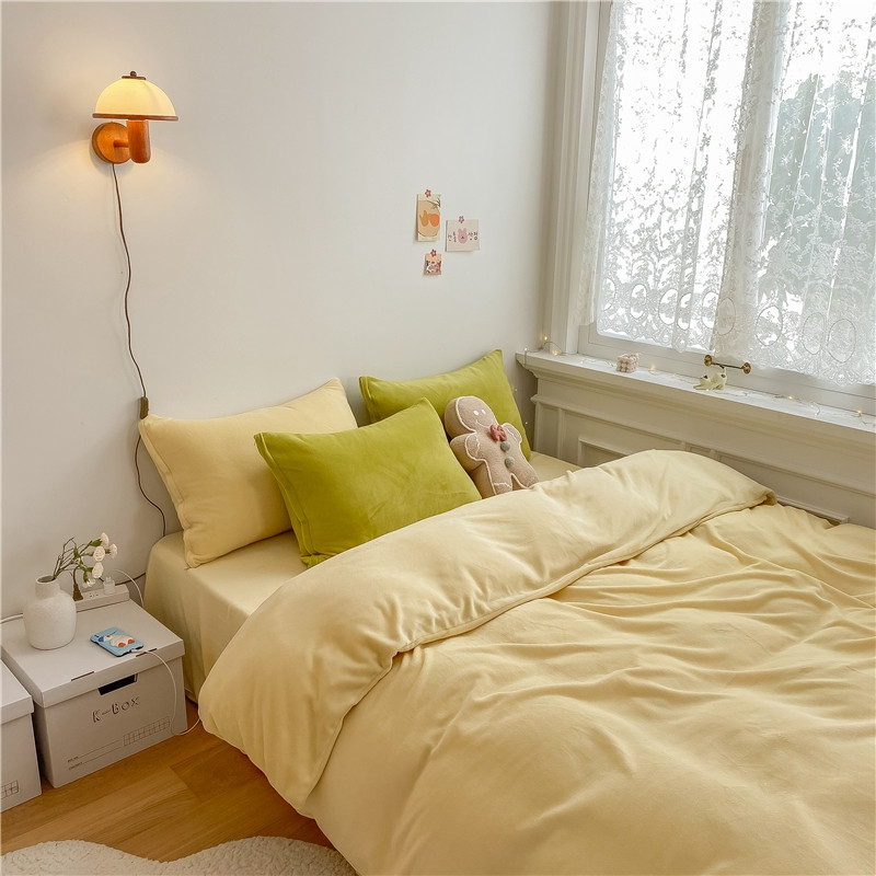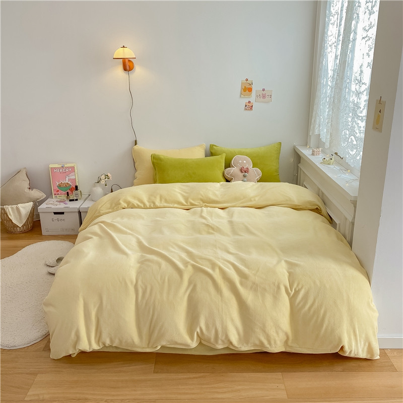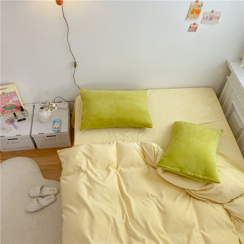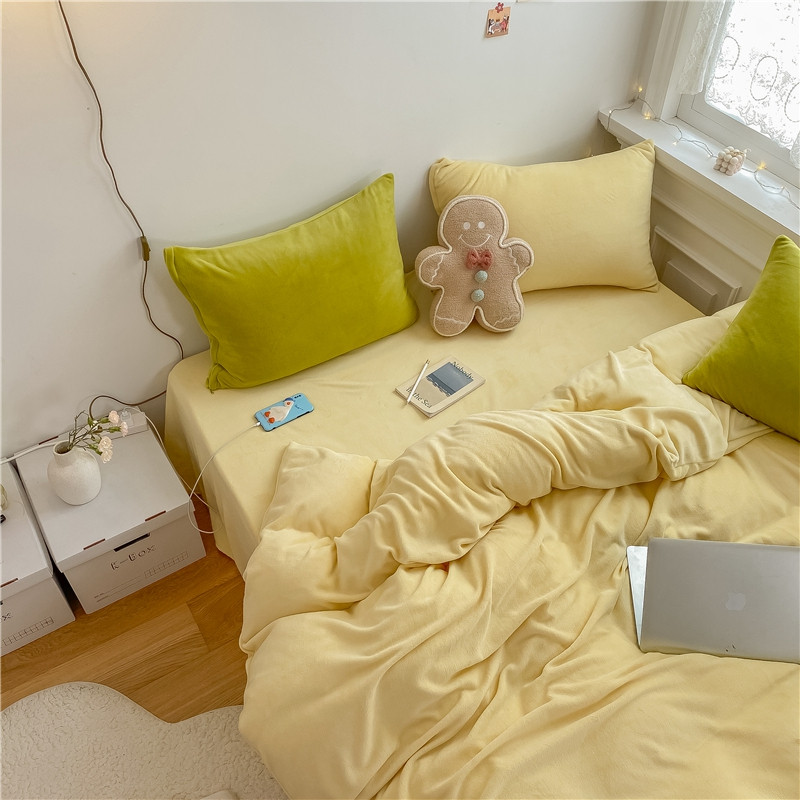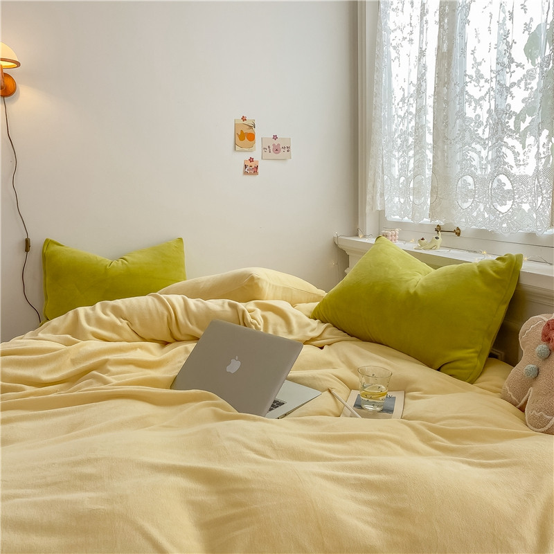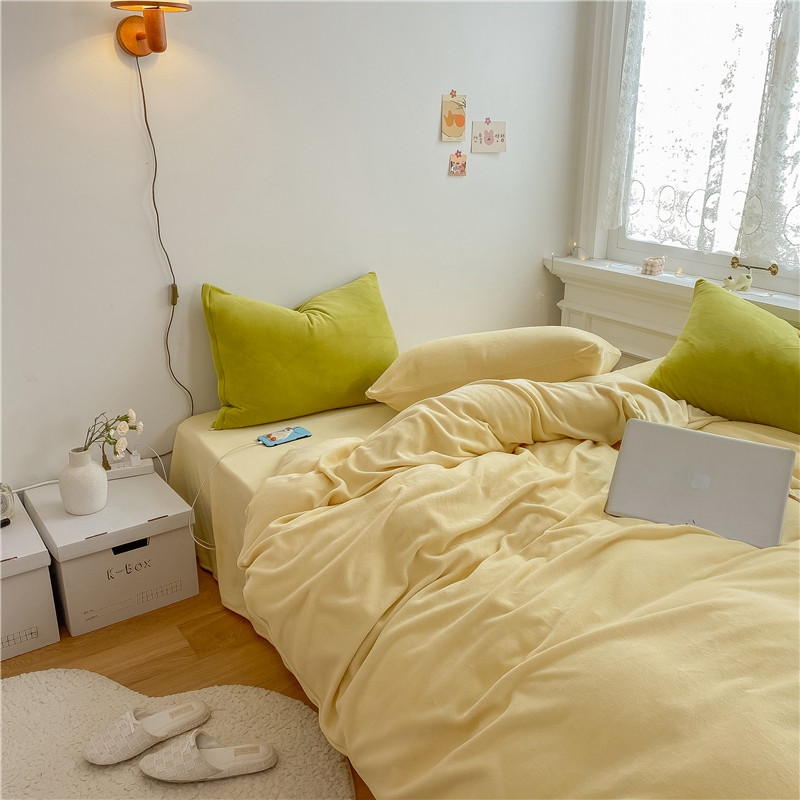 当前位置: 91家纺网 > 商品网购 > 床品套件 > 四件套 > 牛奶绒四件套 > 棉眠 2021新款秋冬纯色牛奶绒四件套 小鸡黄+牛油果绿