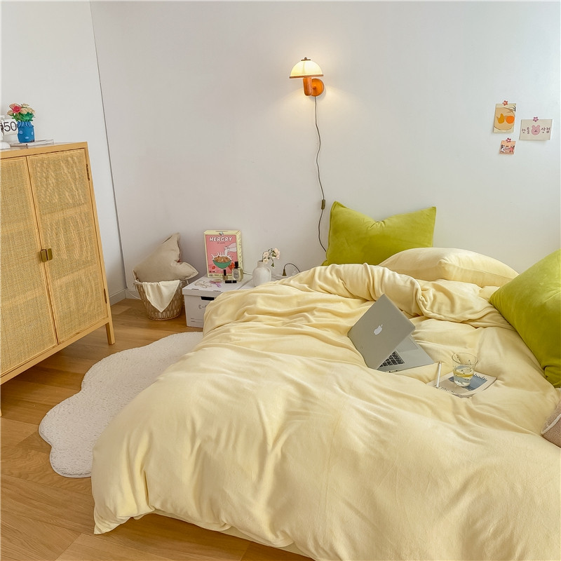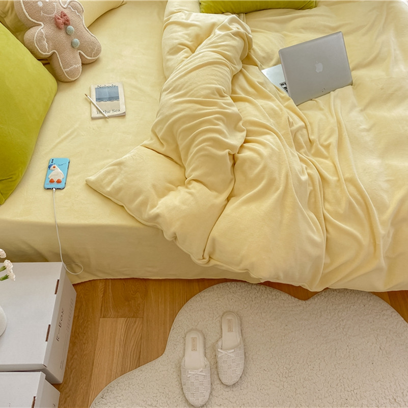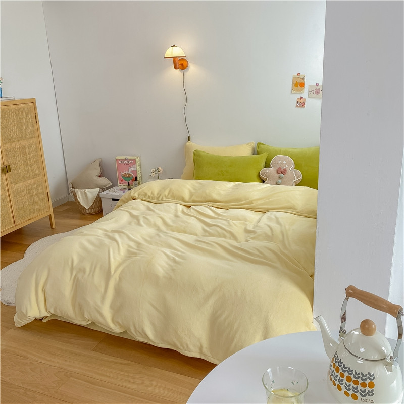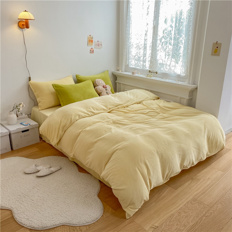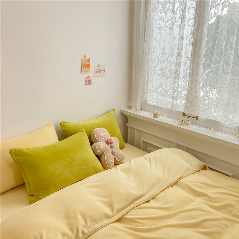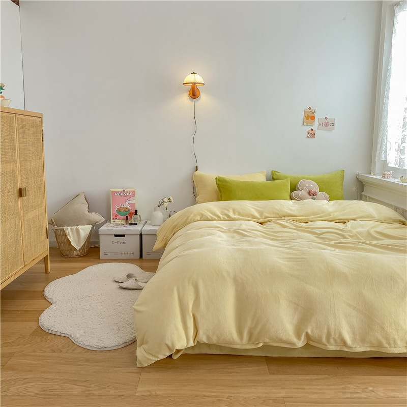 当前位置: 91家纺网 > 商品网购 > 床品套件 > 四件套 > 牛奶绒四件套 > 棉眠 2021新款秋冬纯色牛奶绒四件套 小鸡黄+牛油果绿