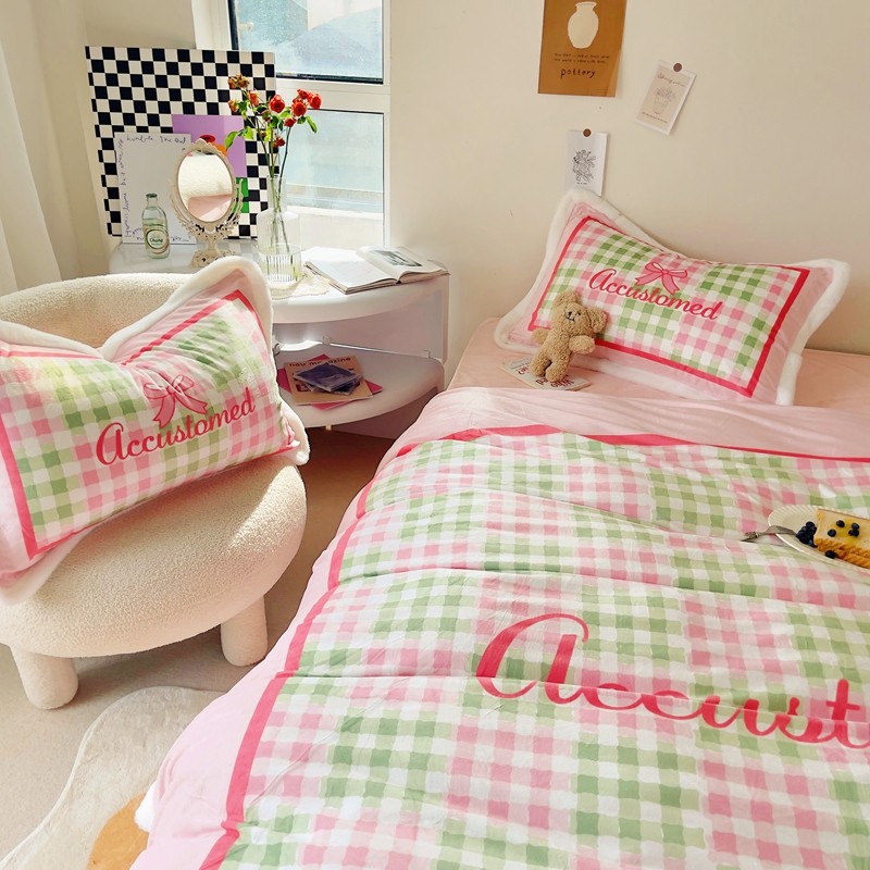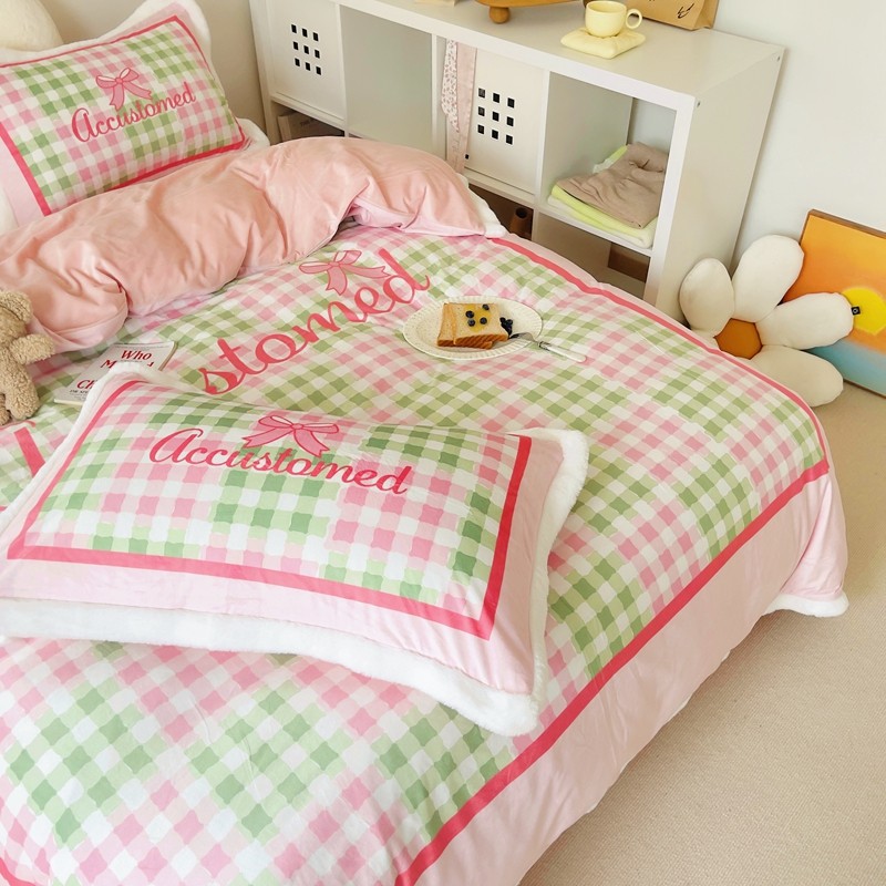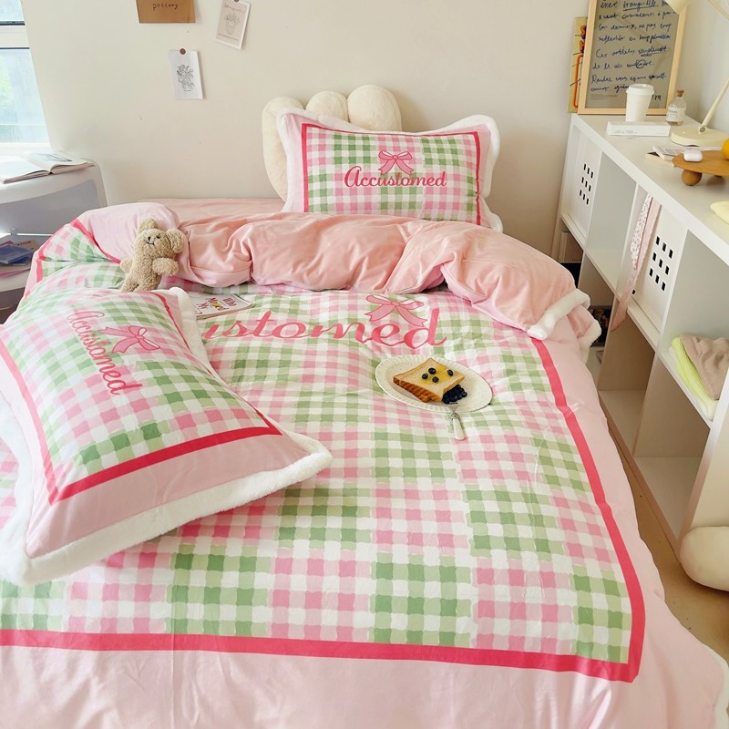 (总)圆岛家纺 2023新款原创牛奶绒印花保暖四件套,中红蓝条,天空蓝,奶油紫,尚黑细条,枣红细条,棋盘格绿,绿茵蓝条,菱星粉,蓝松绿条,黑白菱星
