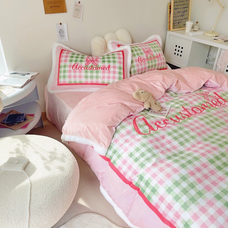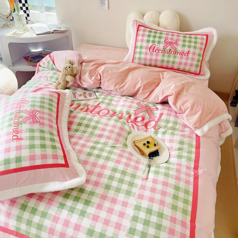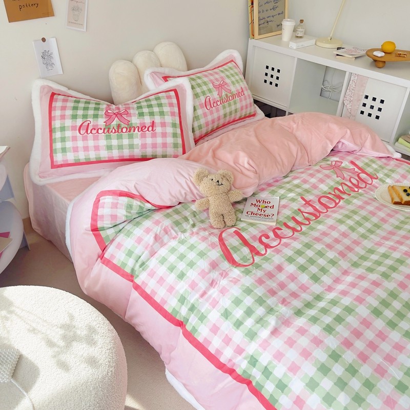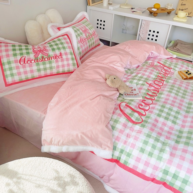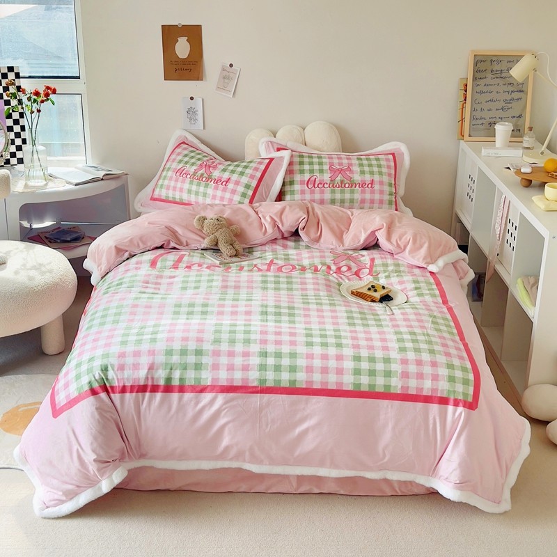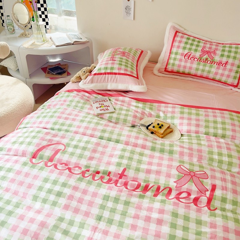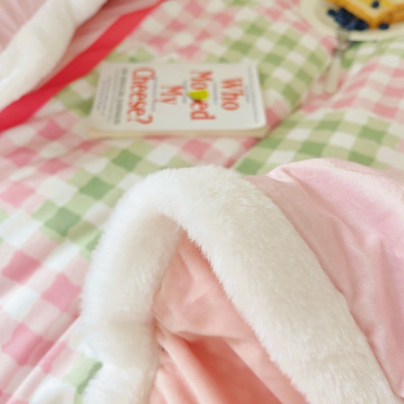 圆岛家纺 新款冬季数码印花高档婴儿绒兔兔绒四件套 奶油霓虹