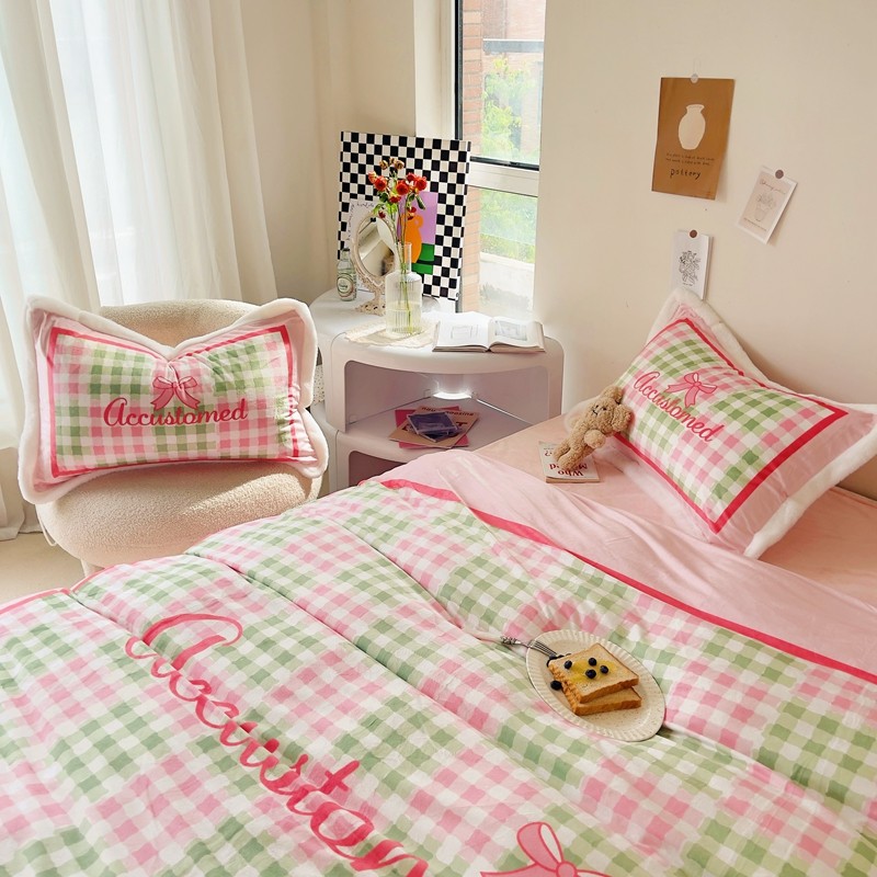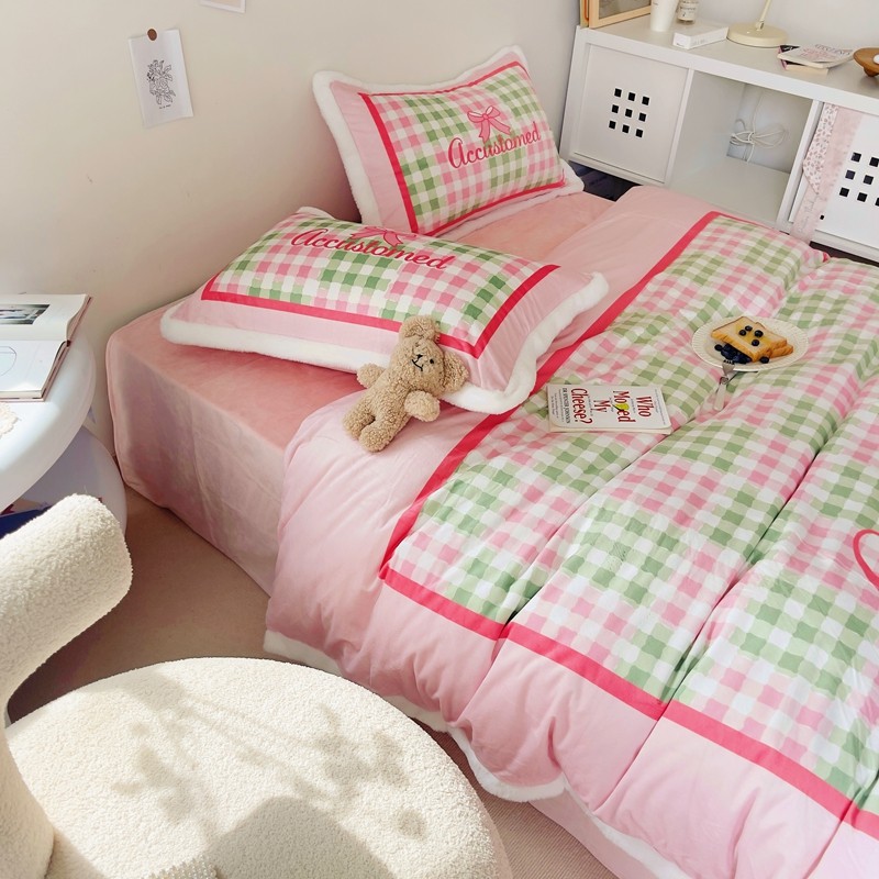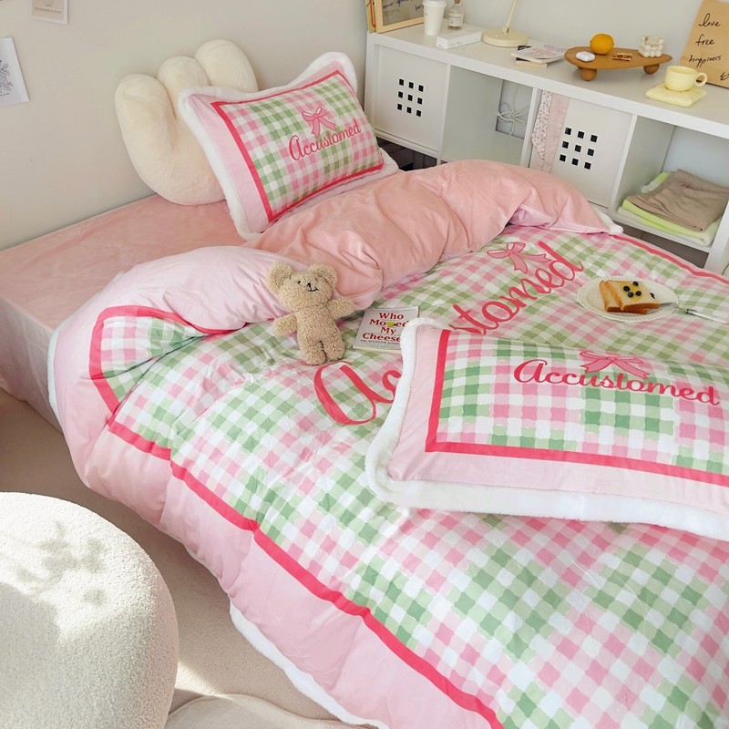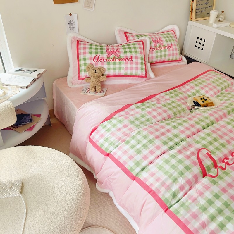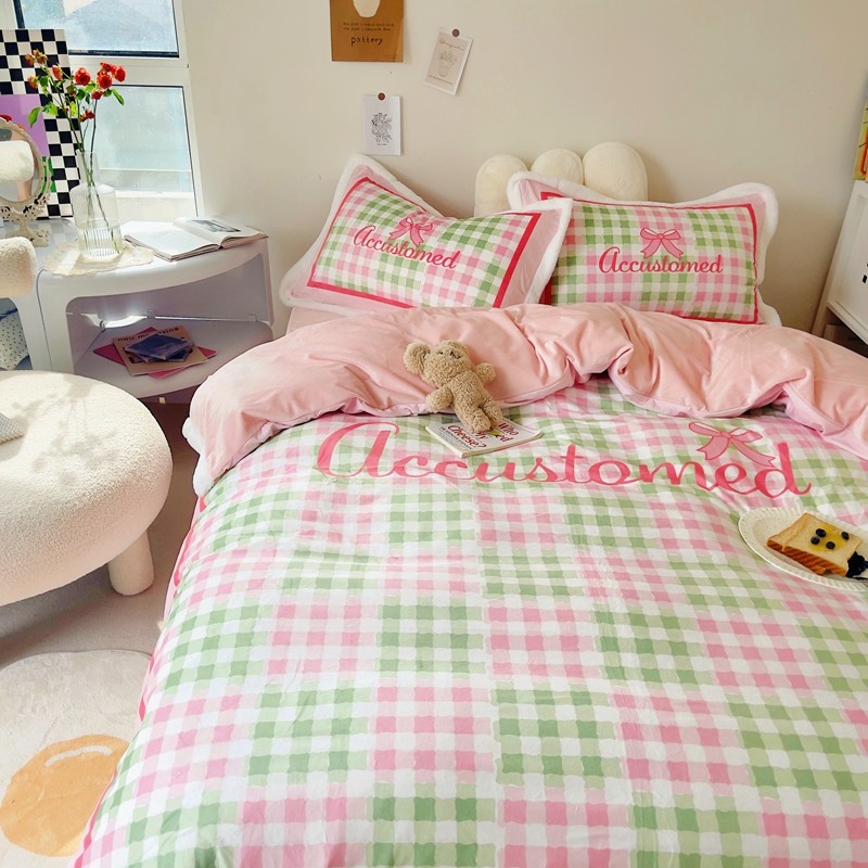 (总)圆岛家纺 2023秋冬新款少女心桃心樱桃毛巾绣牛奶绒四件套,桃心(淡紫),樱桃(玉粉)