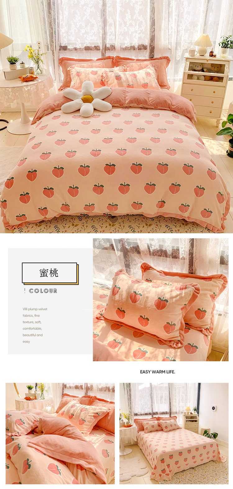 商品名称:金爱家 2021新款250克牛奶绒四件套 蜜桃