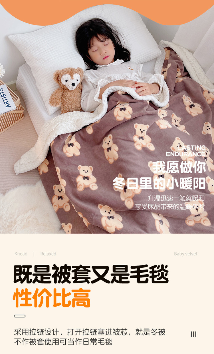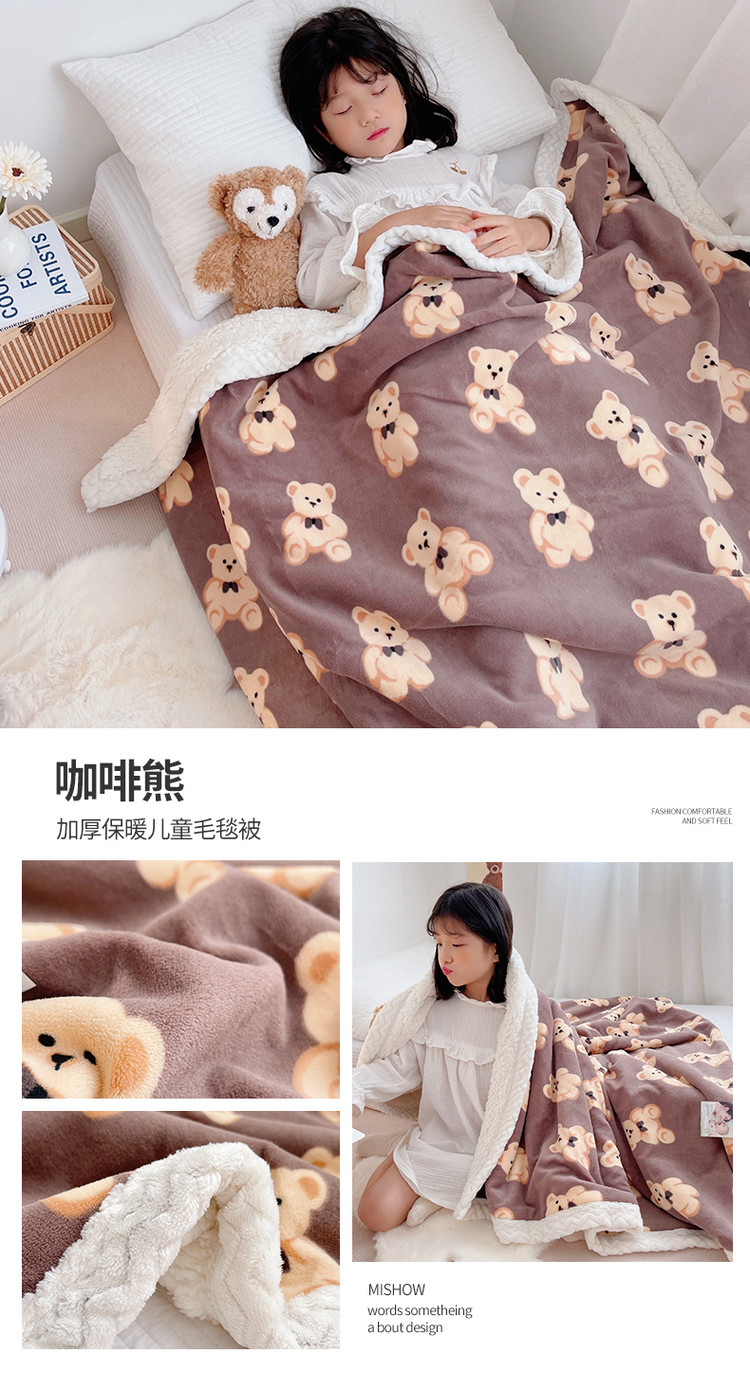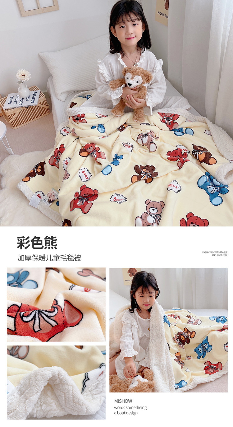 (总)鱼宝 2022新款儿童双面牛奶绒冬被,班尼熊,滴滴车队,海盐草莓,桔子,恐龙先生,兔子草莓,小兔姑娘