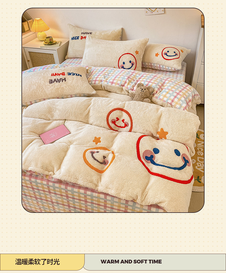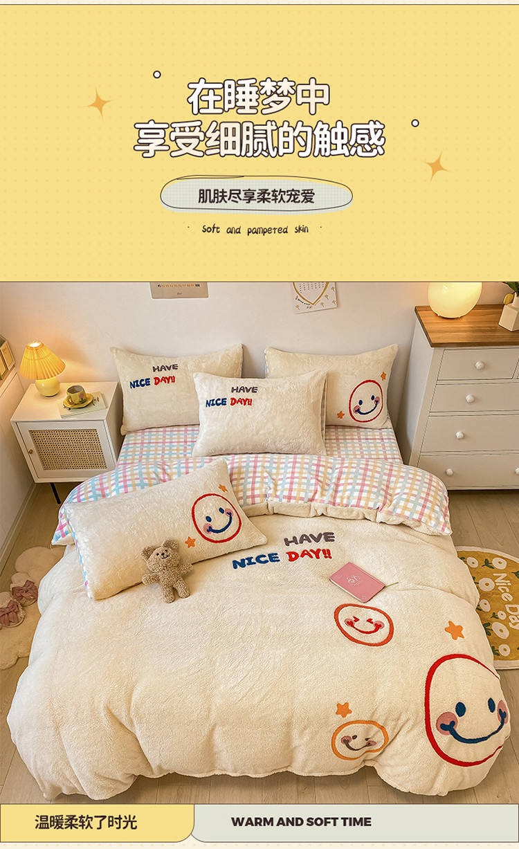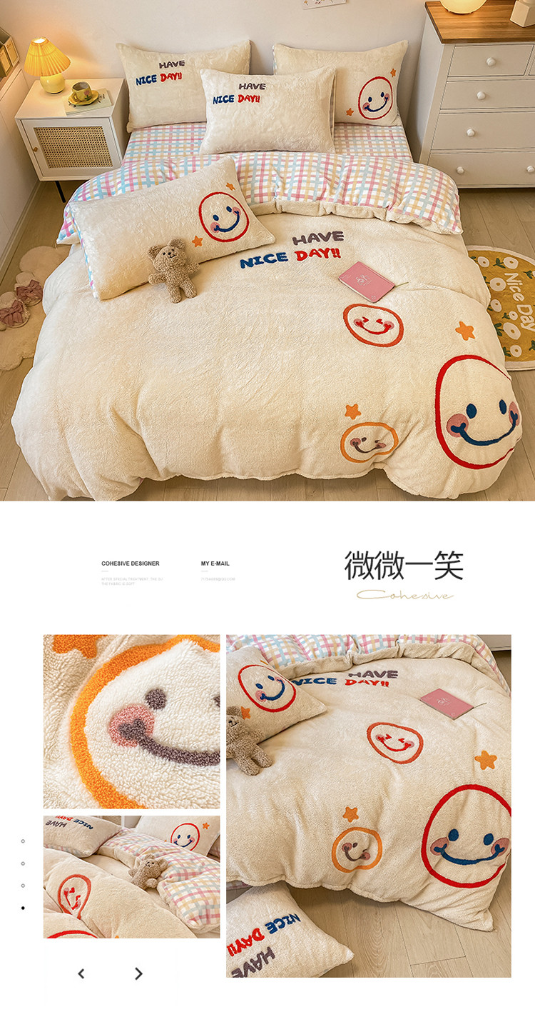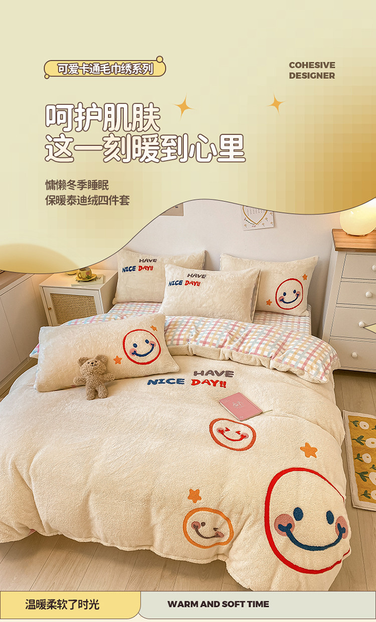 商品名称:澳梵2021新款韩国进口泰迪绒大版毛巾绣四件套 微微一笑