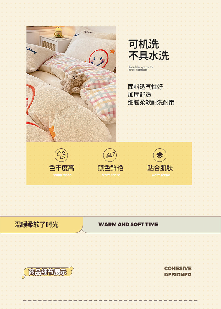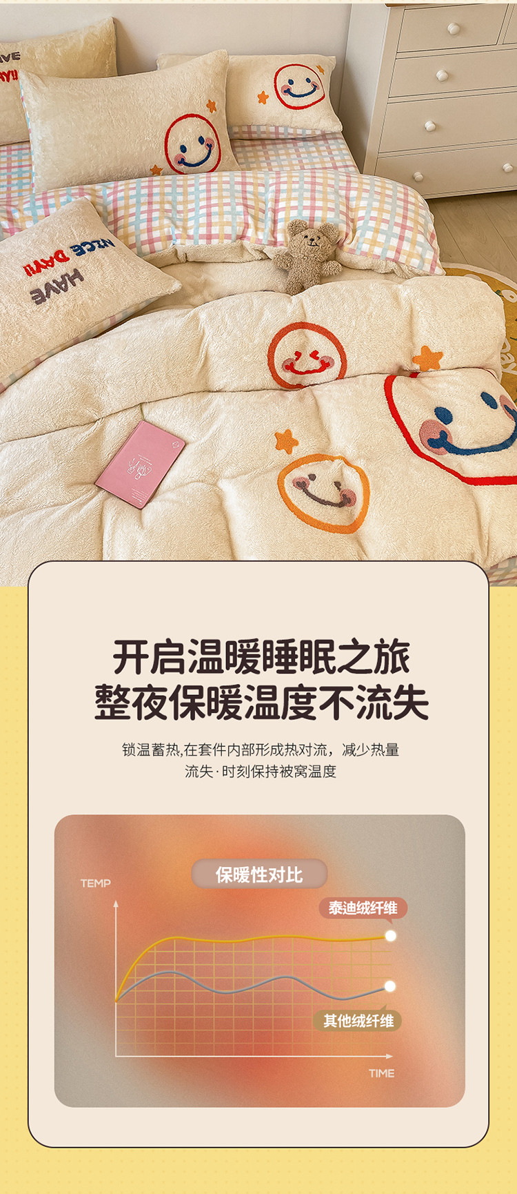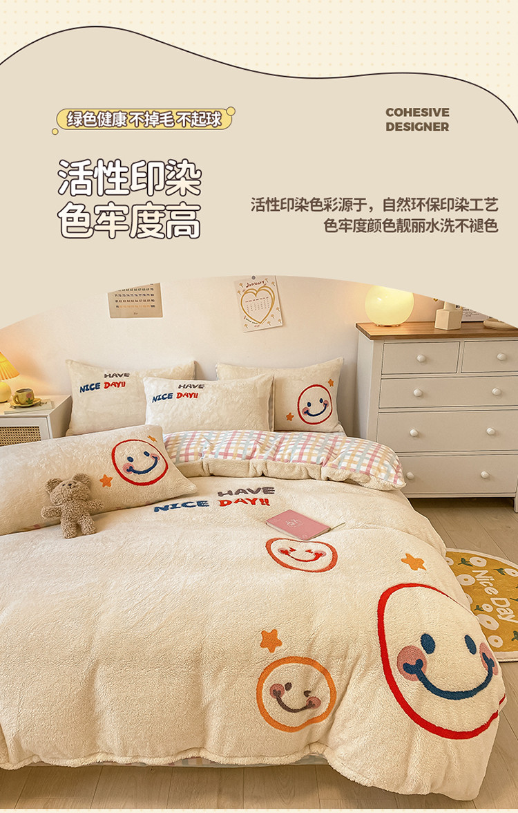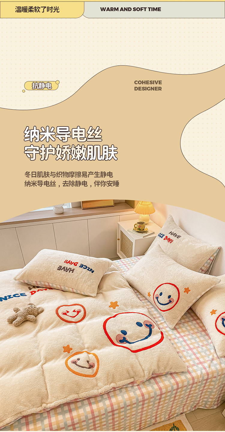 商品名称:澳梵2021新款韩国进口泰迪绒大版毛巾绣四件套 微微一笑
