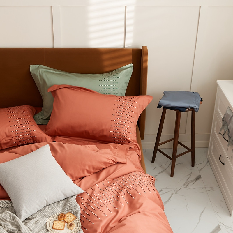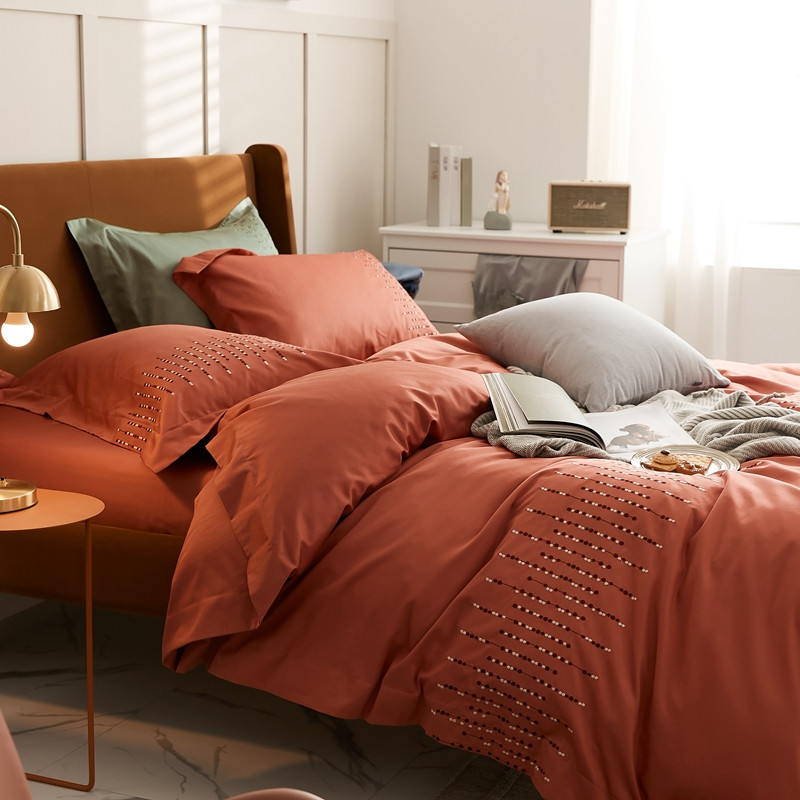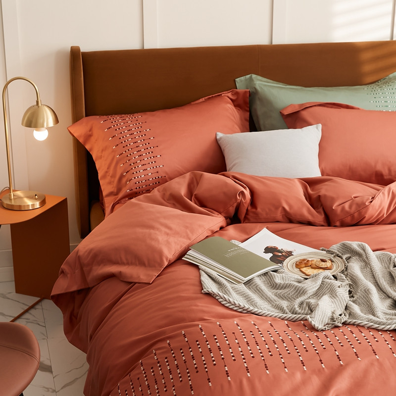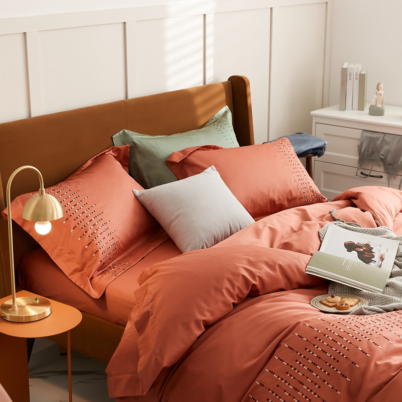 涞澳家纺 2021新款50支全棉绣花四件套 伊洛-南瓜色